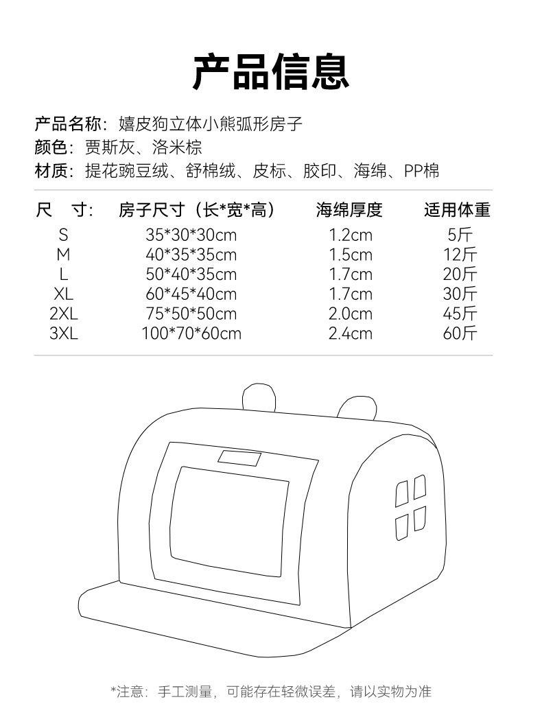 Otoño e invierno perro perro pequeño gato oso tridimensional casa curva perrera gatito perro grande yurta nido para mascotas