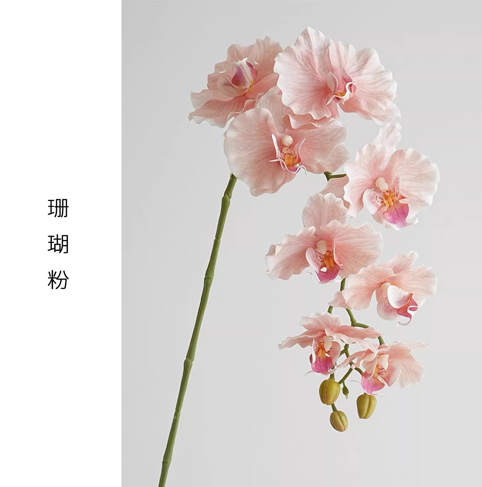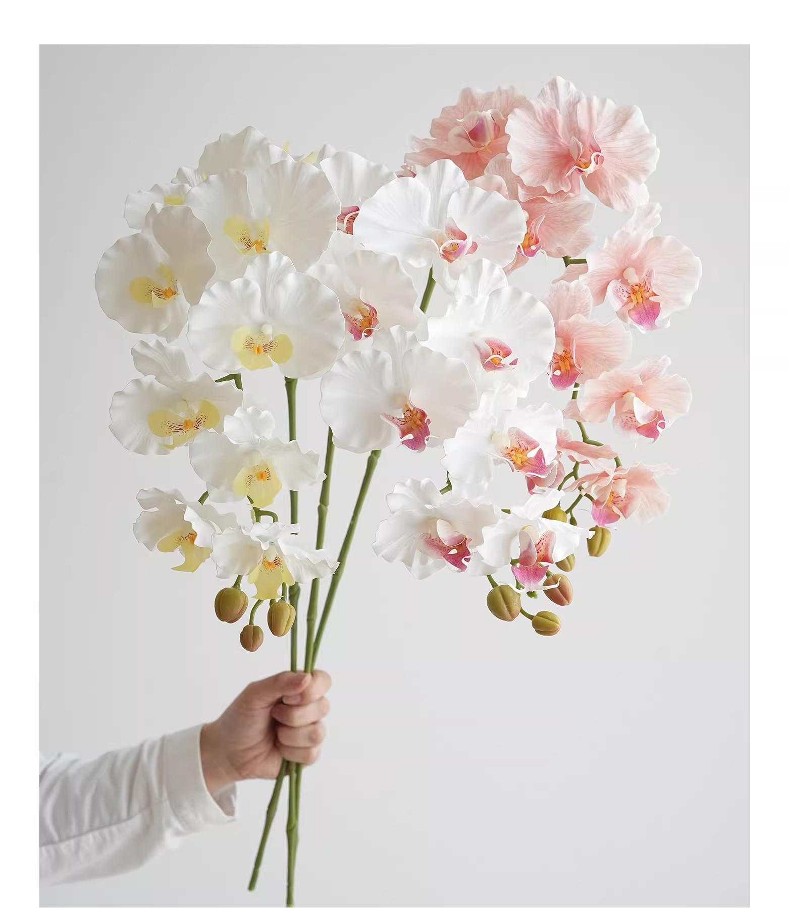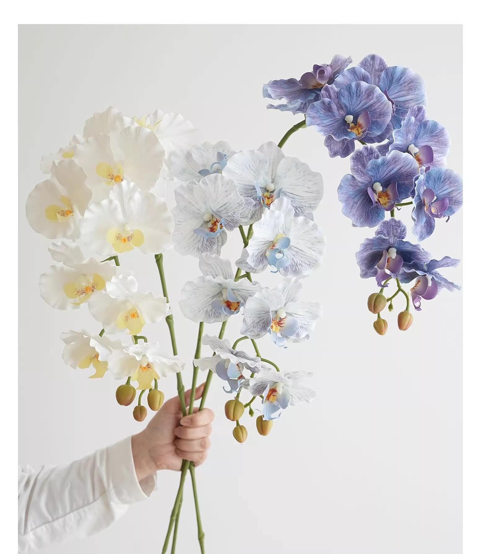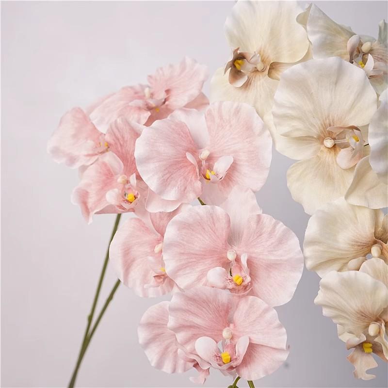 9 Phalaenopsis de estilo europeo flor artificial tela de seda decoración de auditorio de boda hogar suave arreglo floral de boda decoración de sala de estar