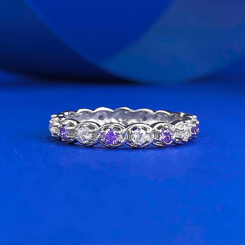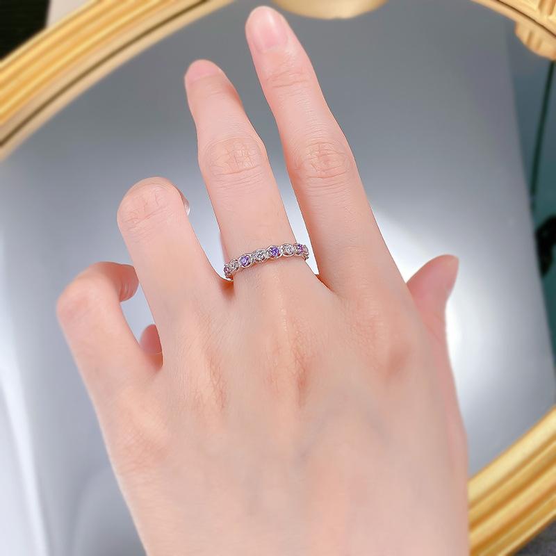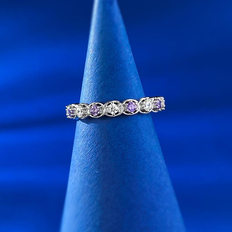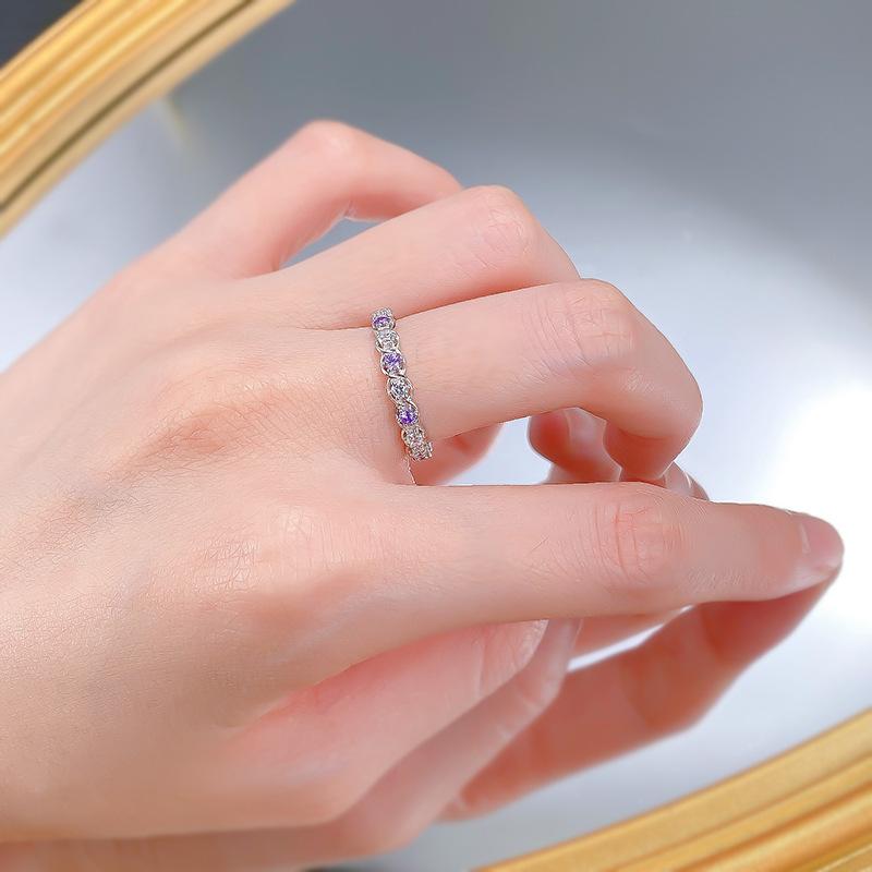 Anillo de plata S925 con circonita blanca y morada, lleno de diamantes, estilo europeo y americano, venta al por mayor, para mujer, joyería Mu Jing