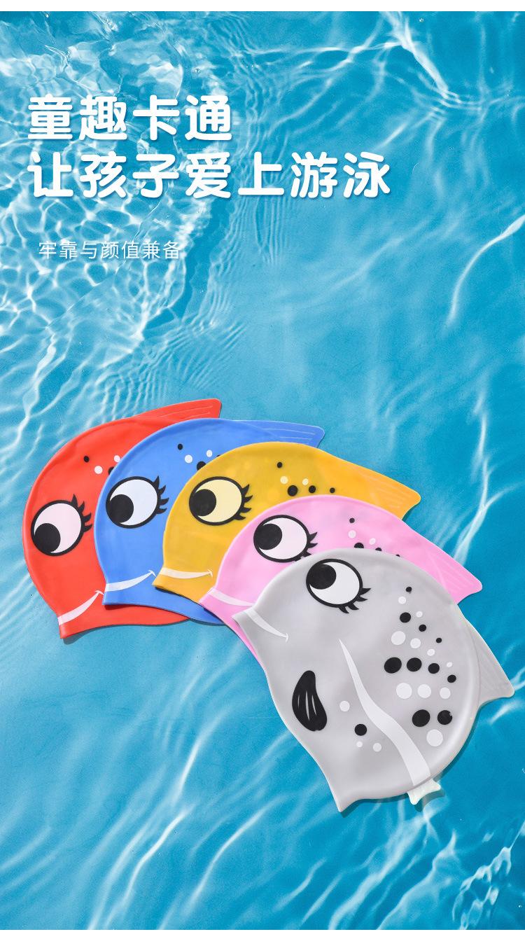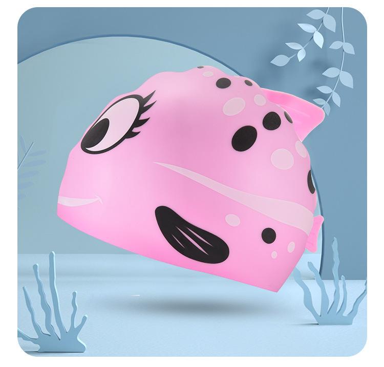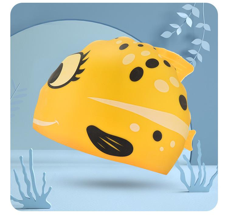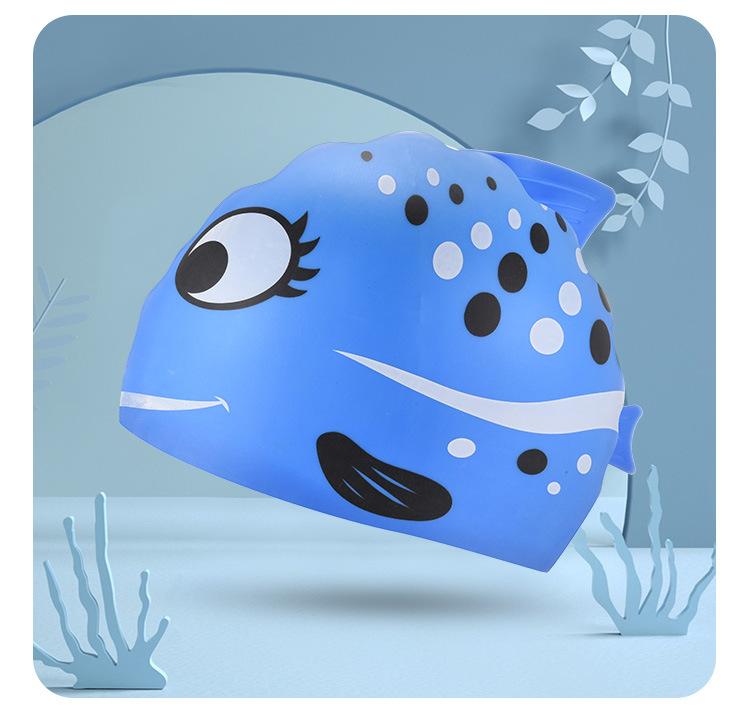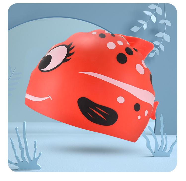 Gorro de Natación para Niños Gorro de Silicona Impermeable Moda Dibujos Animados Pez Manchado Cómodo Cuidado del Cabello Gorro de Natación para Niños y Niñas
