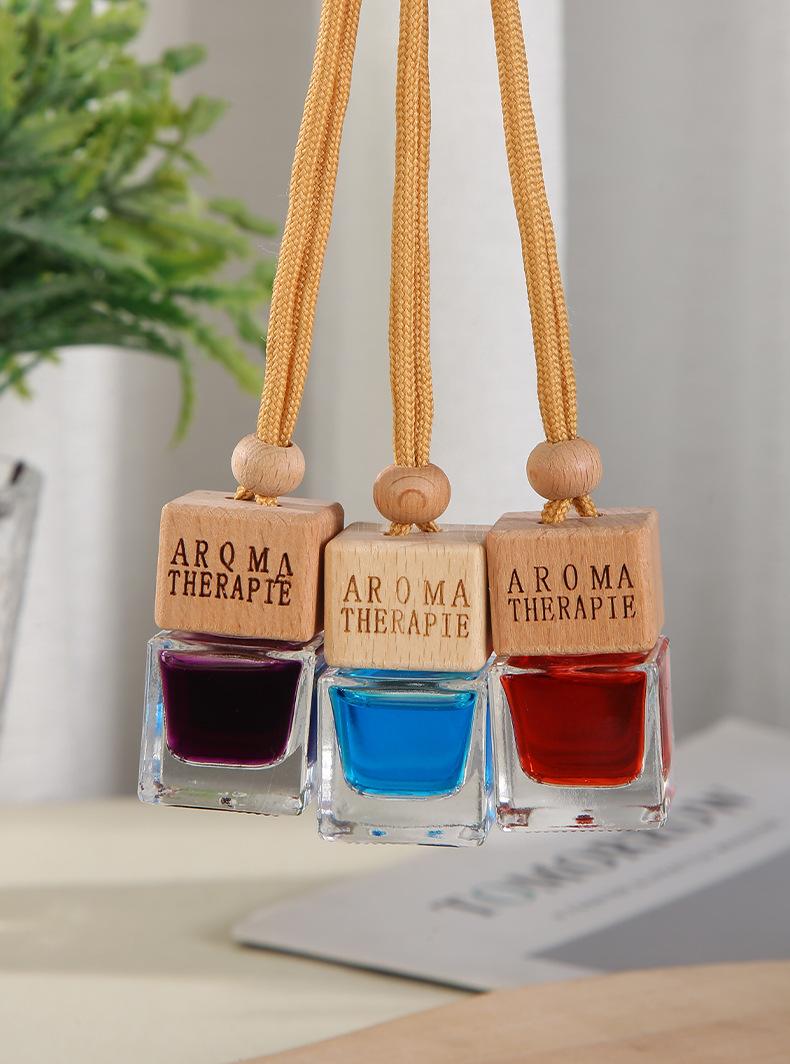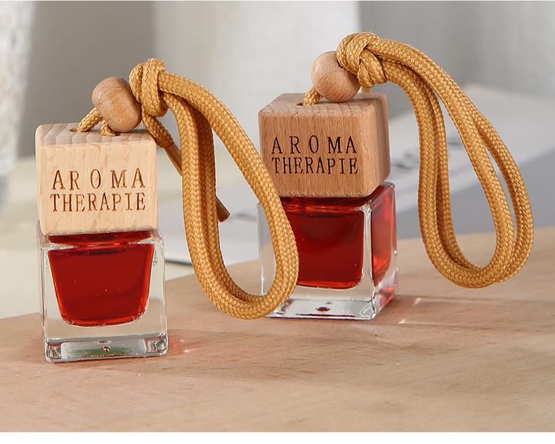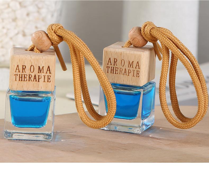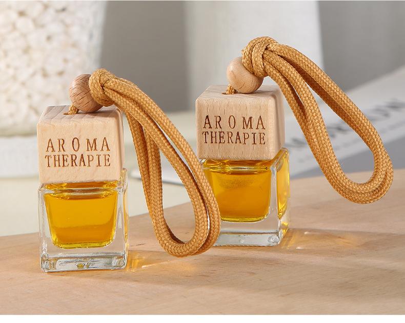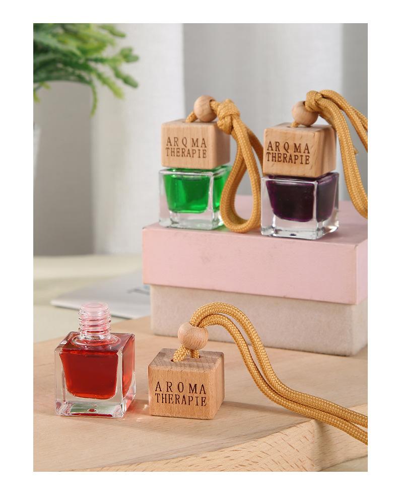 Perfume para coche, colgante tipo asiento, adorno para coche, aceite esencial, botella cuadrada pequeña