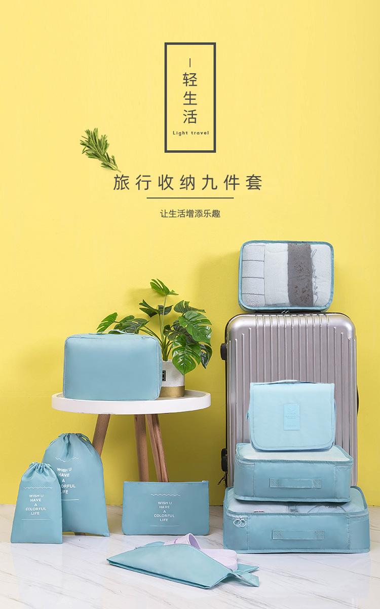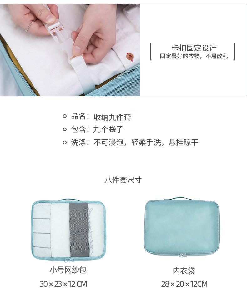 Bolsa de Almacenamiento de Viaje Amazon Juego de Nueve Piezas Bolsa de Aseo Clasificación de Ropa Juego de Almacenamiento para Maleta Multifuncional