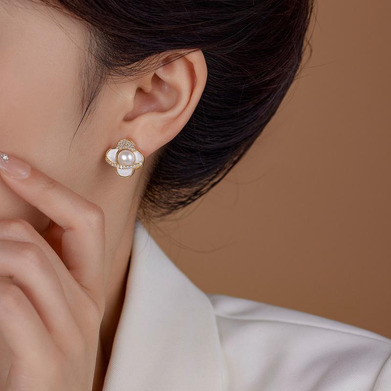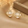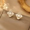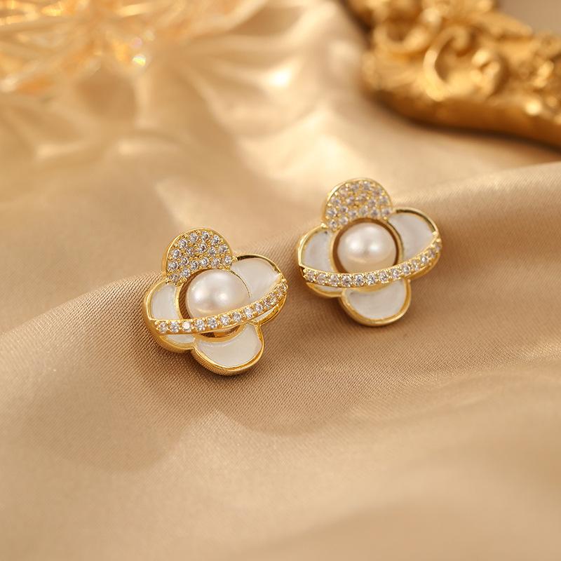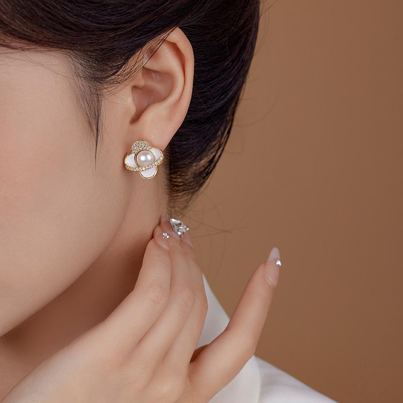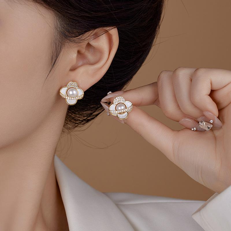 Camellia zircon pearl earrings