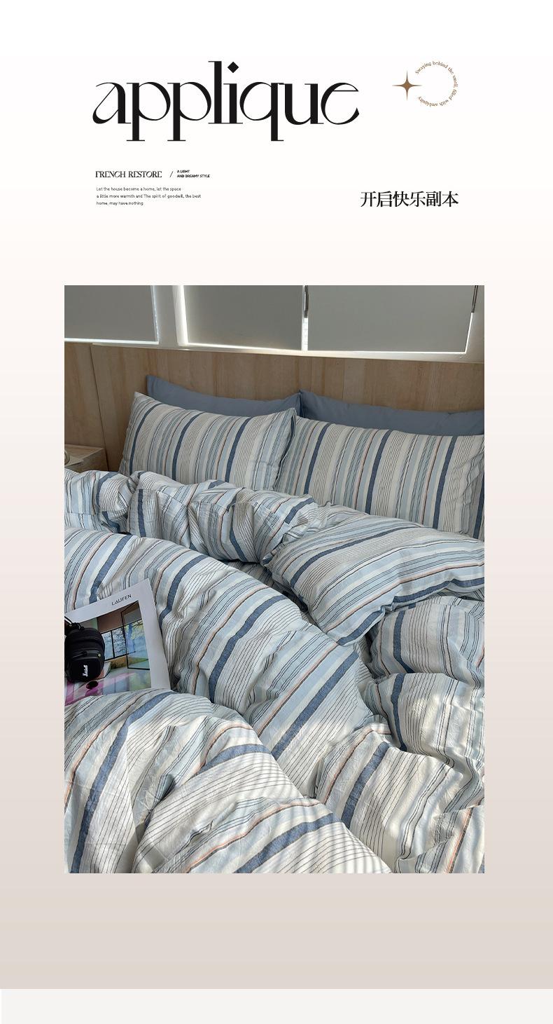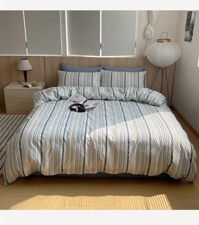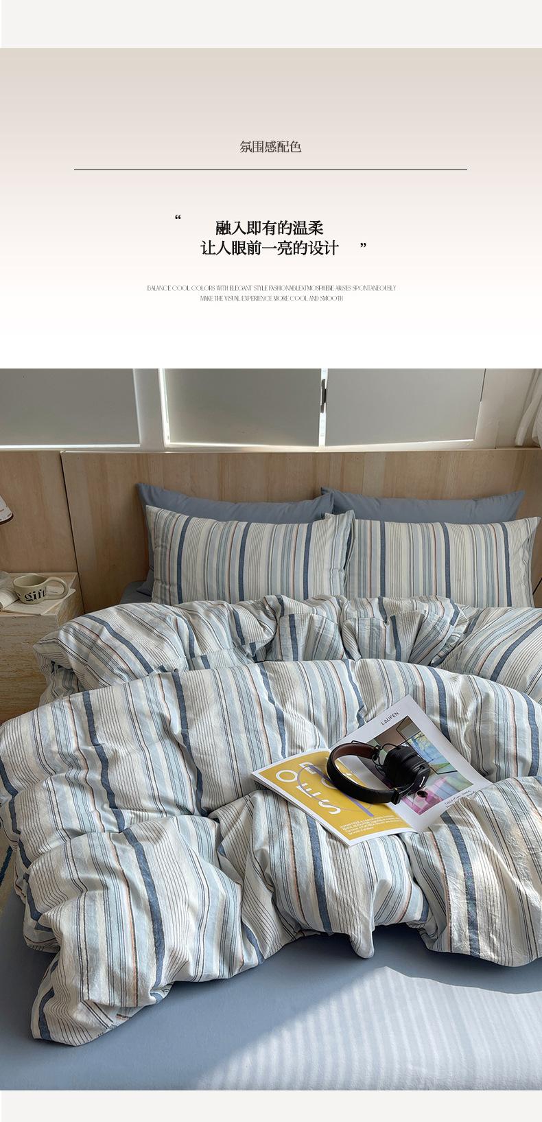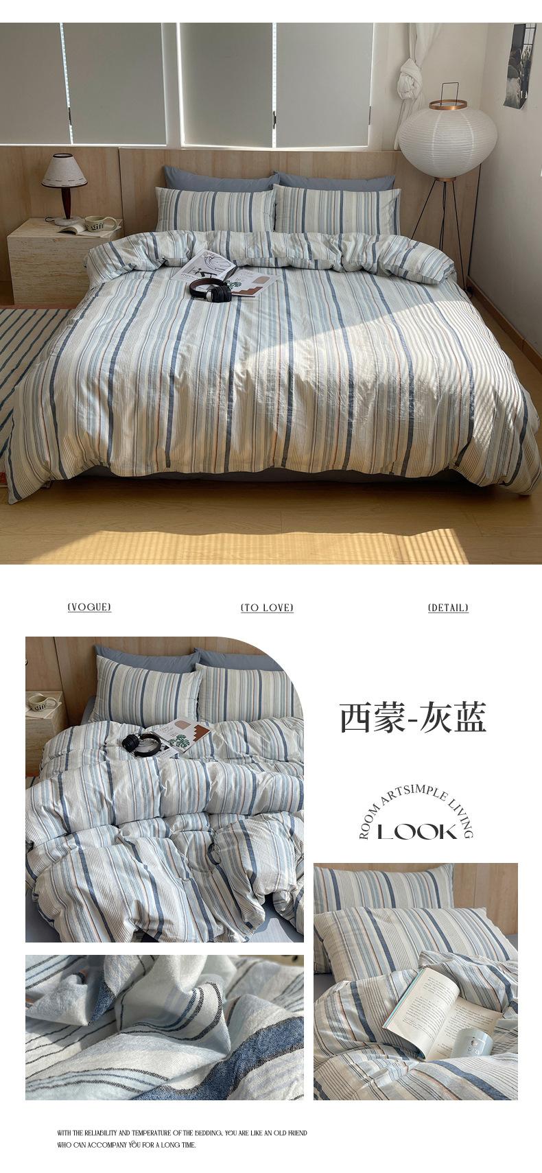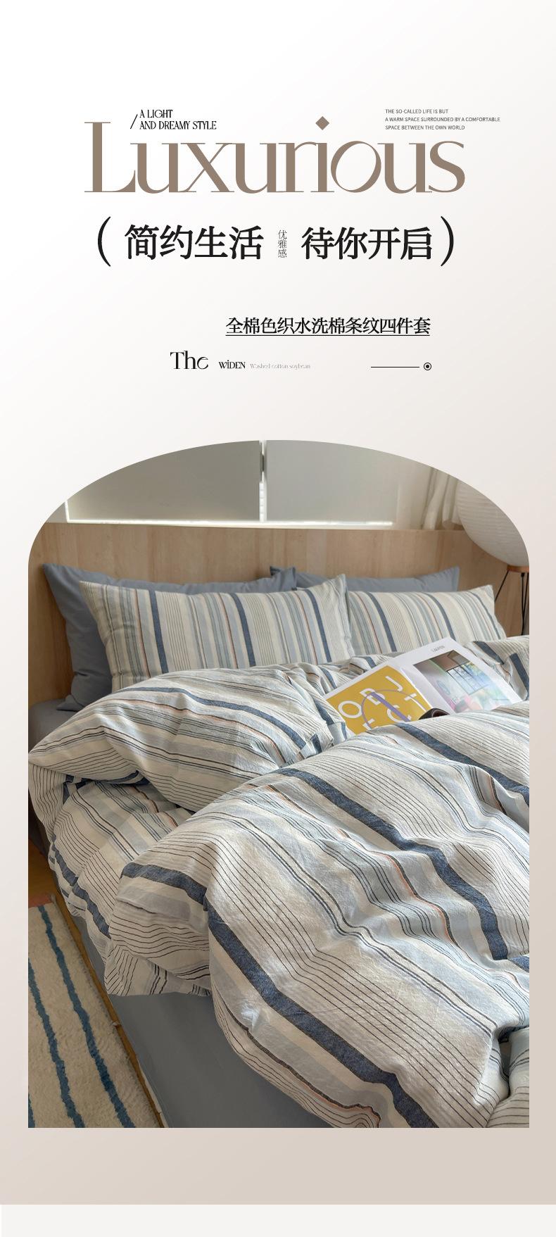 Juego de cama de algodón de cuatro piezas, moderno y sencillo, de 2024. Juego de cama de algodón lavado a rayas teñido en hilo.