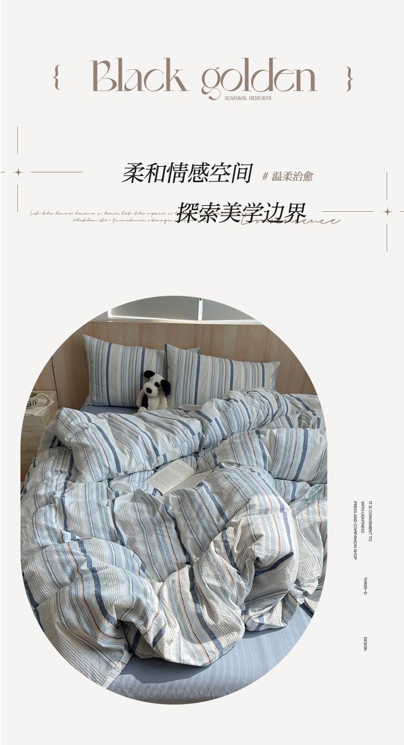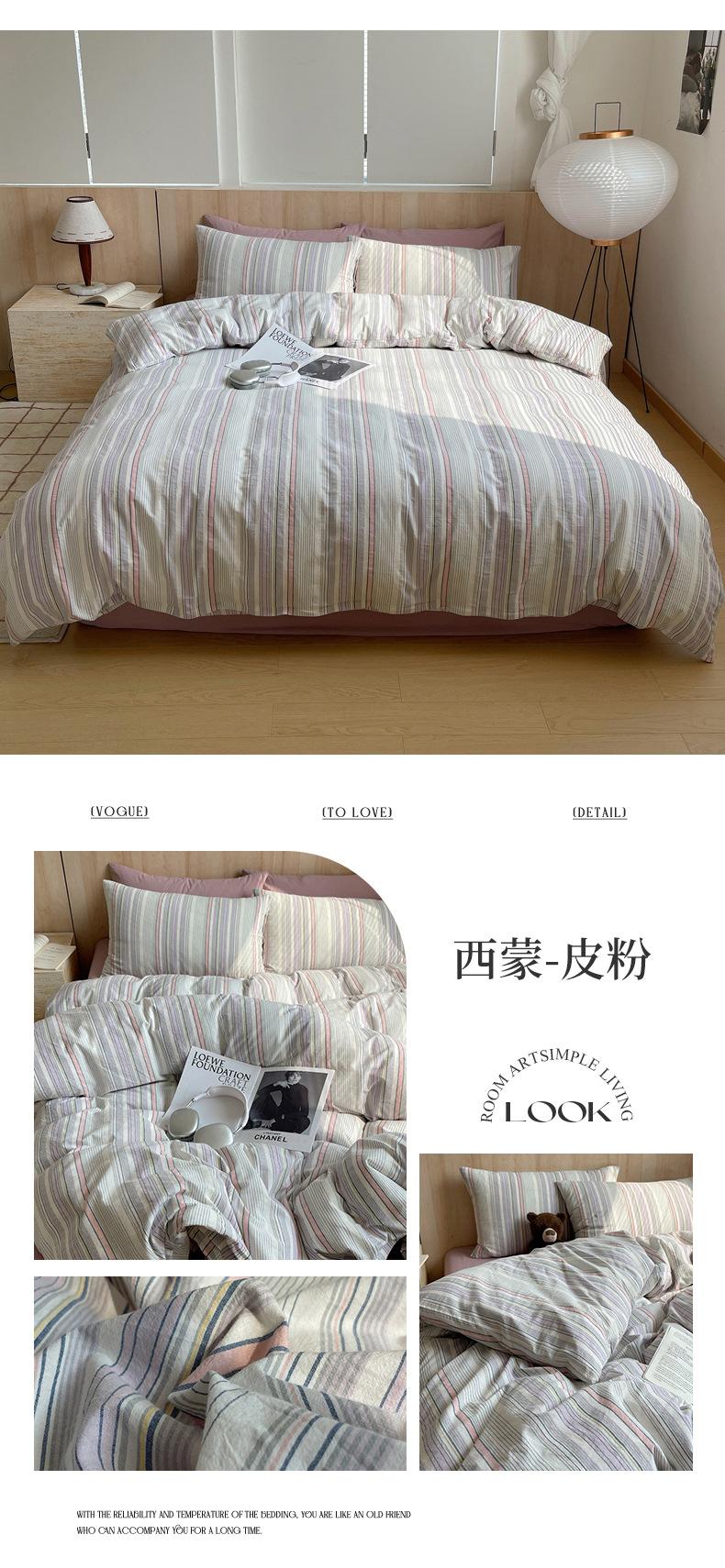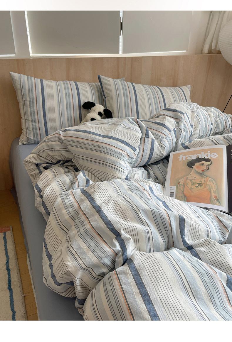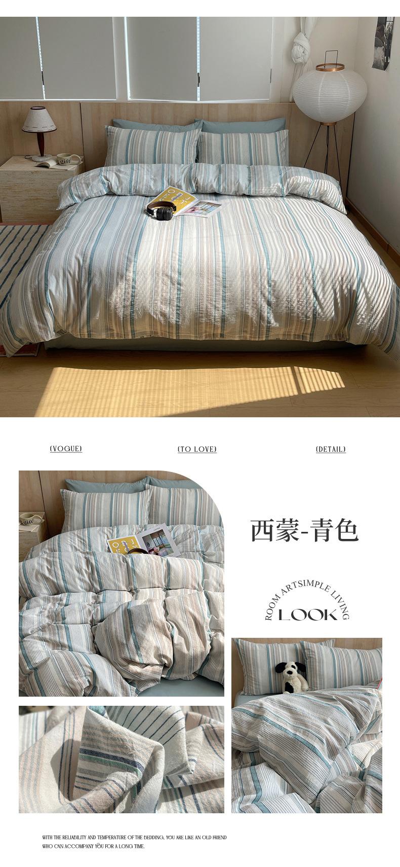 Juego de cama de algodón de cuatro piezas, moderno y sencillo, de 2024. Juego de cama de algodón lavado a rayas teñido en hilo.