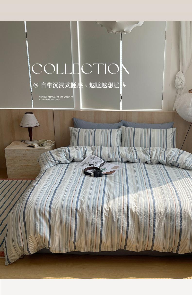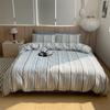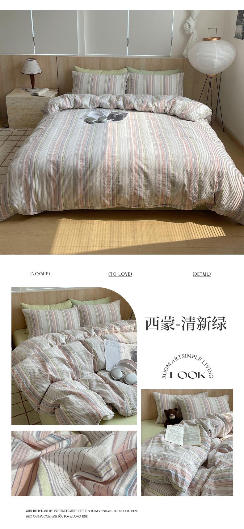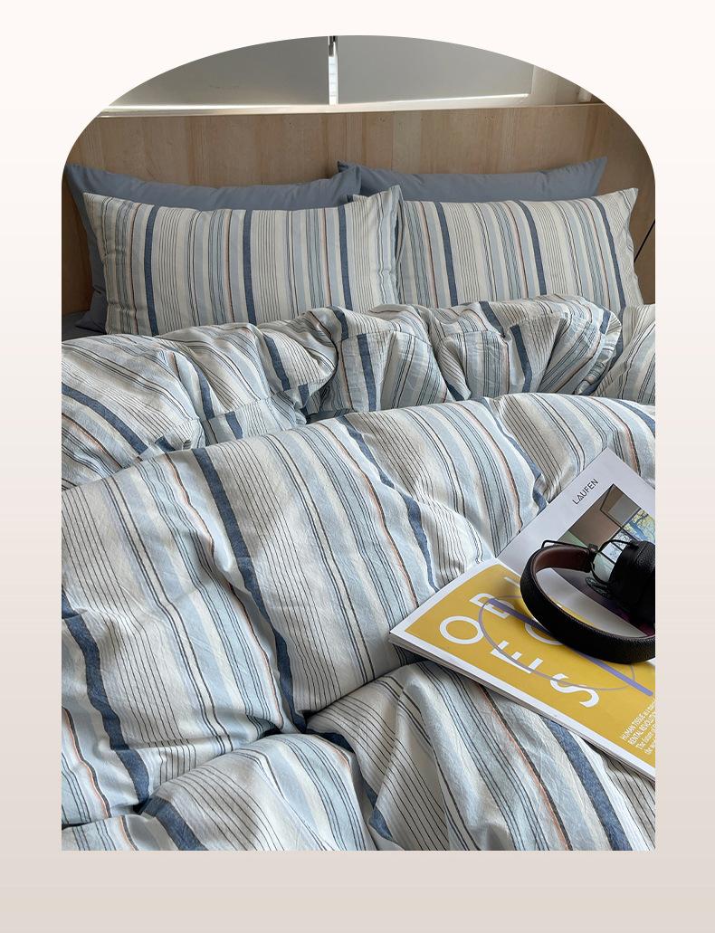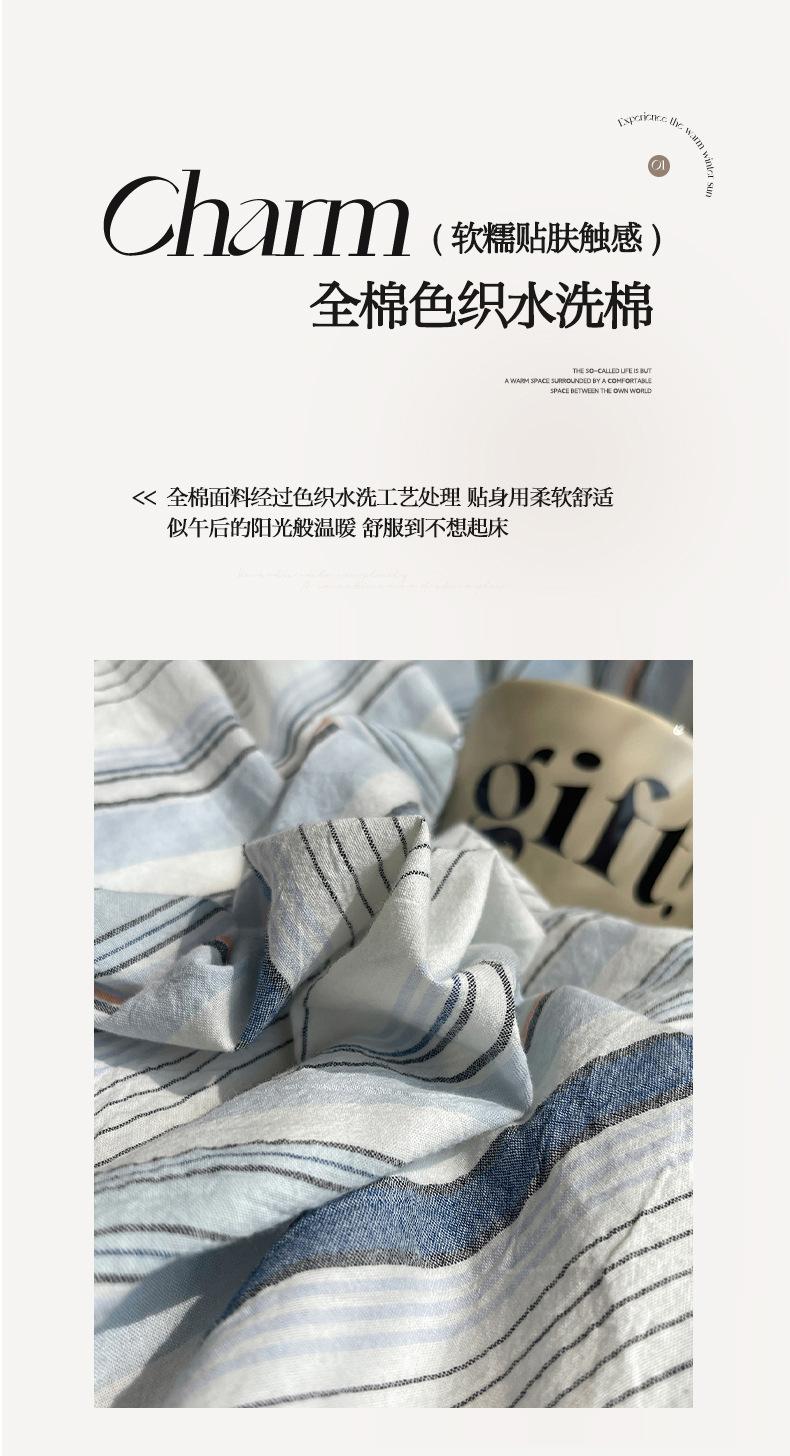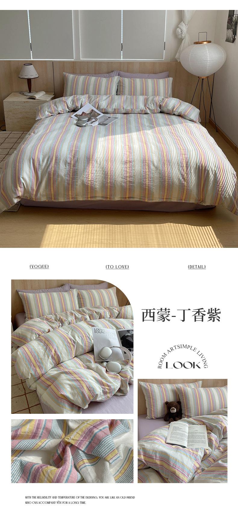 Juego de cama de algodón de cuatro piezas, moderno y sencillo, de 2024. Juego de cama de algodón lavado a rayas teñido en hilo.
