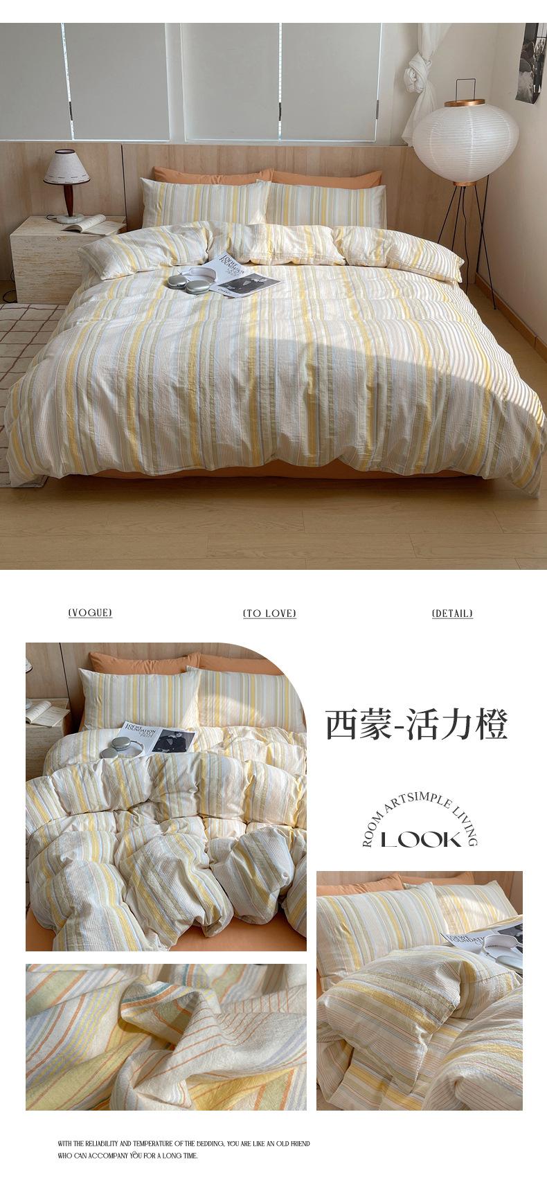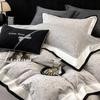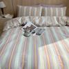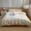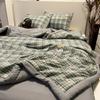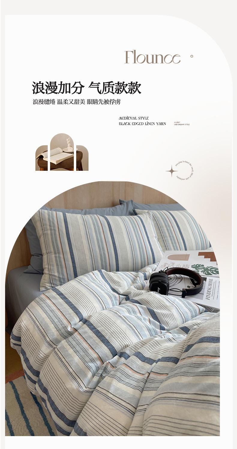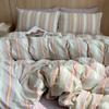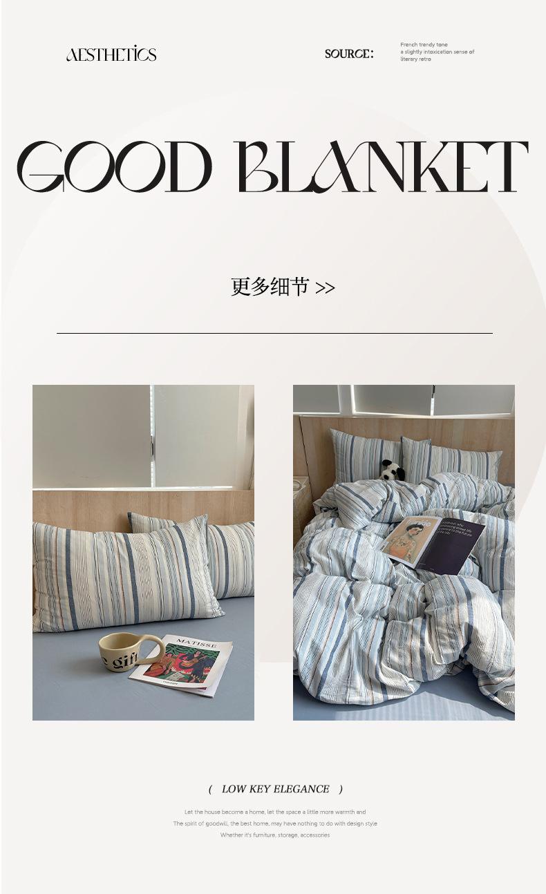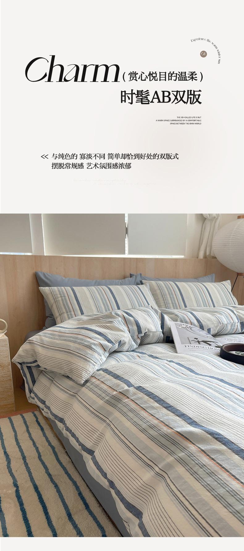 Juego de cama de algodón de cuatro piezas, moderno y sencillo, de 2024. Juego de cama de algodón lavado a rayas teñido en hilo.