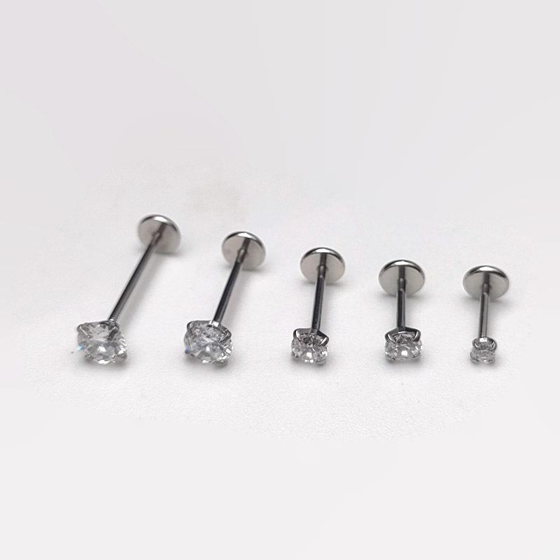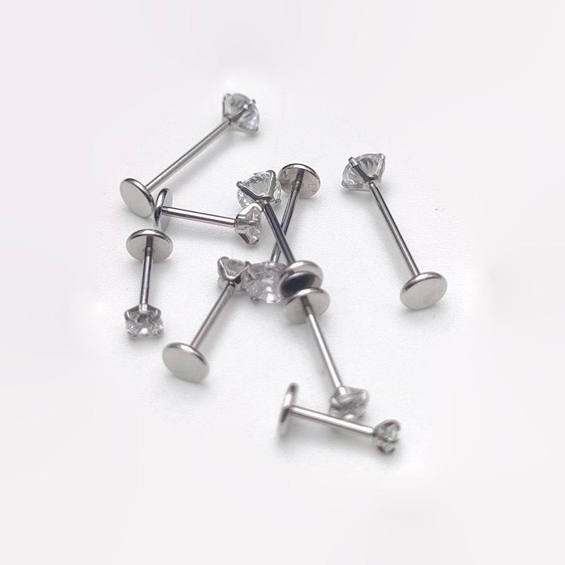 Pin de acero inoxidable transfronterizo Clavo para labio en forma de T Circonio redondo de un solo taladro Pin para oreja Clavo para hueso de la oreja Joyería para perforación al por mayor