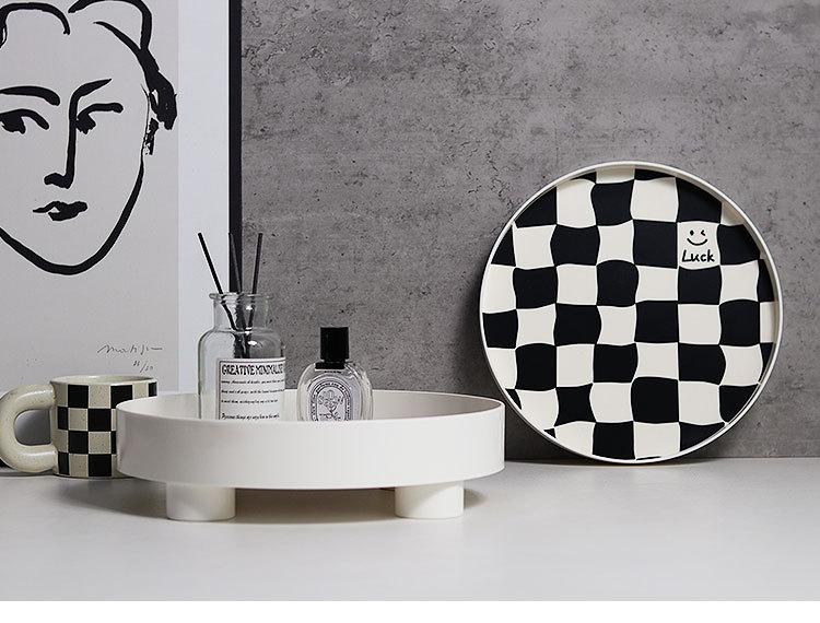 Plato de Almacenamiento a Cuadros Estilo Nórdico Plato de Frutas Plato de Almacenamiento Taza Perfume Joyería Miscelánea Bandeja Decorativa de Escritorio