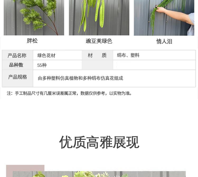 Flor verde simulación planta verde decoración auditorio boda Mori guía de camino techo flor suave outlet de fábrica