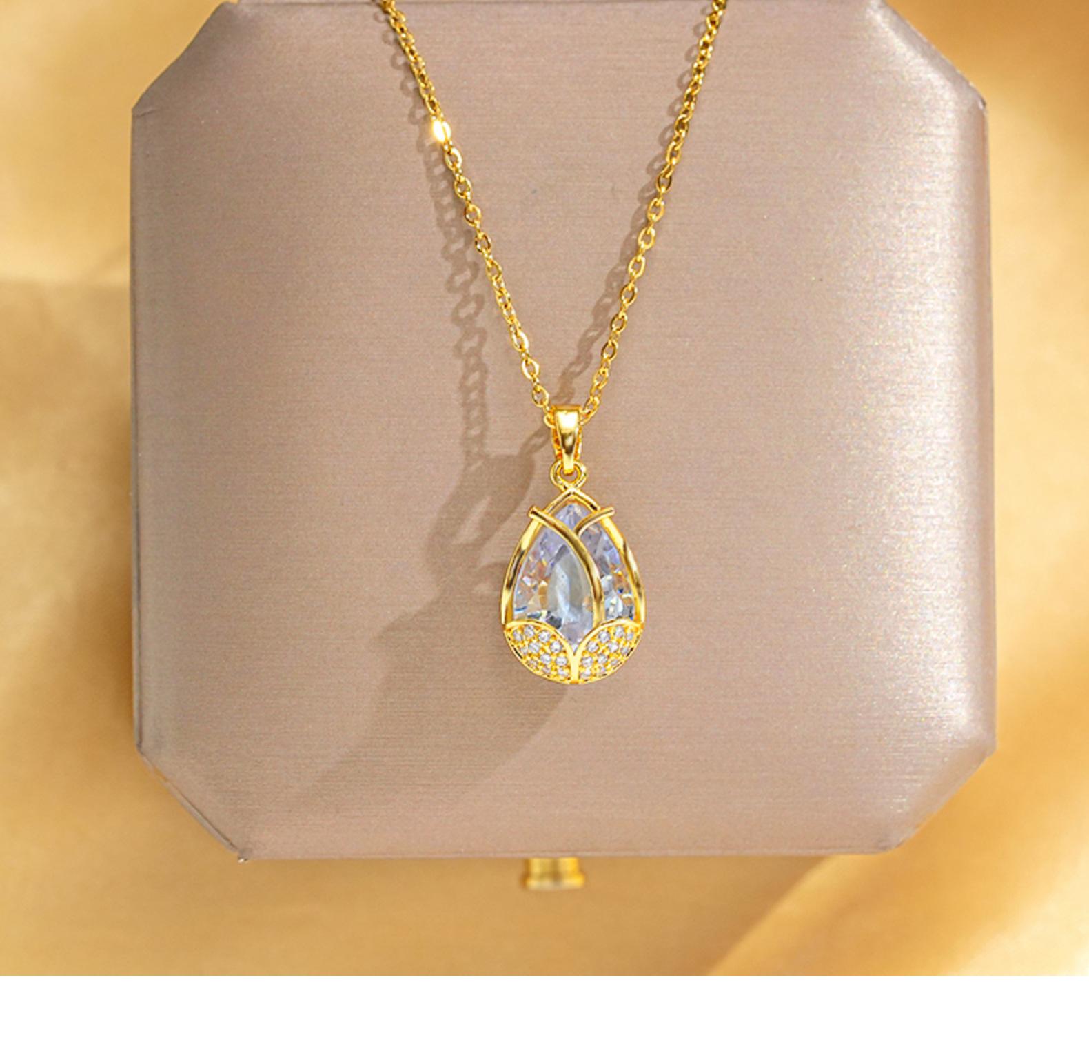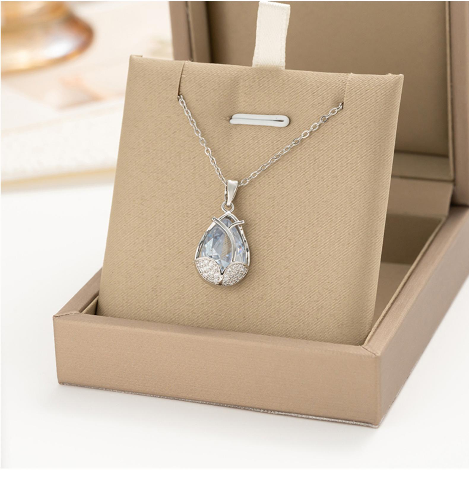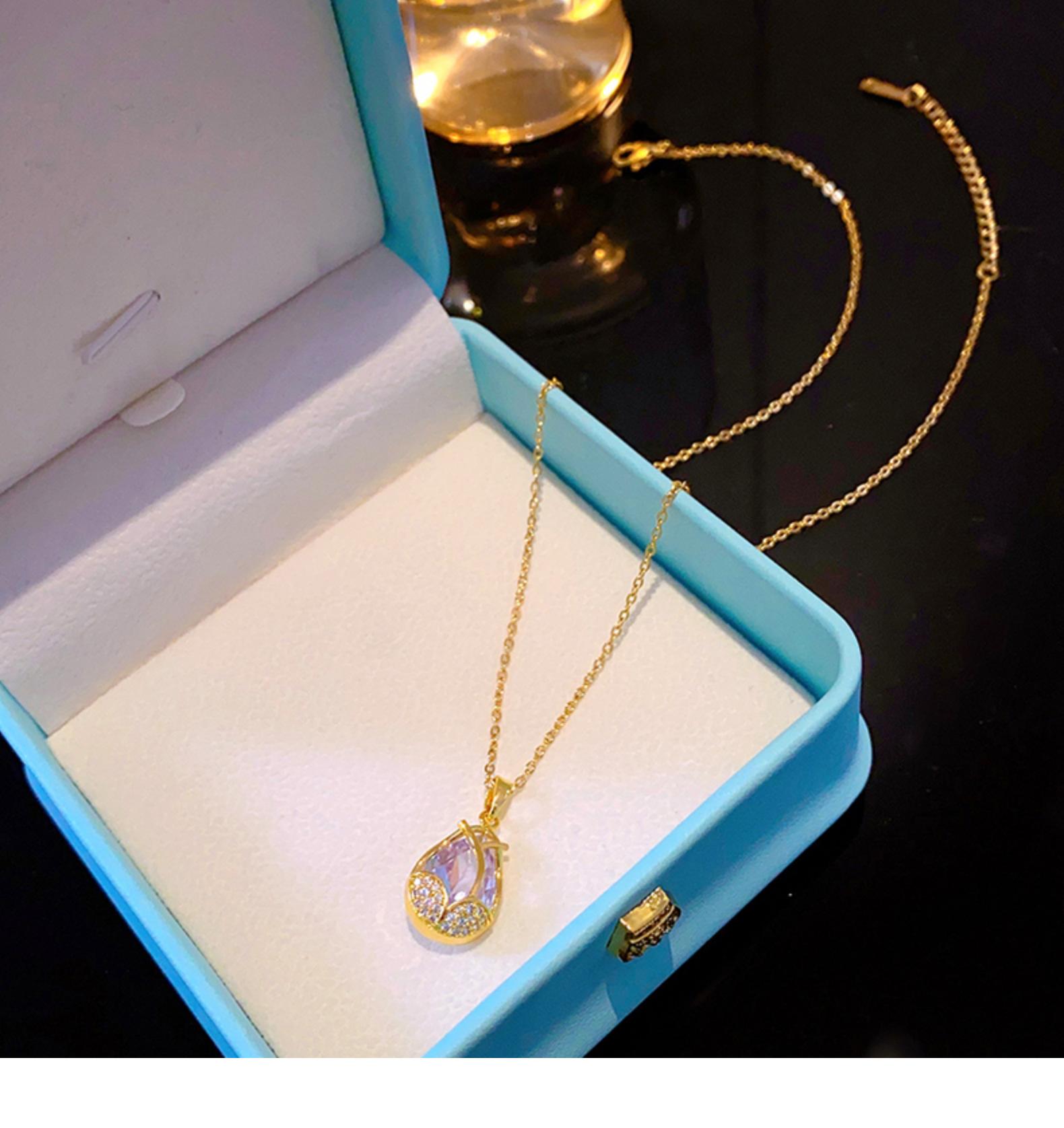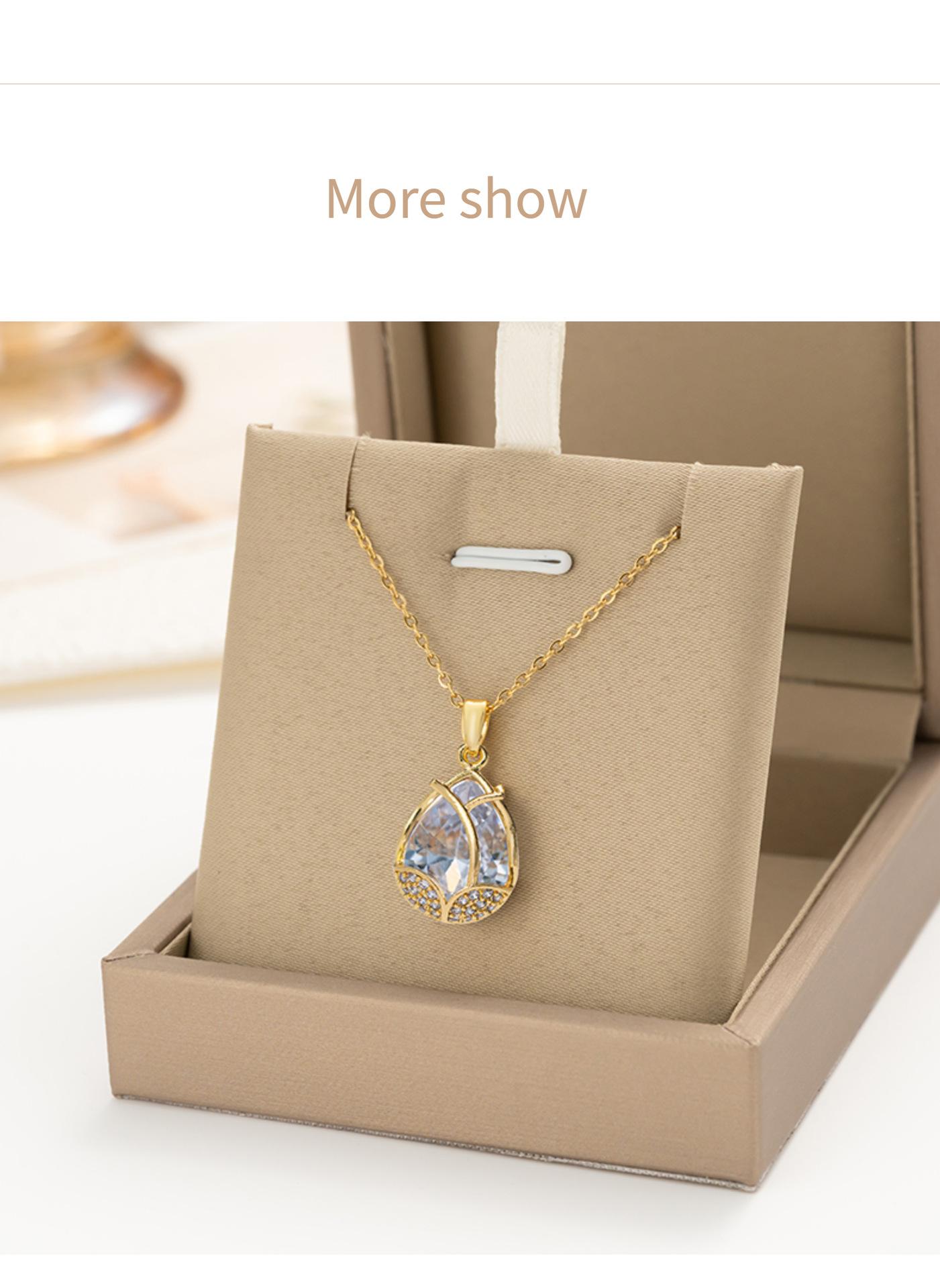 Collar Sencillo de Tulipán Estilo Coreano de Acero de Titanio para Mujer, Colgante de Diamante Completo de Zirconia a la Moda, Celebridad de Internet, Versátil, Cadena de Clavícula de Alta Gama