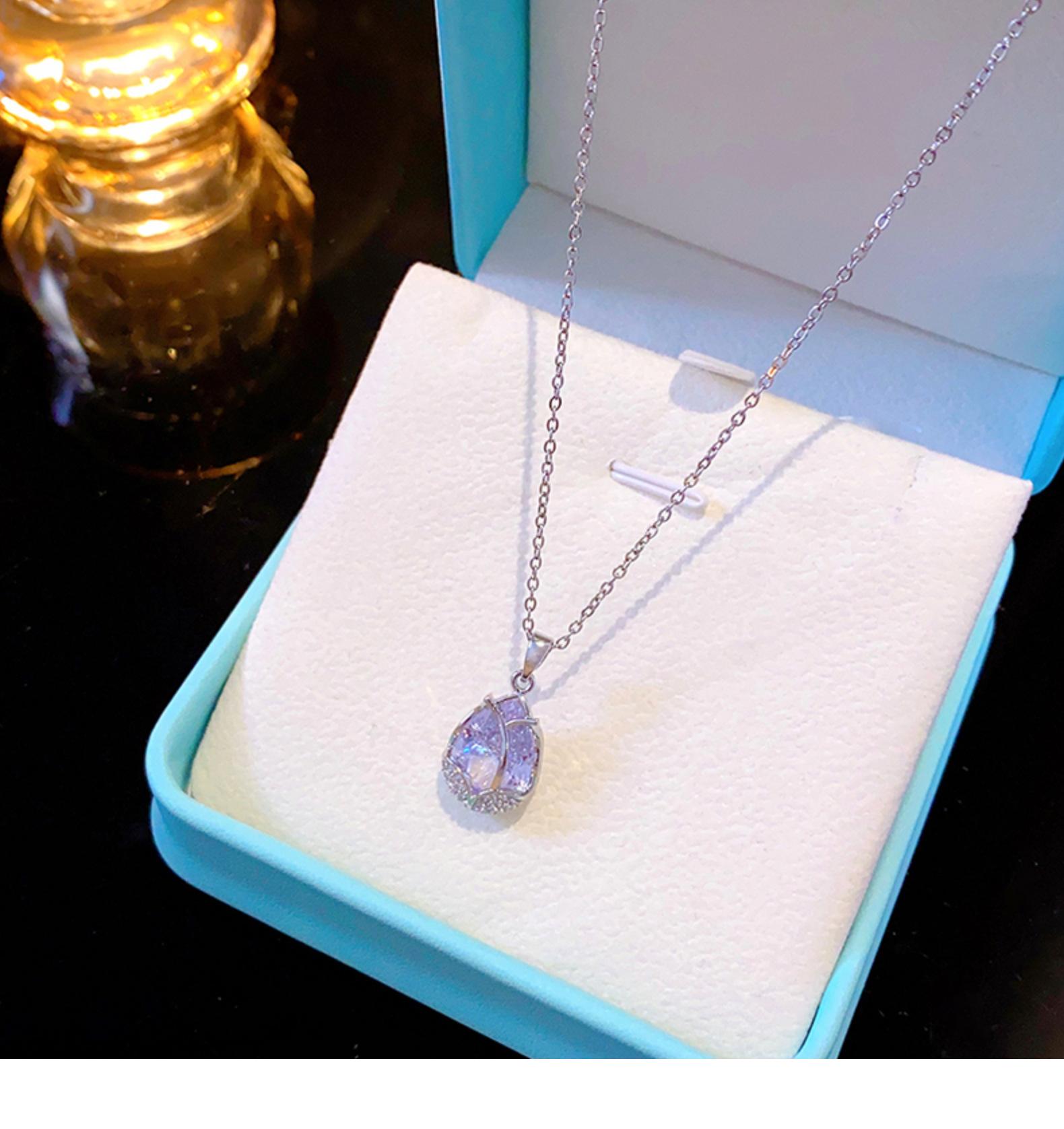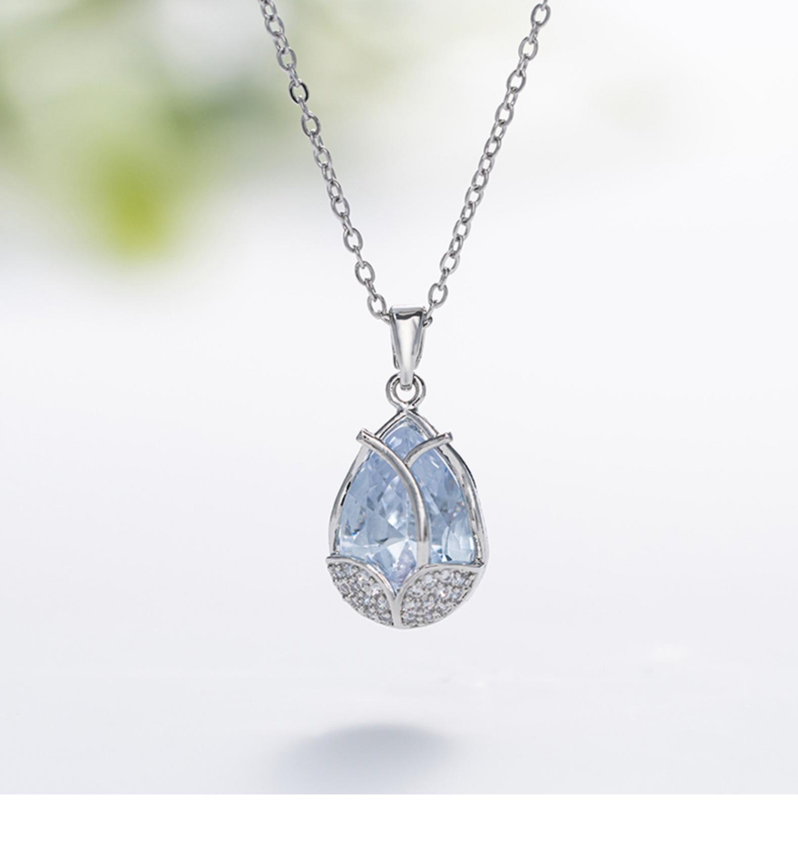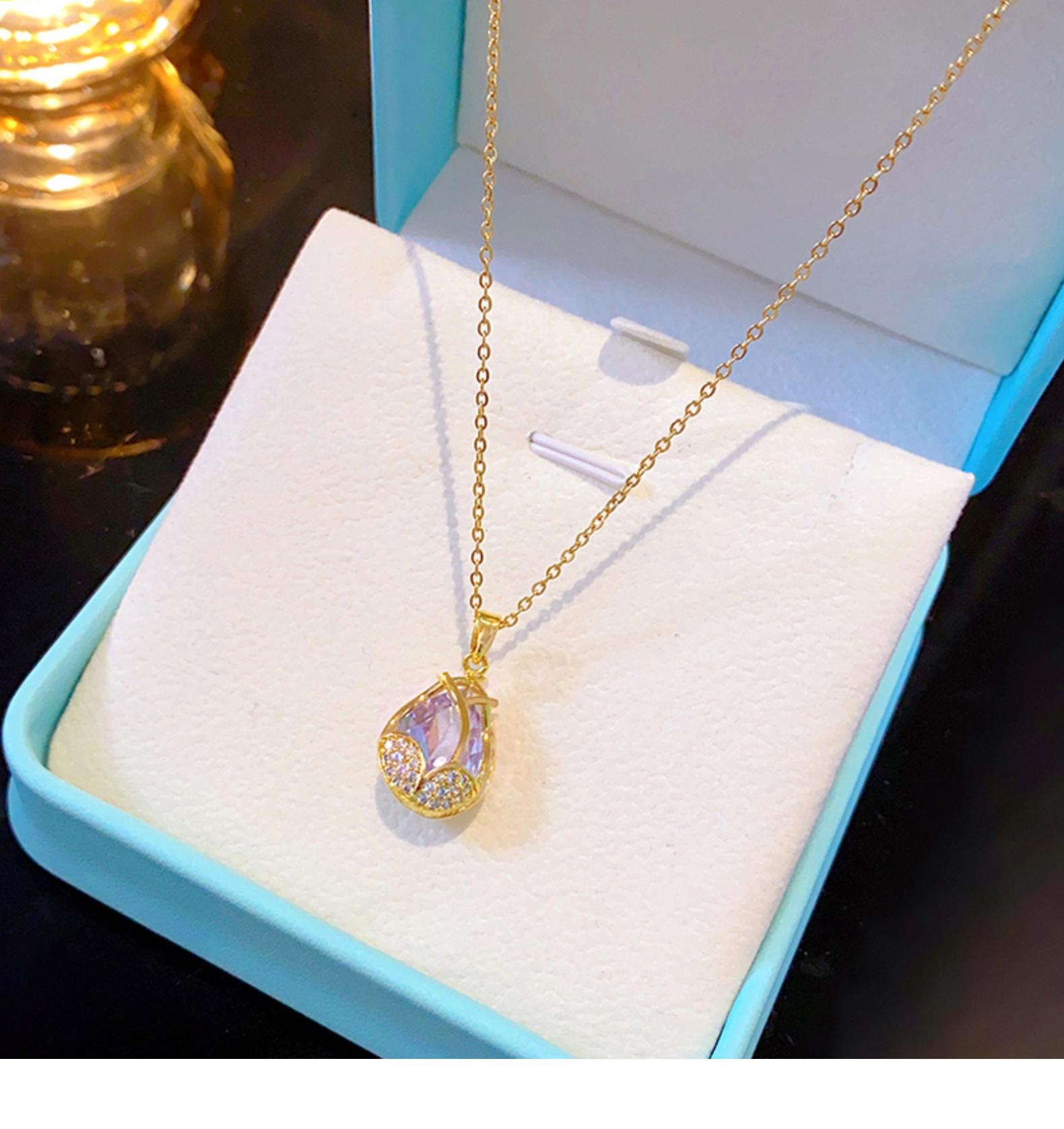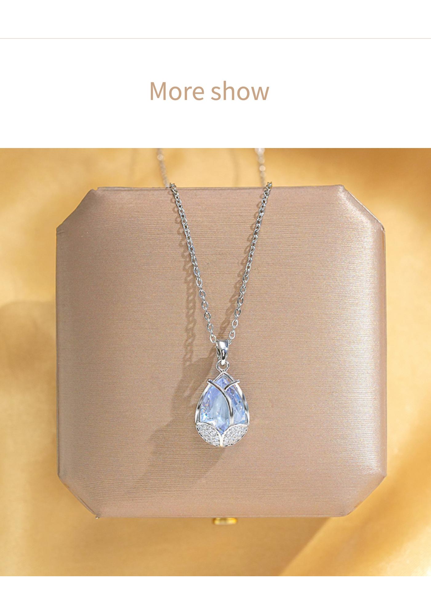 Collar Sencillo de Tulipán Estilo Coreano de Acero de Titanio para Mujer, Colgante de Diamante Completo de Zirconia a la Moda, Celebridad de Internet, Versátil, Cadena de Clavícula de Alta Gama