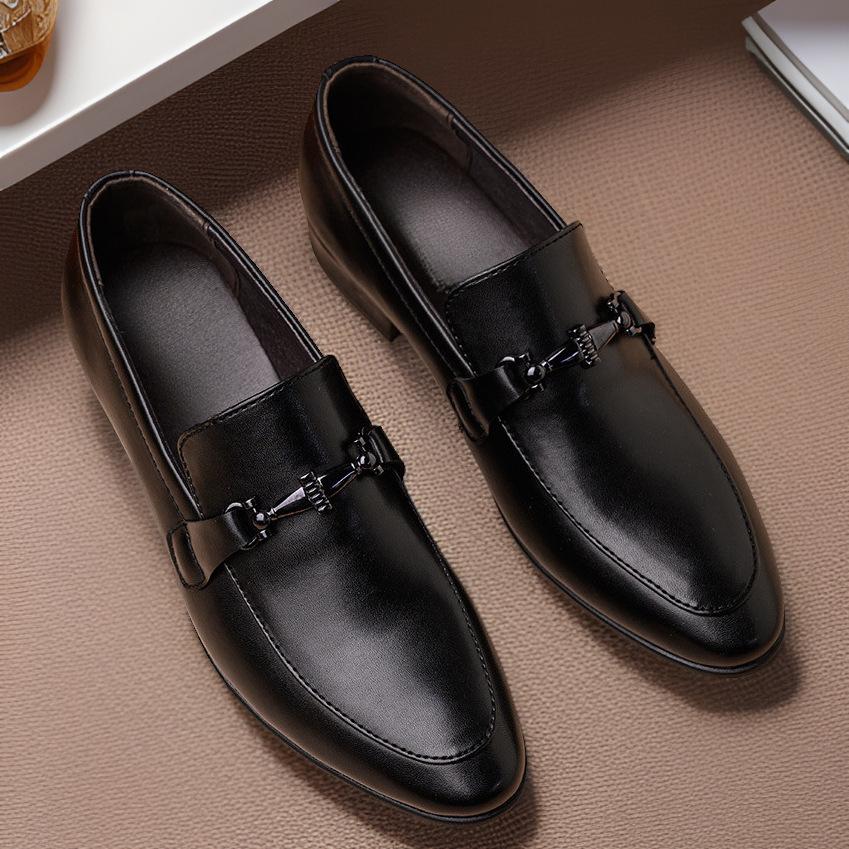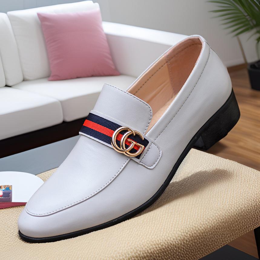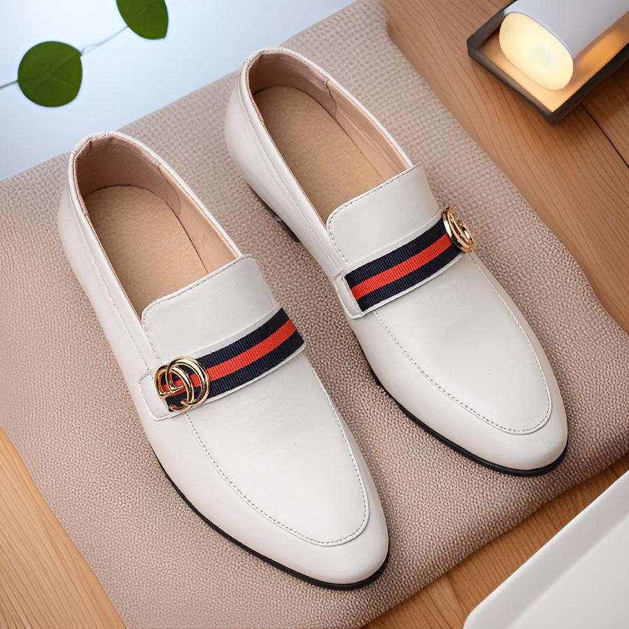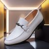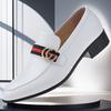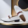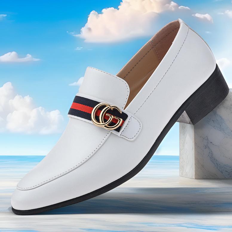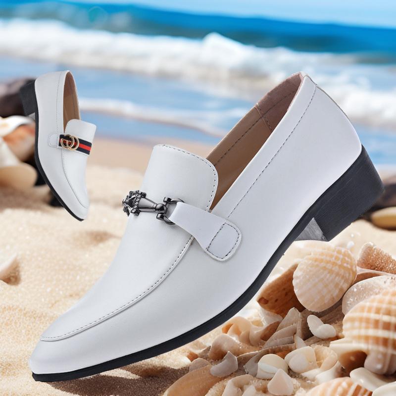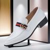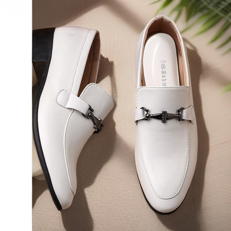 Zapatos de cuero negro con punta y suela suave y transpirable para hombre, estilo coreano, informales, de cuero blanco, para negocios y negocios.