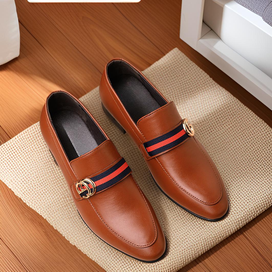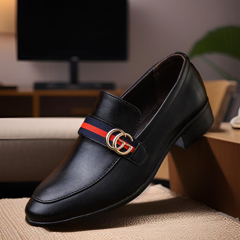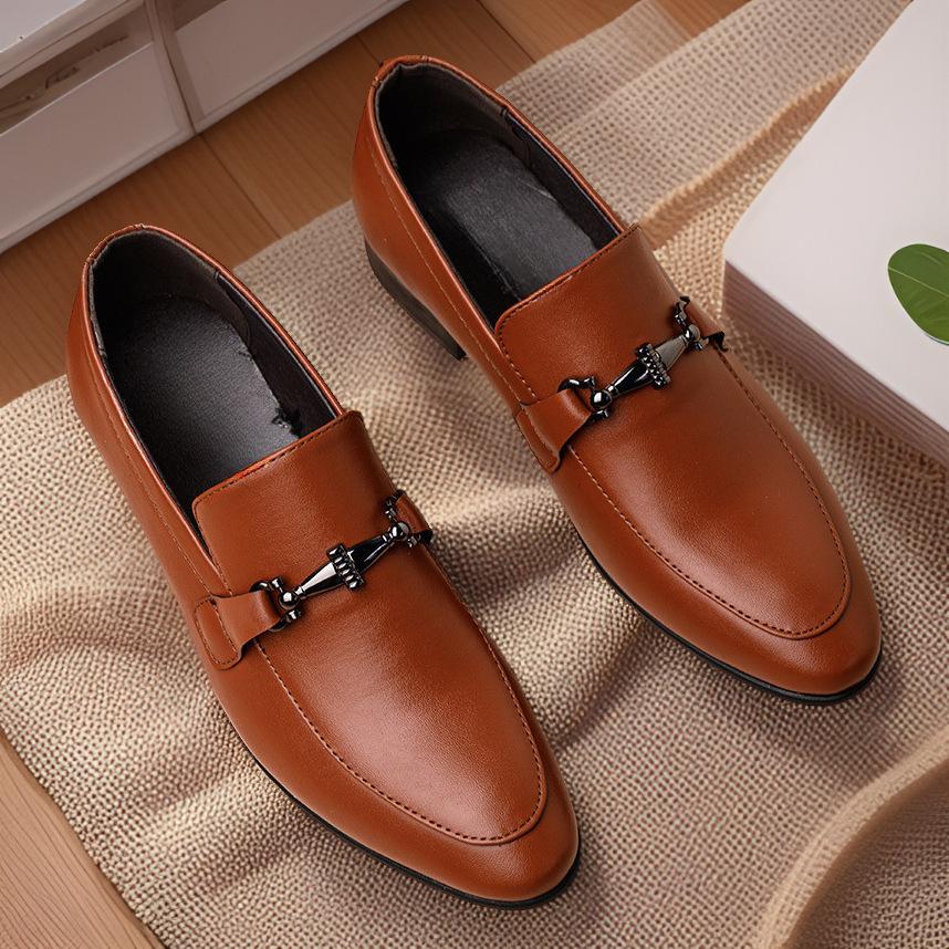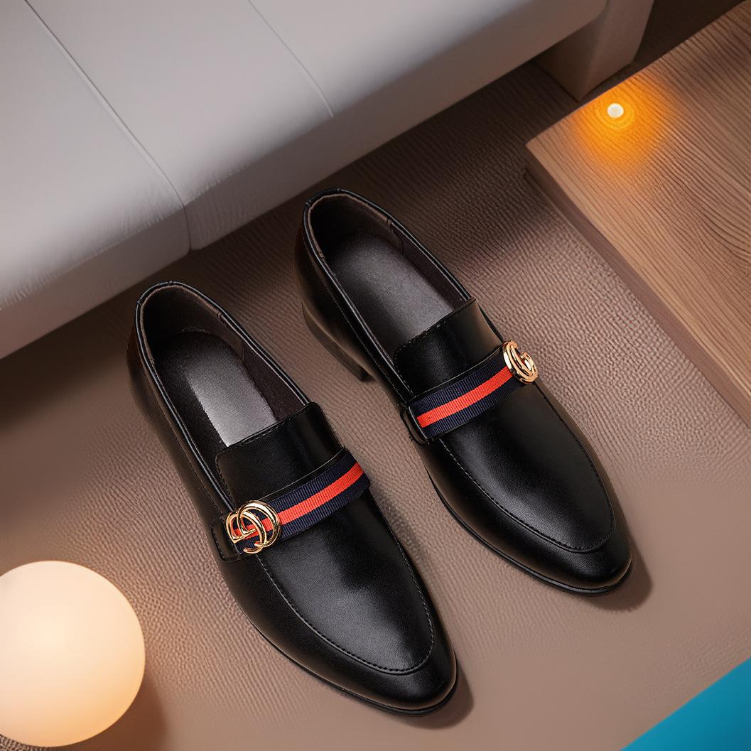 Zapatos de cuero negro con punta y suela suave y transpirable para hombre, estilo coreano, informales, de cuero blanco, para negocios y negocios.