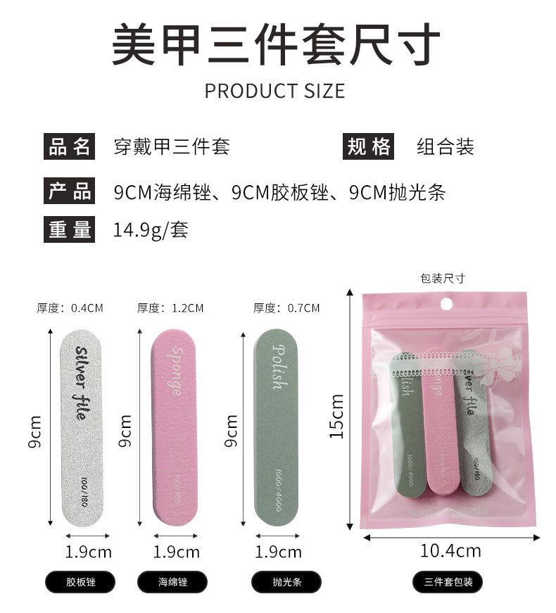 Kit de herramientas para uñas de tres piezas: tira para frotar, tira para pulir, lima de esponja, tira para pulir uñas, lima de uñas