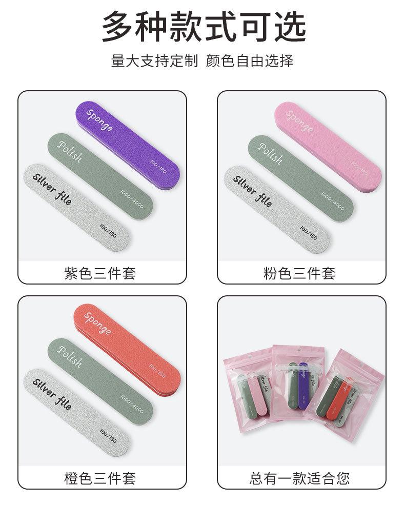 Purple three-piece set, Pink three-piece set, Orange three-piece set, Green and white polishing strip, silver ...