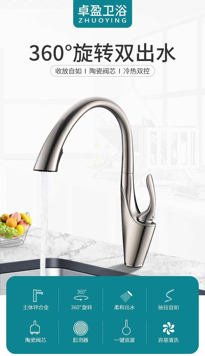 Grifo de cocina extraíble creativo de aleación de zinc de doble fila vertical giratorio para lavabo de verduras, grifo para fregadero de lavabo al por mayor