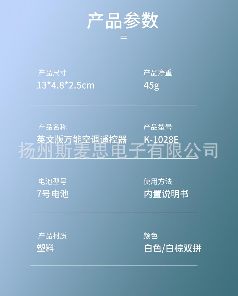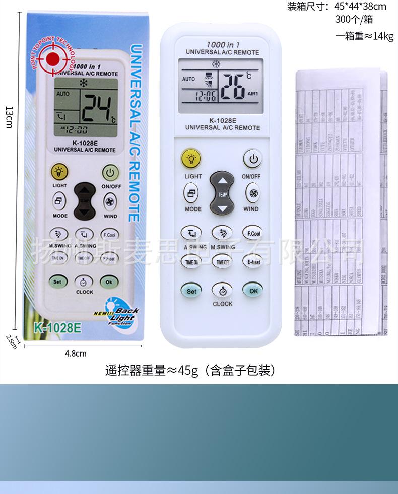 Versión en inglés control remoto universal para aire acondicionado K-1028E global universal comercio exterior especial configuración de un botón