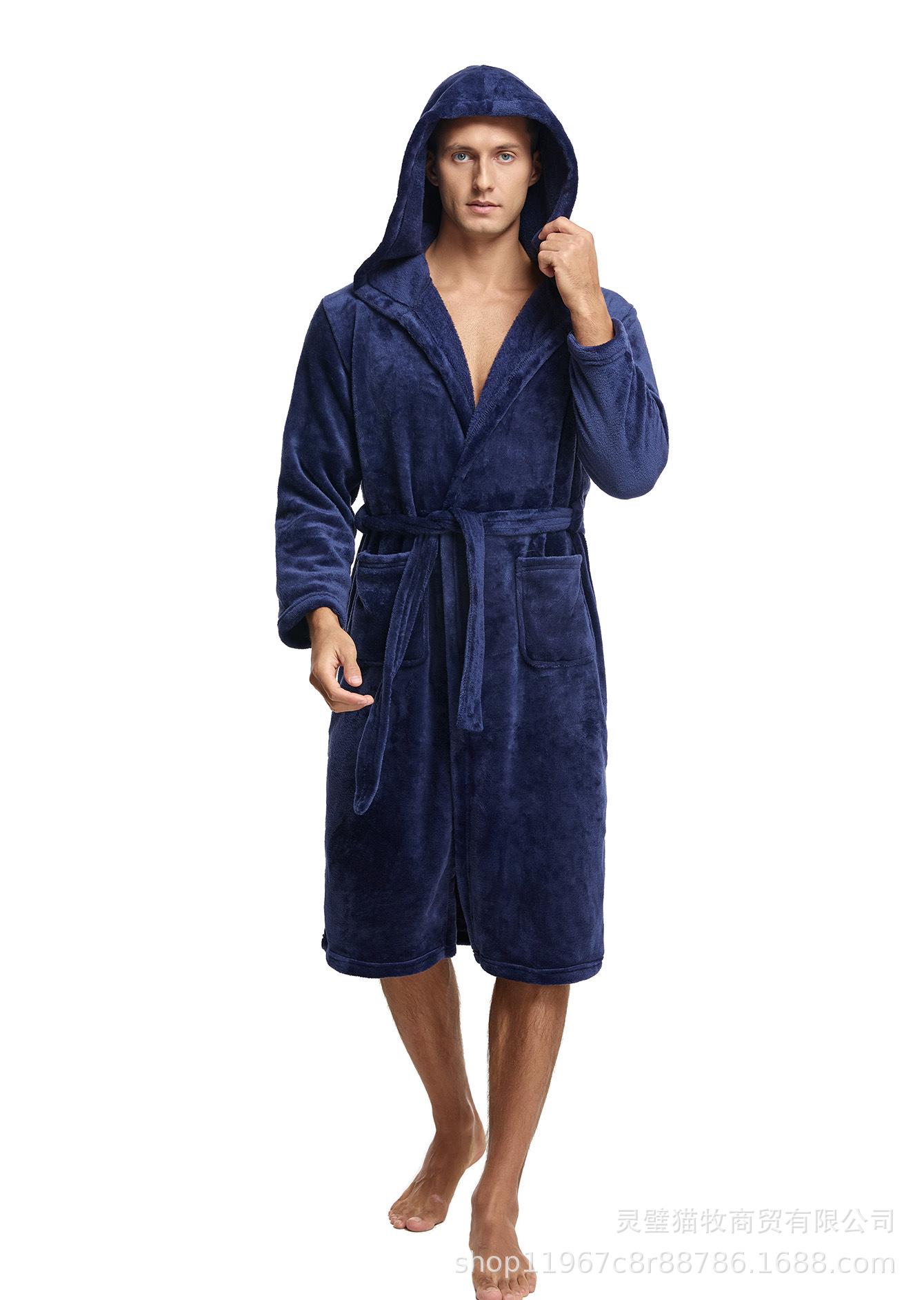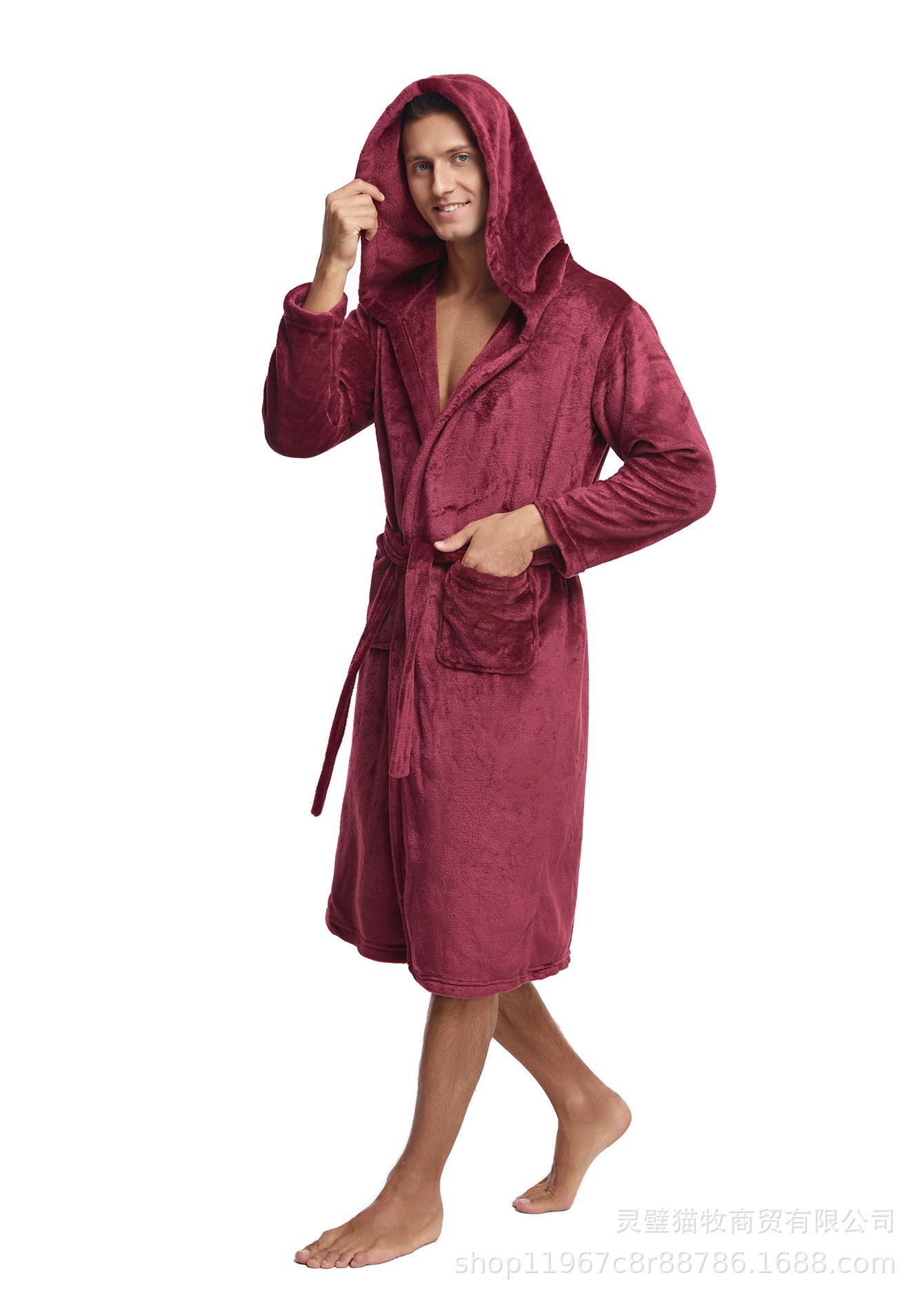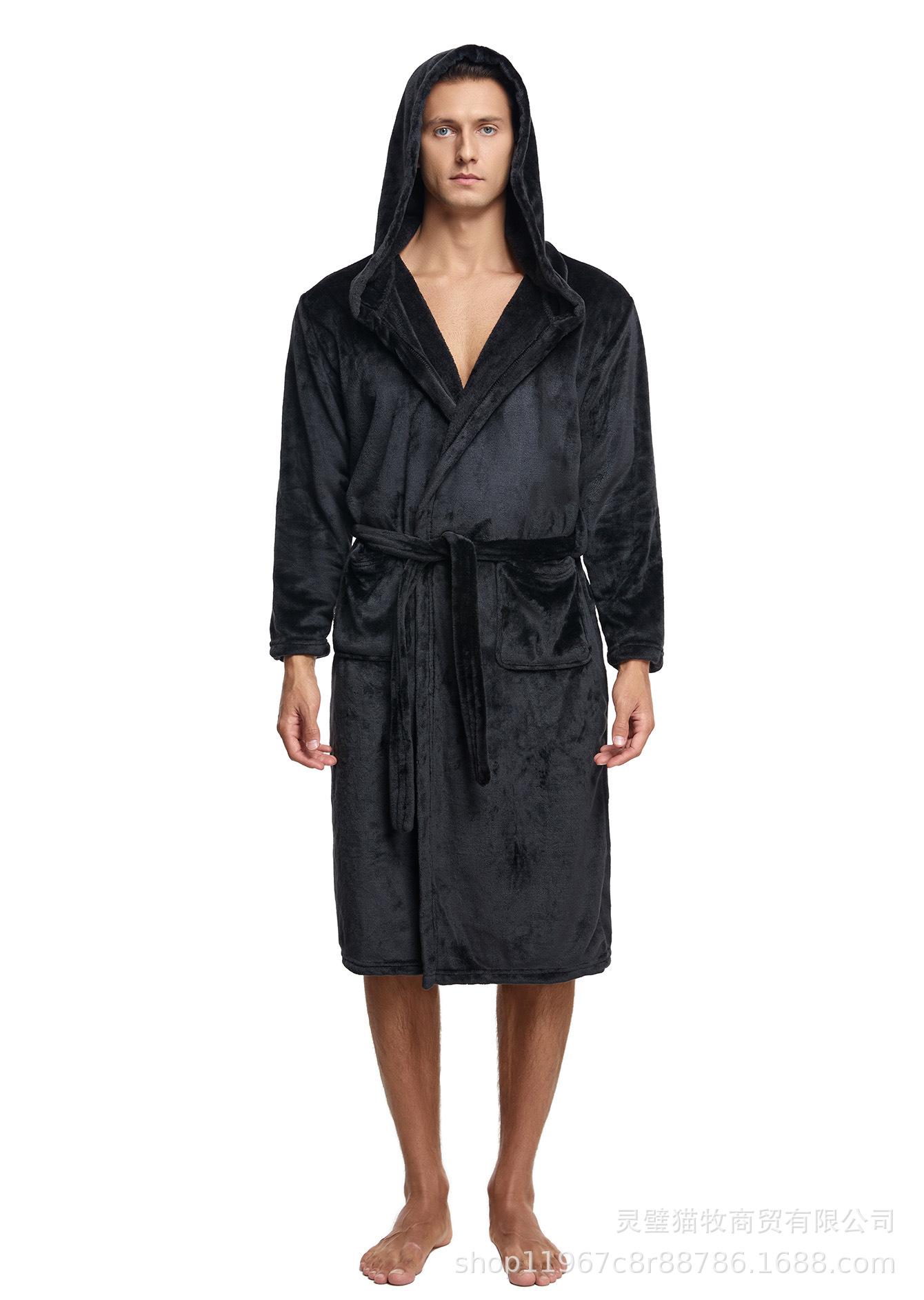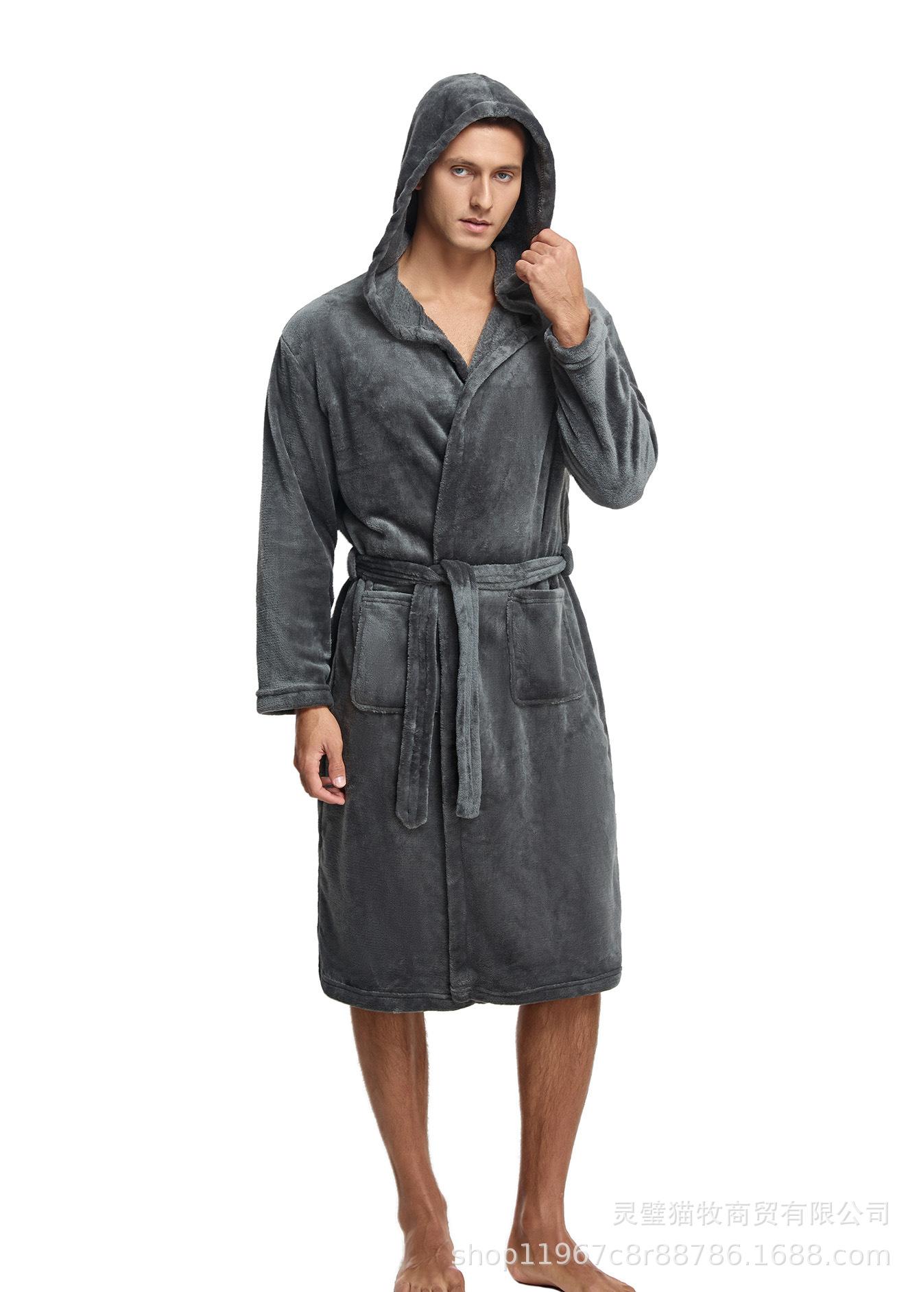 Bata de Noche de Franela Transfronteriza para Hombre con Gorro Bata de Baño de Forro Polar Coral Pijama Ropa para el Hogar con Capucha Bata de Hotel Amazon Daifa