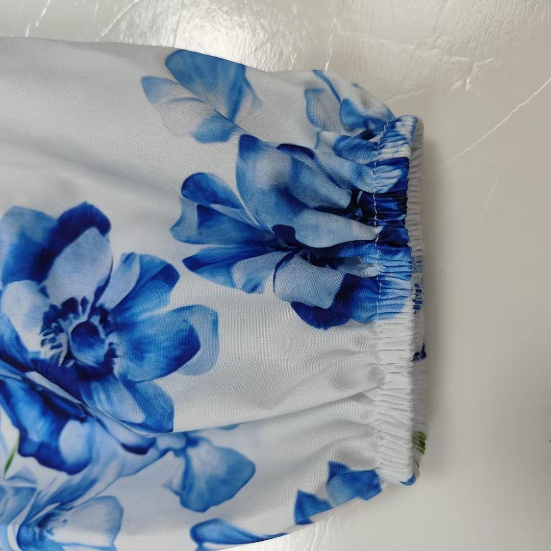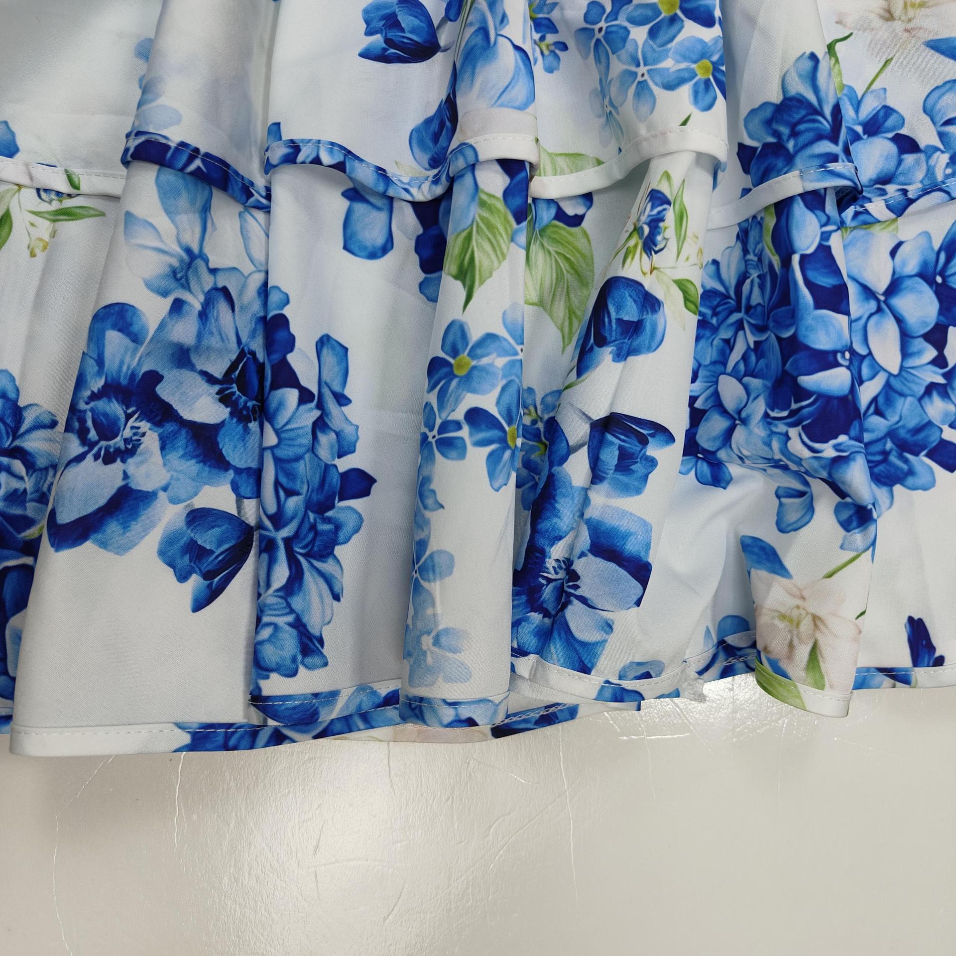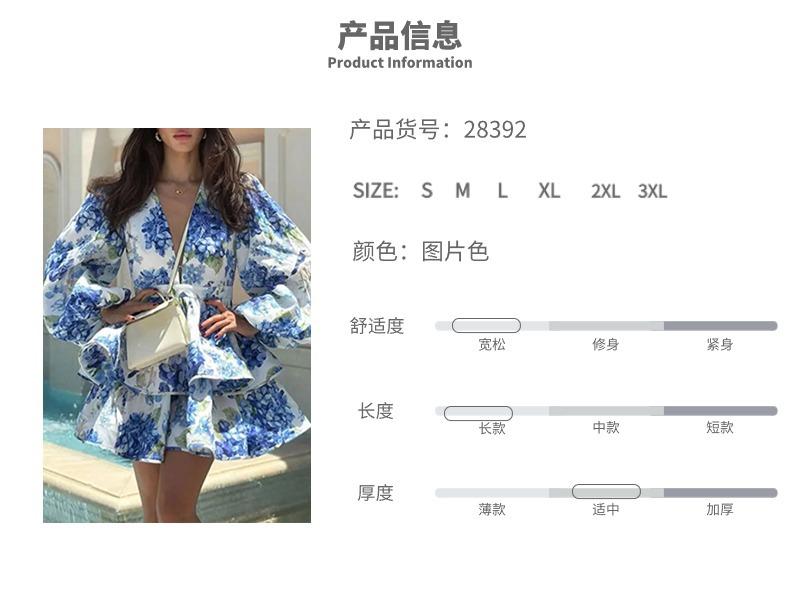 Vestido de mujer transfronterizo estilo palacio de vacaciones, cuello alto, manga farol, estampado plisado corto, diseño de cintura, 2025