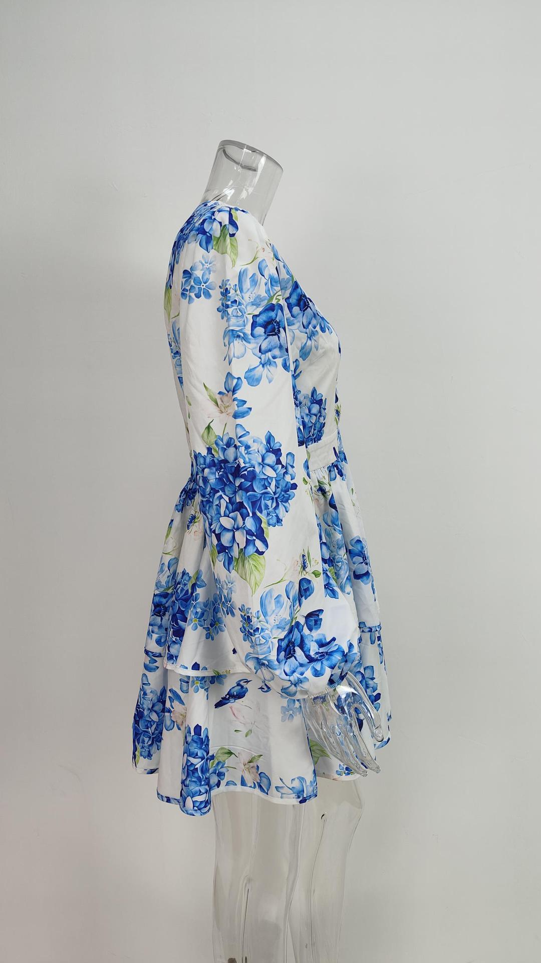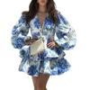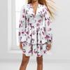 2024 Amazon Otoño e Invierno Nueva ropa de mujer europea y americana con estampado fresco solapa manga larga vestido plisado corto femenino