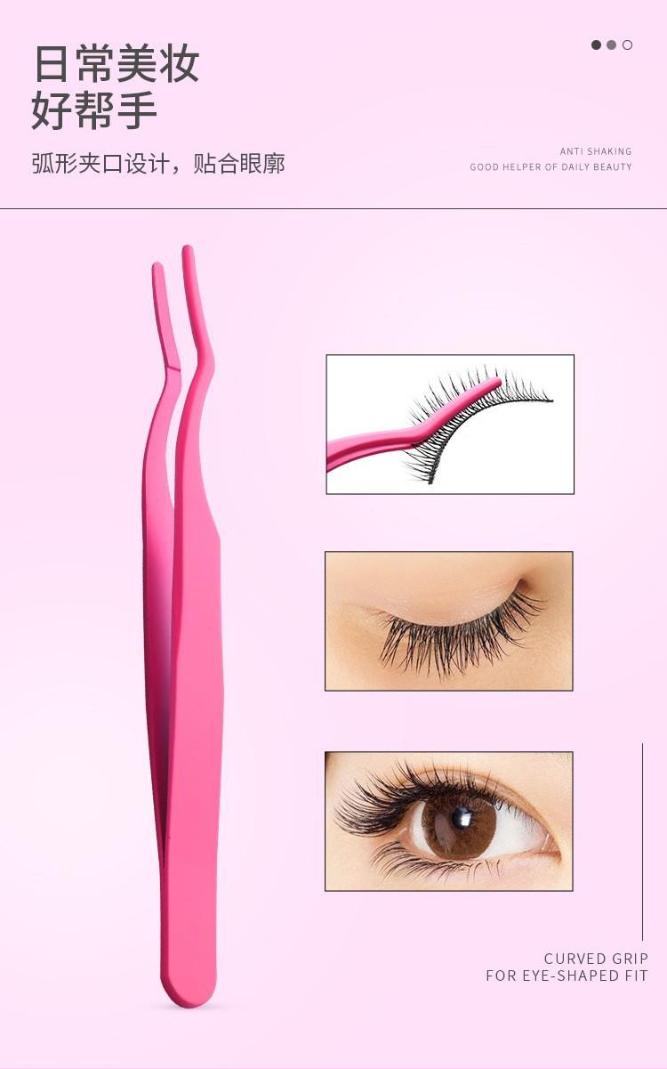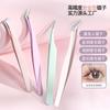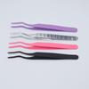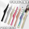 Pinzas de acero inoxidable de boca plana curva, pinzas de reparación de color para injerto de pestañas y cejas, pinza para cejas de boca plana curva