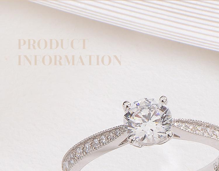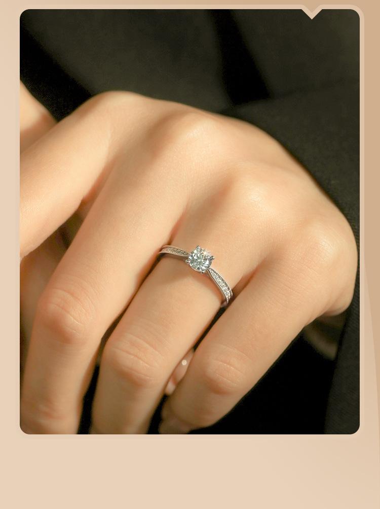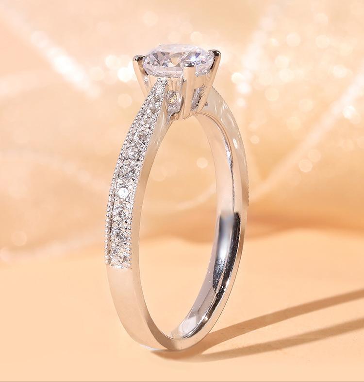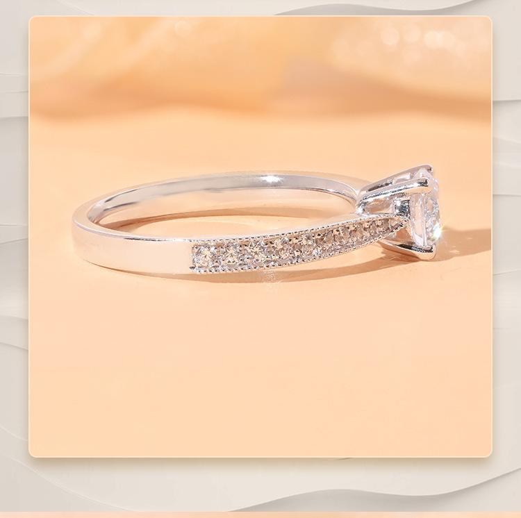 Anillo clásico de cuatro garras con diamantes artificiales de alto carbono PT950 chapados en princesa de 1 quilate para mujer, ideal para propuestas europeas y americanas.