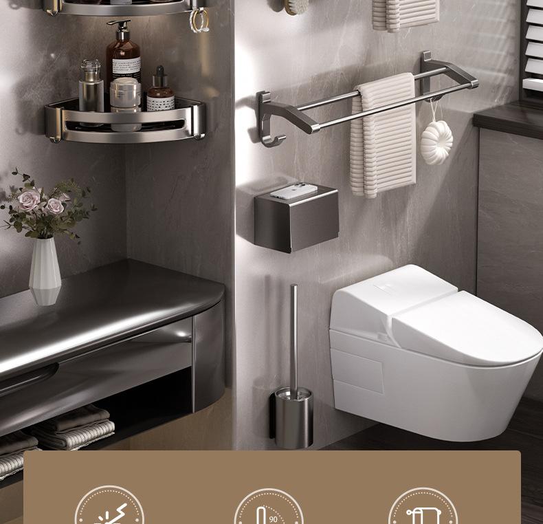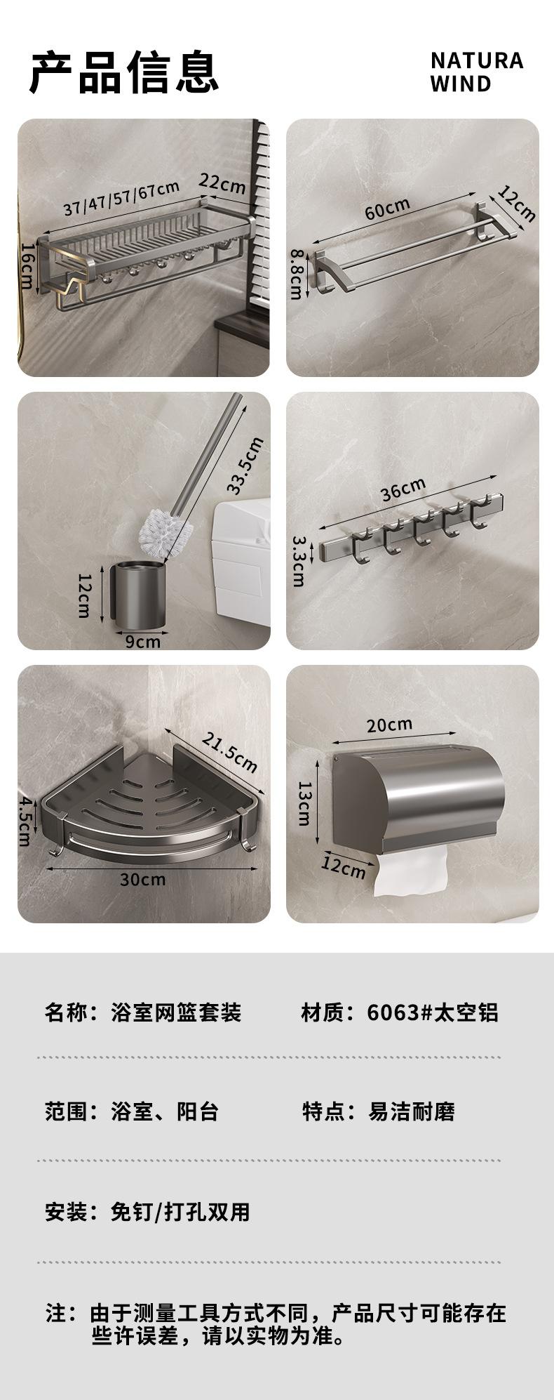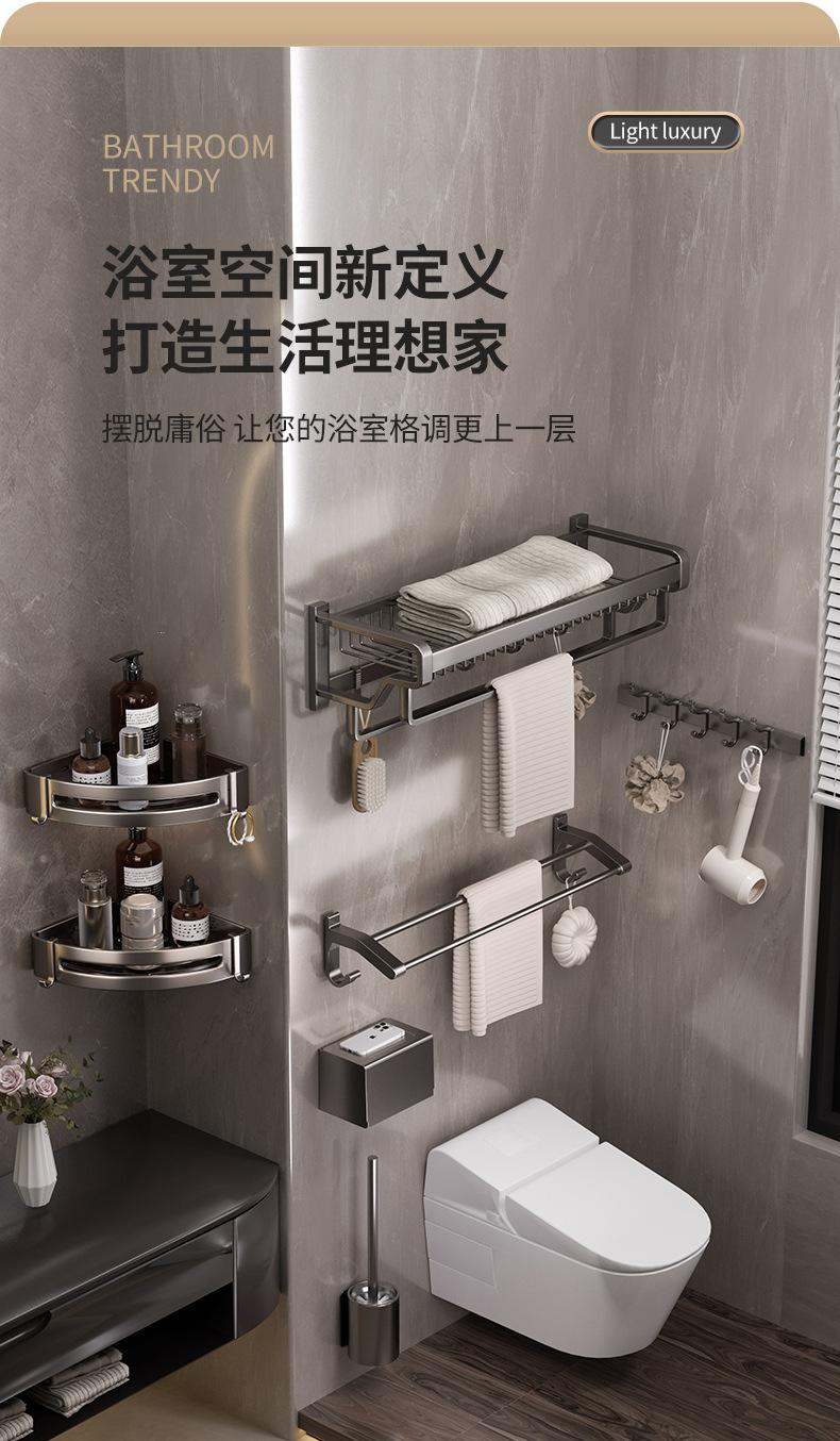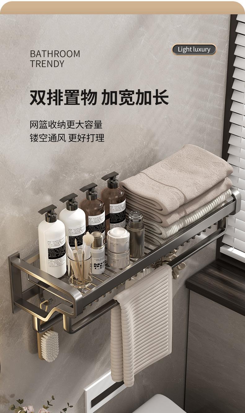 ❁Gun ash 67cm double rod net basket bath towel rack (dual use)❁