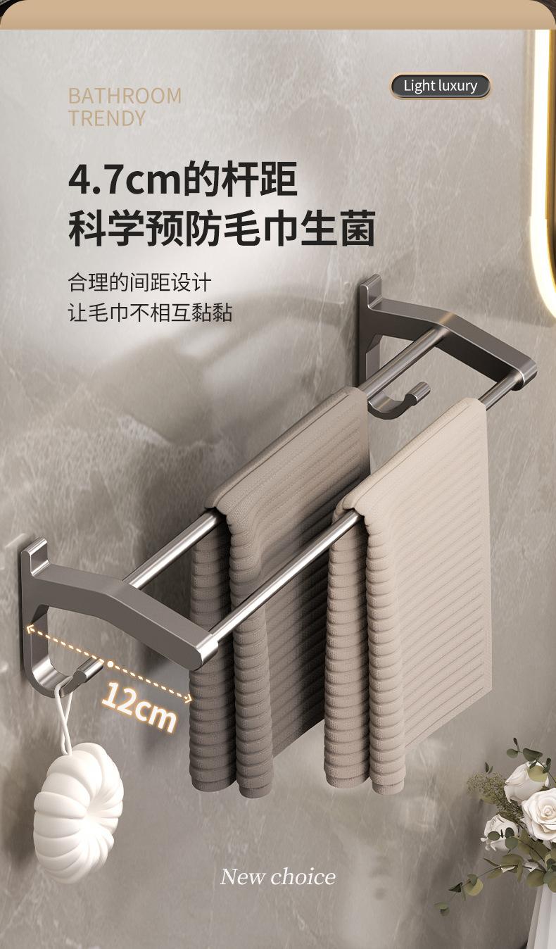 ❁Gun ash 50cm double pole towel rack (no need to punch holes)❁