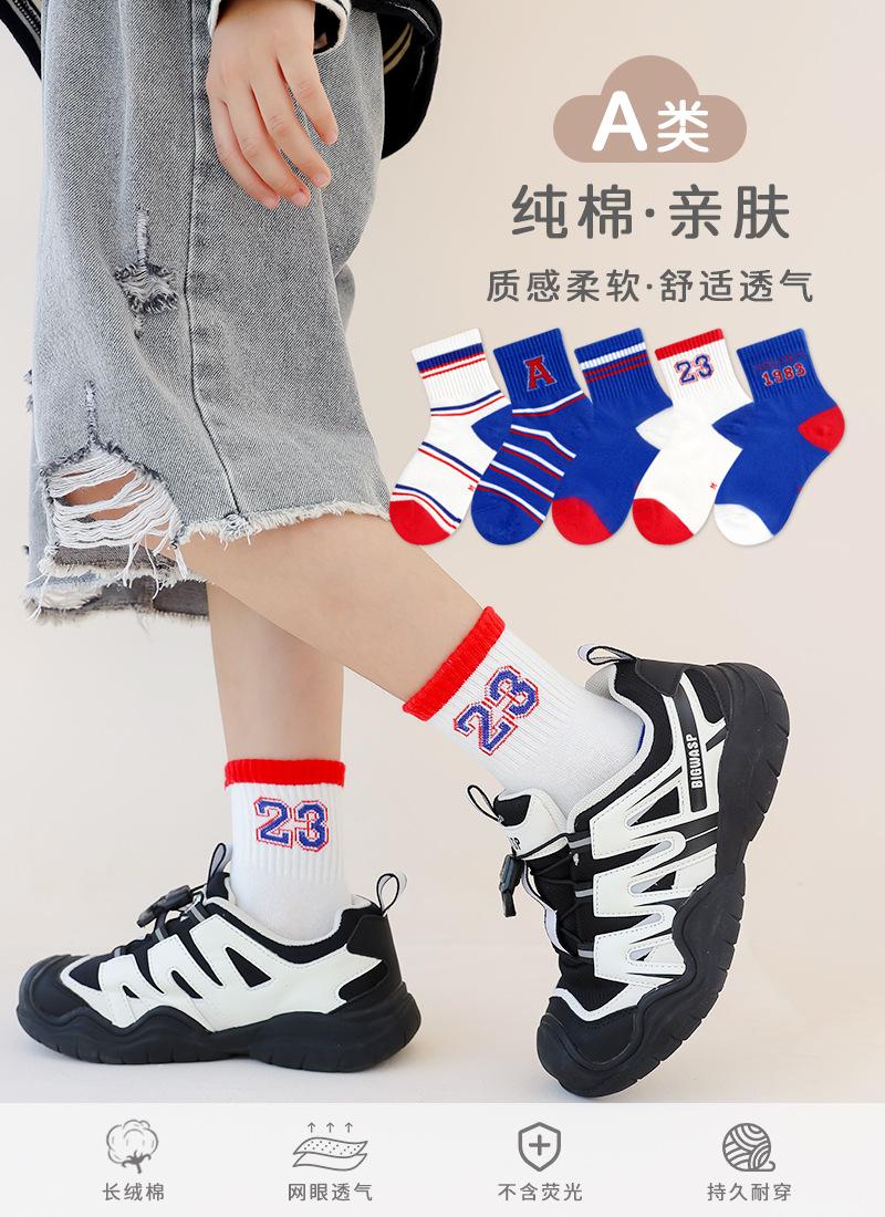 Calcetines para niños otoño e invierno 2024 nuevos para niños rayas rojas y azules deportes calcetines grandes para niños calcetines de algodón universitarios al por mayor