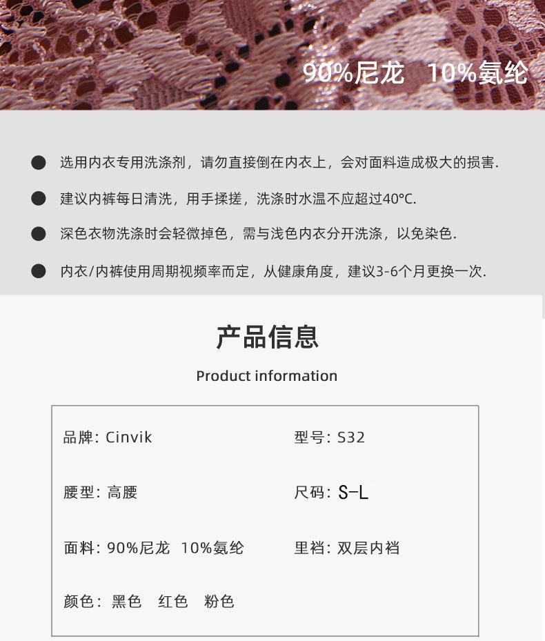 Ropa interior de mujer, bragas de encaje de cintura alta, bragas de entrepierna de algodón puro, ropa interior sexy para mujer transfronteriza
