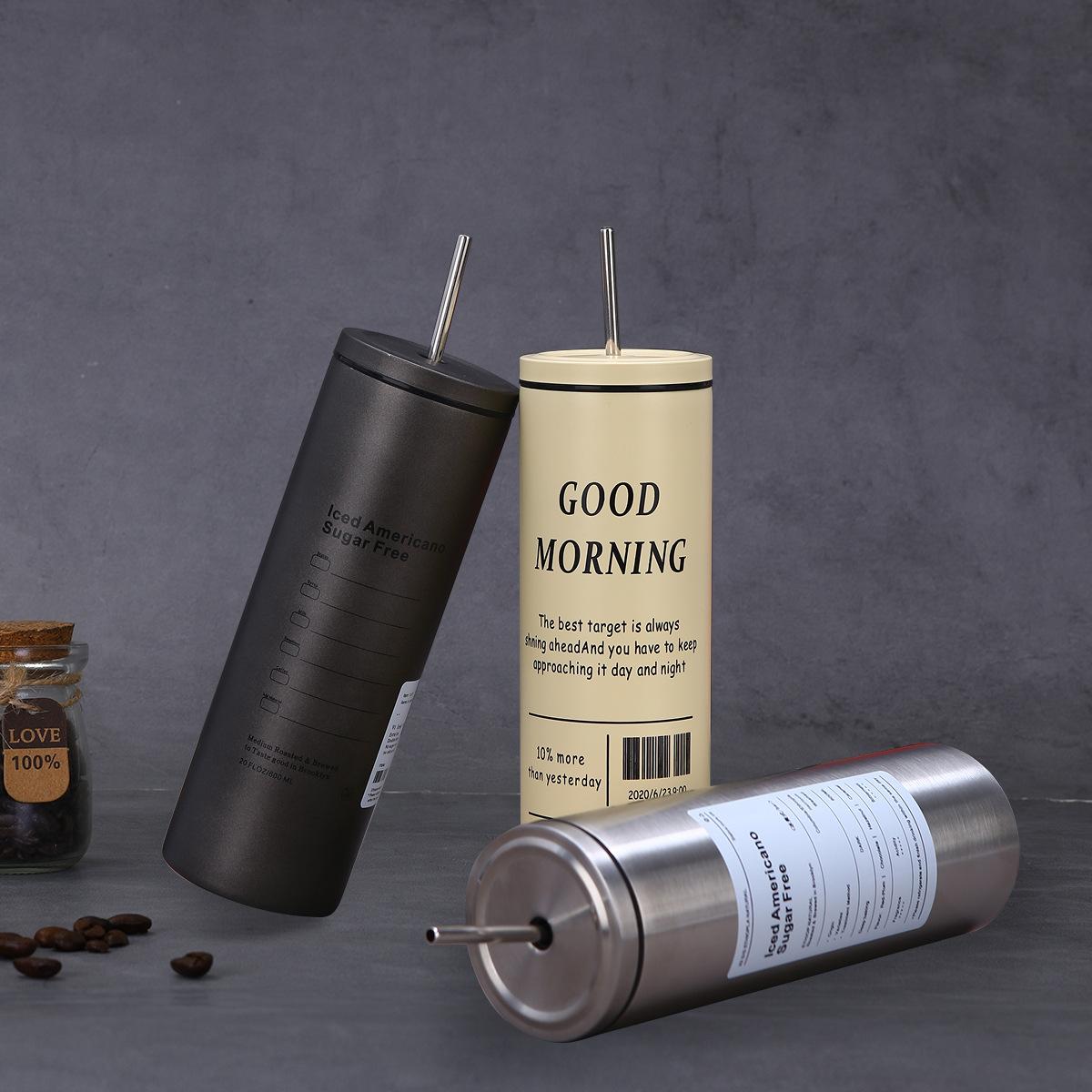 Taza de café americana de acero inoxidable 304 para hielo, portátil, para coche, con pajita, doble vacío, termo de gran capacidad