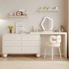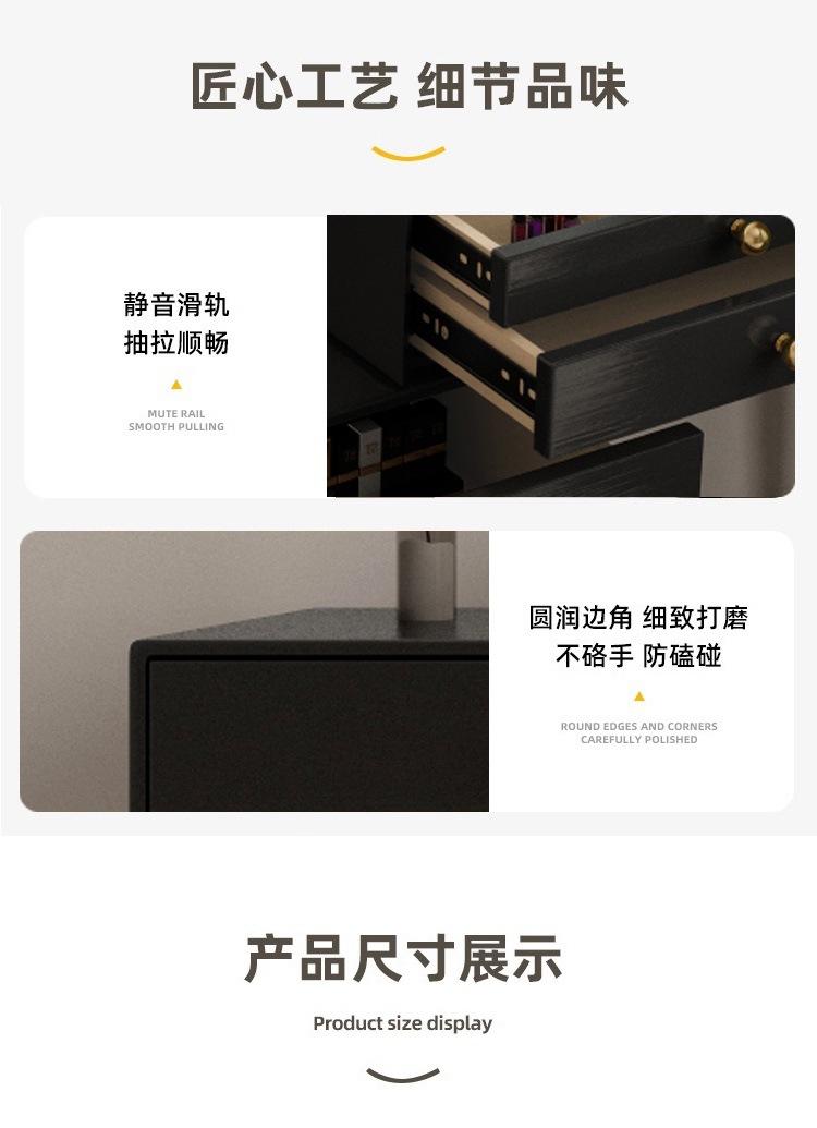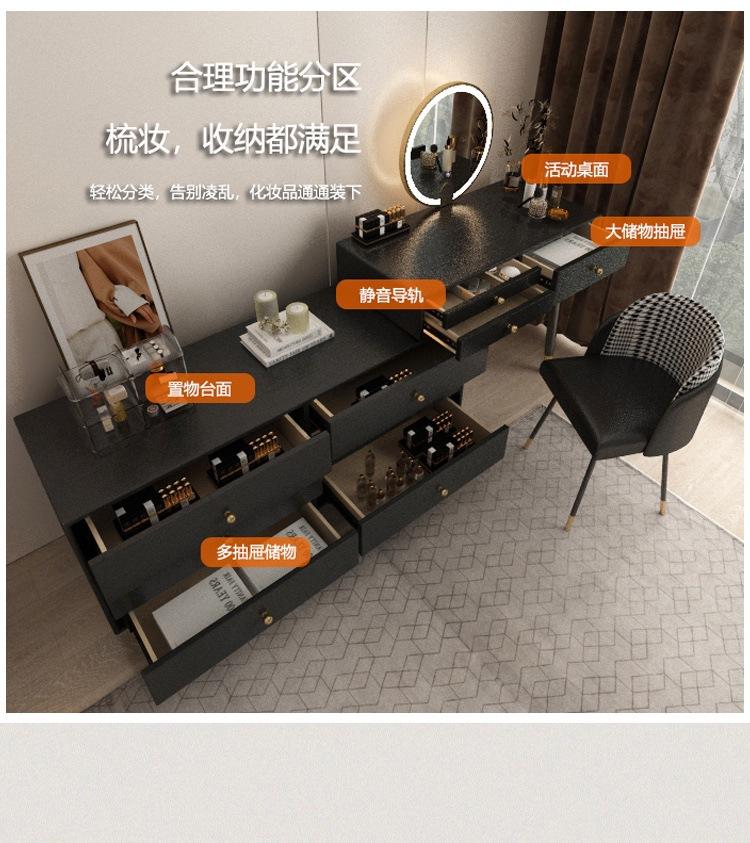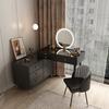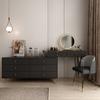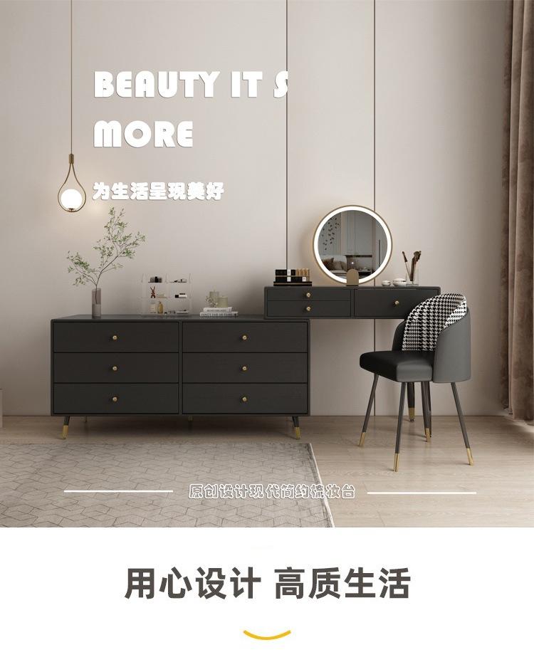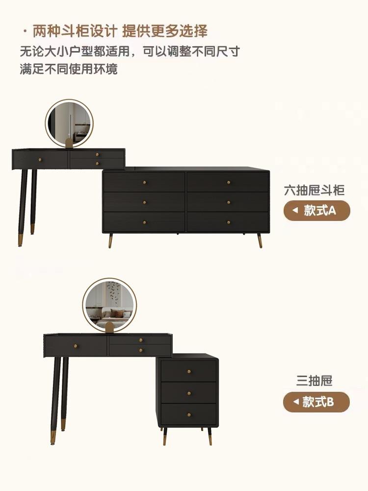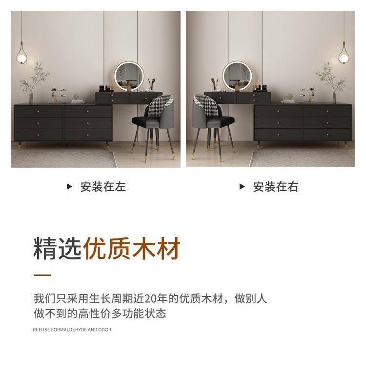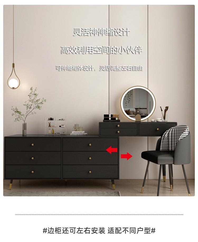 Tocador minimalista de lujo ligero integrado en el dormitorio, mueble de cubo con extremo de cama, mesa de maquillaje de madera maciza con esquina telescópica, escritorio de almacenamiento, tocador.