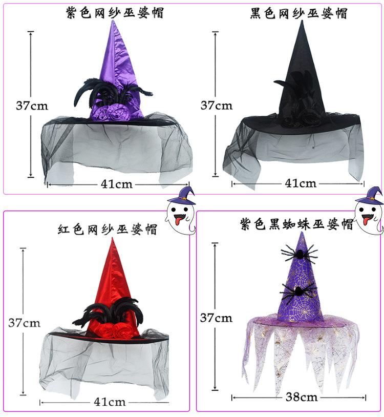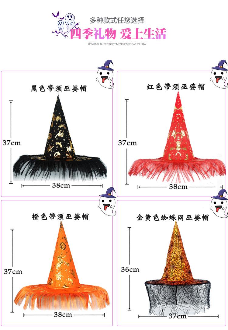Colorful witch hat, Orange sequined witch hat, Orange with witch hat, Orange band witch hat, Single white skul...