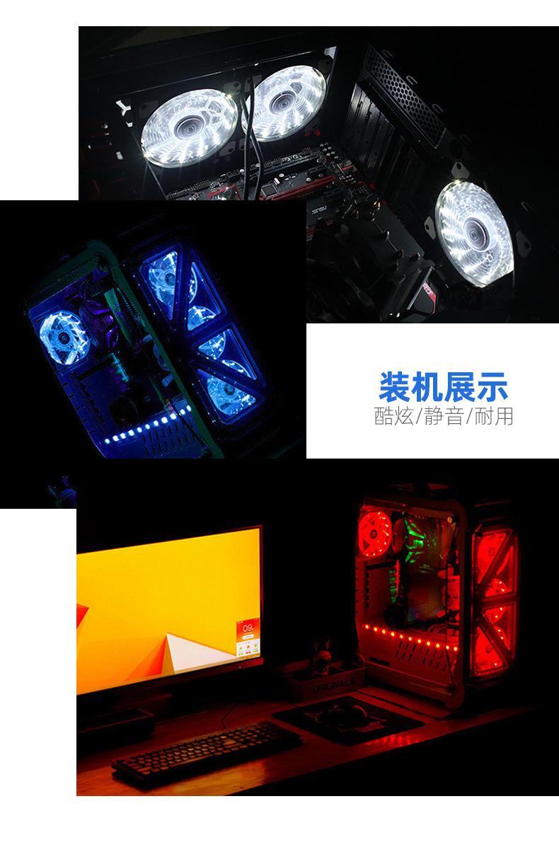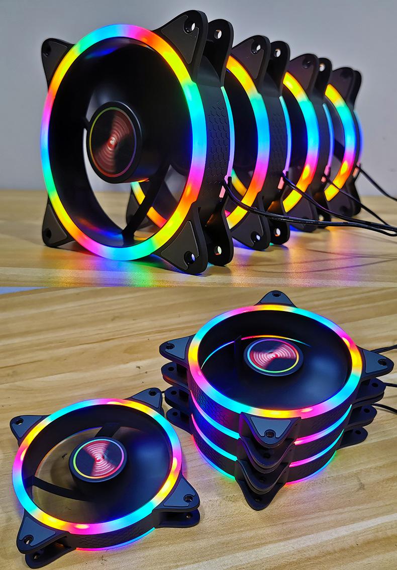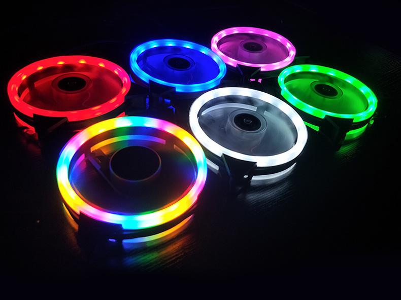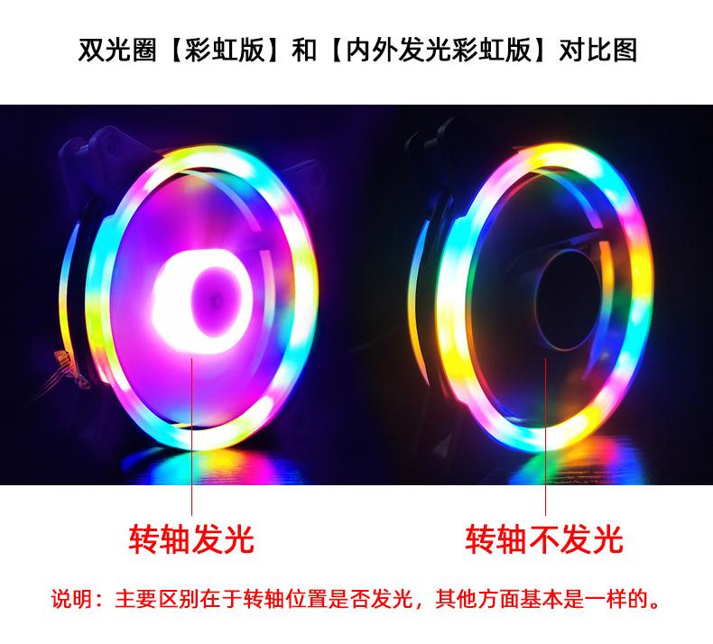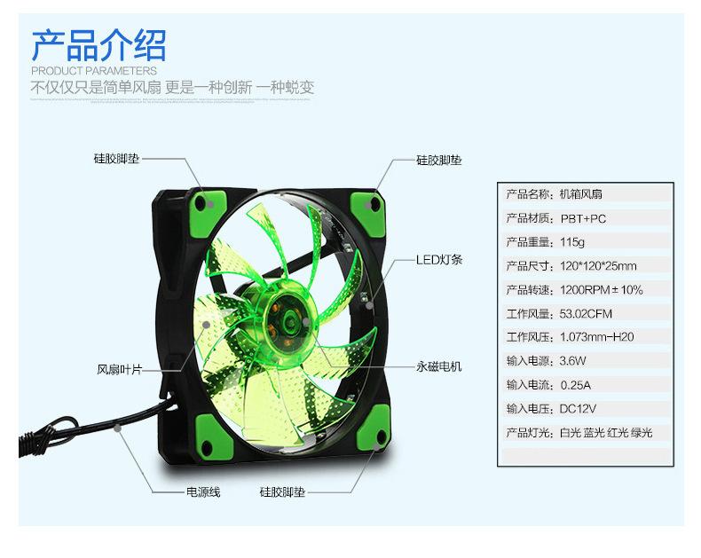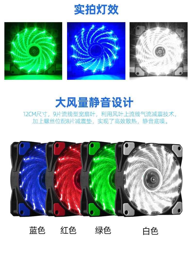 Ventilador de caja de 12 cm con doble apertura, que utiliza perlas de lámpara LED de alto brillo y larga vida útil (los equivalentes en el mercado son básicamente de brillo medio-bajo y perlas de lámpara de vida útil ordinaria), con 8 almohadillas amortiguadoras, utilizando un motor de alta calidad y aspas de gran flujo de aire, lo que hace que el ventilador sea fresco, silencioso y más duradero! [Ventas directas de fábrica, bienvenido a comprar, descuentos por cantidad disponibles] Nota: Debido a diferentes lotes, los colores de las aspas se envían aleatoriamente!