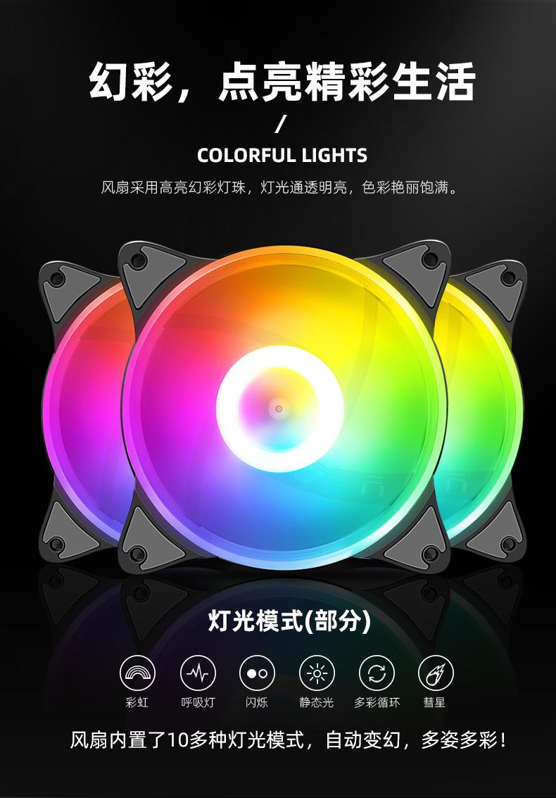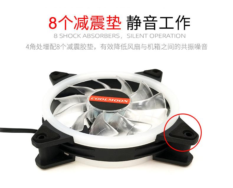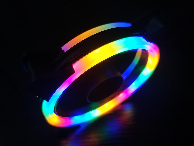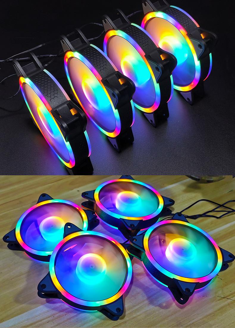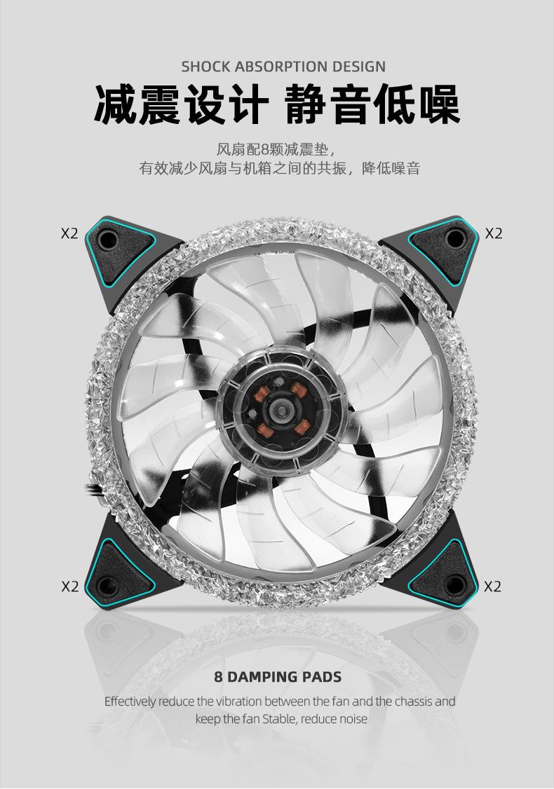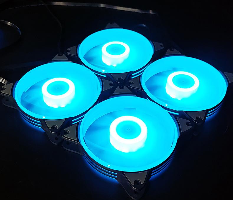 Ventilador de caja de 12 cm con doble apertura, que utiliza perlas de lámpara LED de alto brillo y larga vida útil (los equivalentes en el mercado son básicamente de brillo medio-bajo y perlas de lámpara de vida útil ordinaria), con 8 almohadillas amortiguadoras, utilizando un motor de alta calidad y aspas de gran flujo de aire, lo que hace que el ventilador sea fresco, silencioso y más duradero! [Ventas directas de fábrica, bienvenido a comprar, descuentos por cantidad disponibles] Nota: Debido a diferentes lotes, los colores de las aspas se envían aleatoriamente!