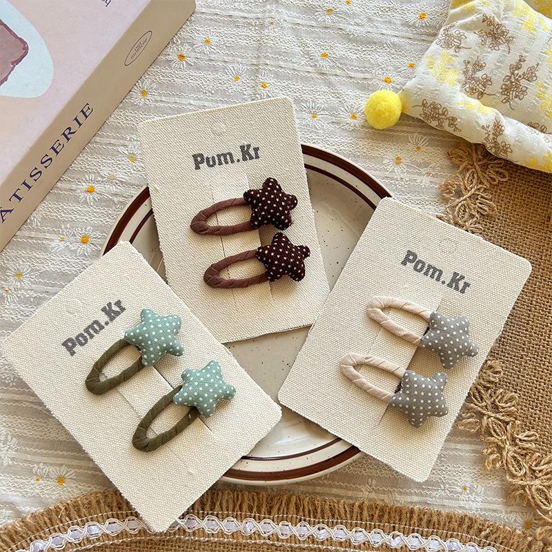 Nuevo estilo coreano simple para niños, versátil, tela de lunares de onda de estrella, lindo clip para flequillo, clip lateral, estrella de cinco puntas, algodón, accesorios para el cabello