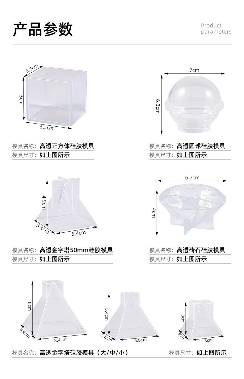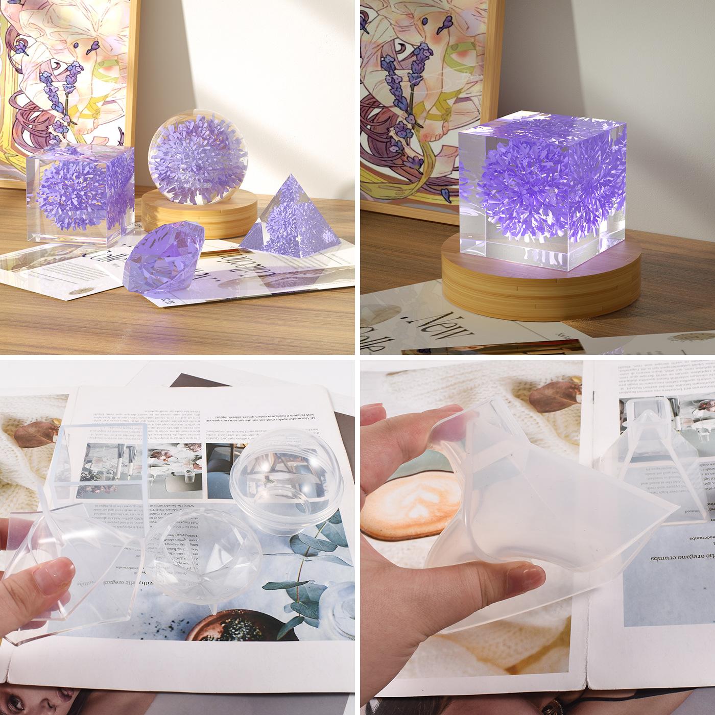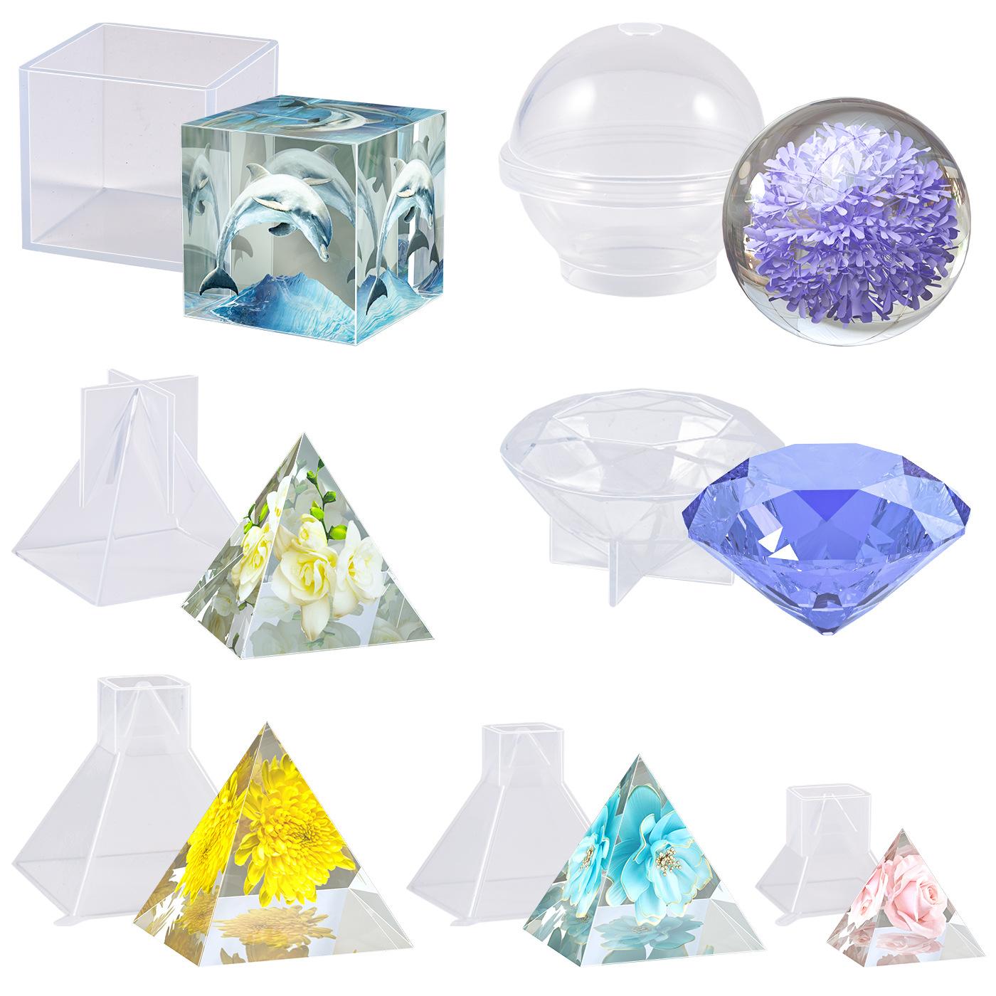 Fabricante en stock, decoración de diamantes de bola 3D, bricolaje, molde de silicona piramidal de alta transparencia de cristal epoxi.