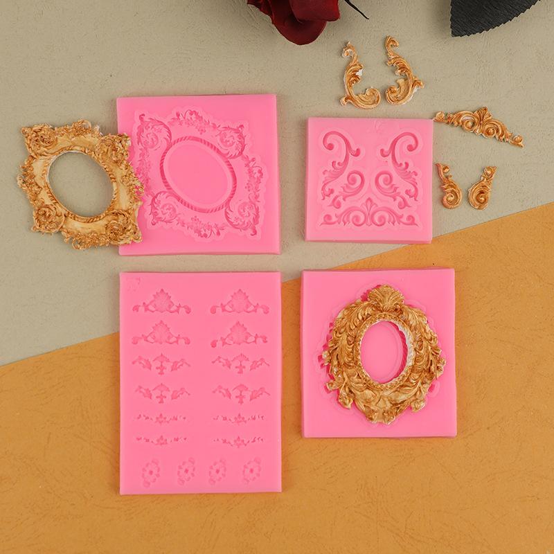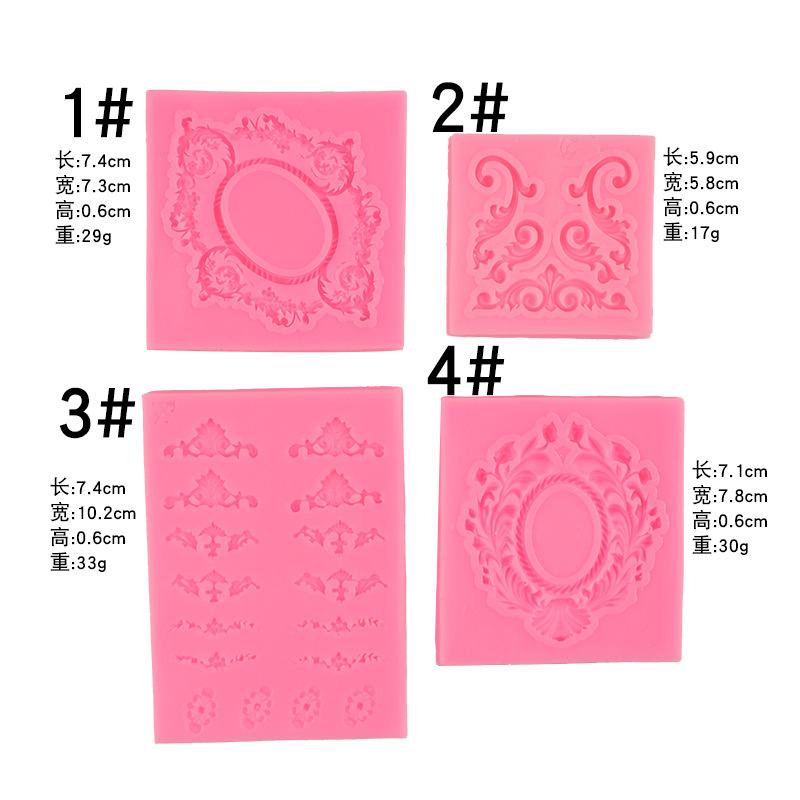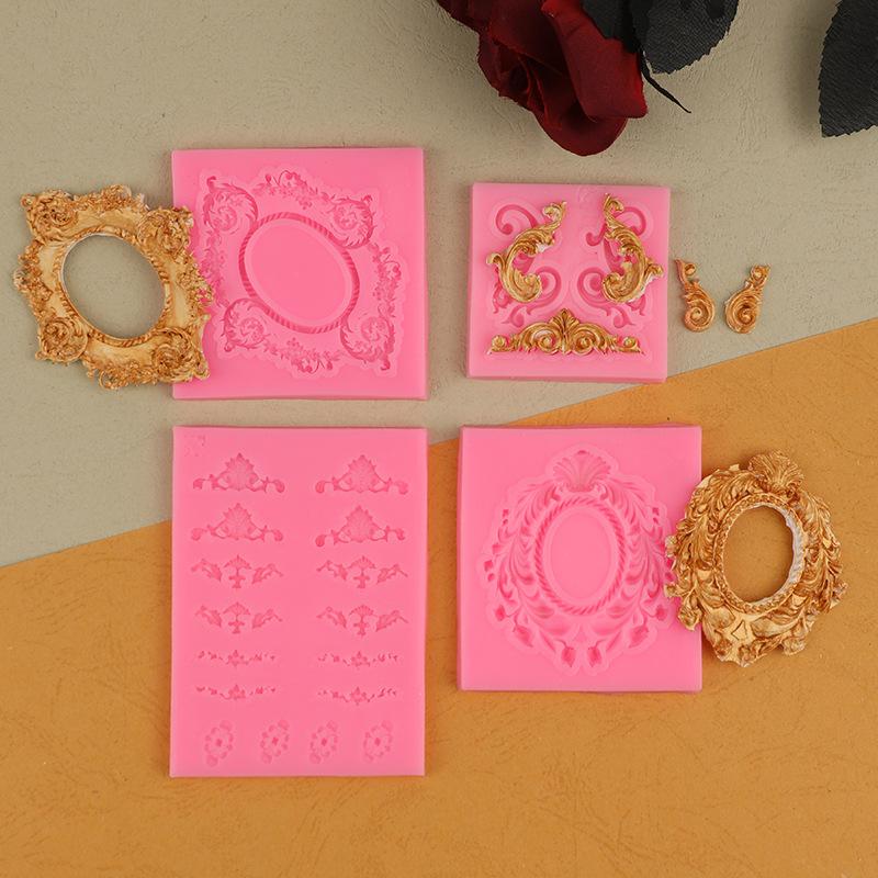 Nombre: Marco de fotos con patrón hueco en relieve retro, molde de silicona para fondant, chocolate, goteo de pegamento, hecho a mano, para hornear pasteles DIY