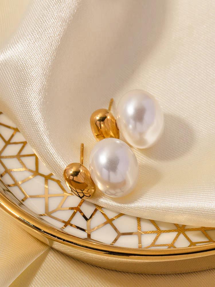 Pendientes de perlas doradas, elegantes, sencillos y personalizados, de lujo, con diseño de nicho, estilo vintage francés y accesorios para las orejas.