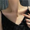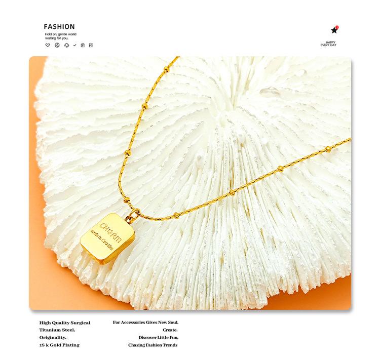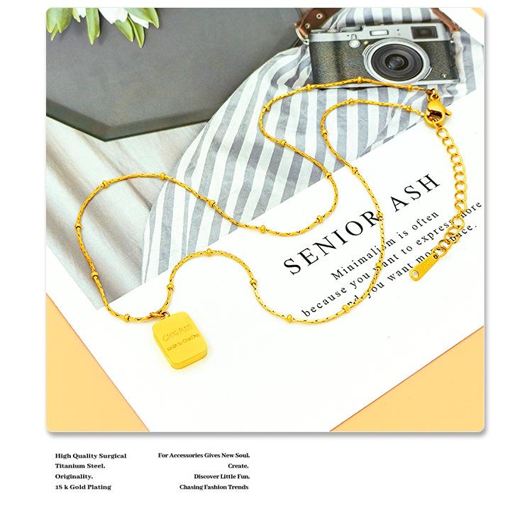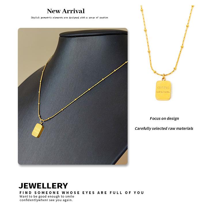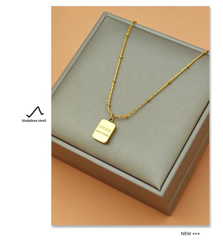 Collar de cuentas redondas irregulares con letras cuadradas de acero de titanio, elegante y moderno, cadena de clavícula sencilla y combinable con todo tipo de metales para mujer.