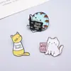 Broche de metal con forma de gato de dibujos animados transfronterizos, divertido gato con tarjeta con letra en inglés, ropa, sombrero, accesorios, insignia