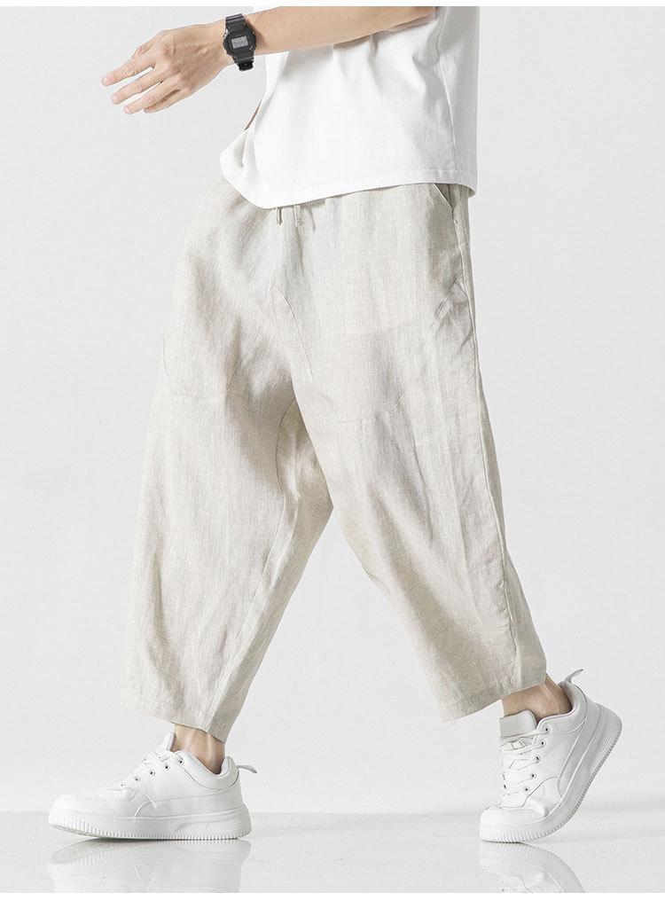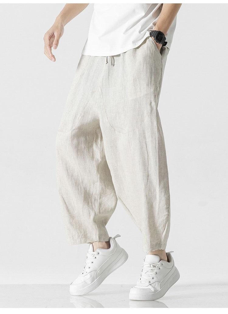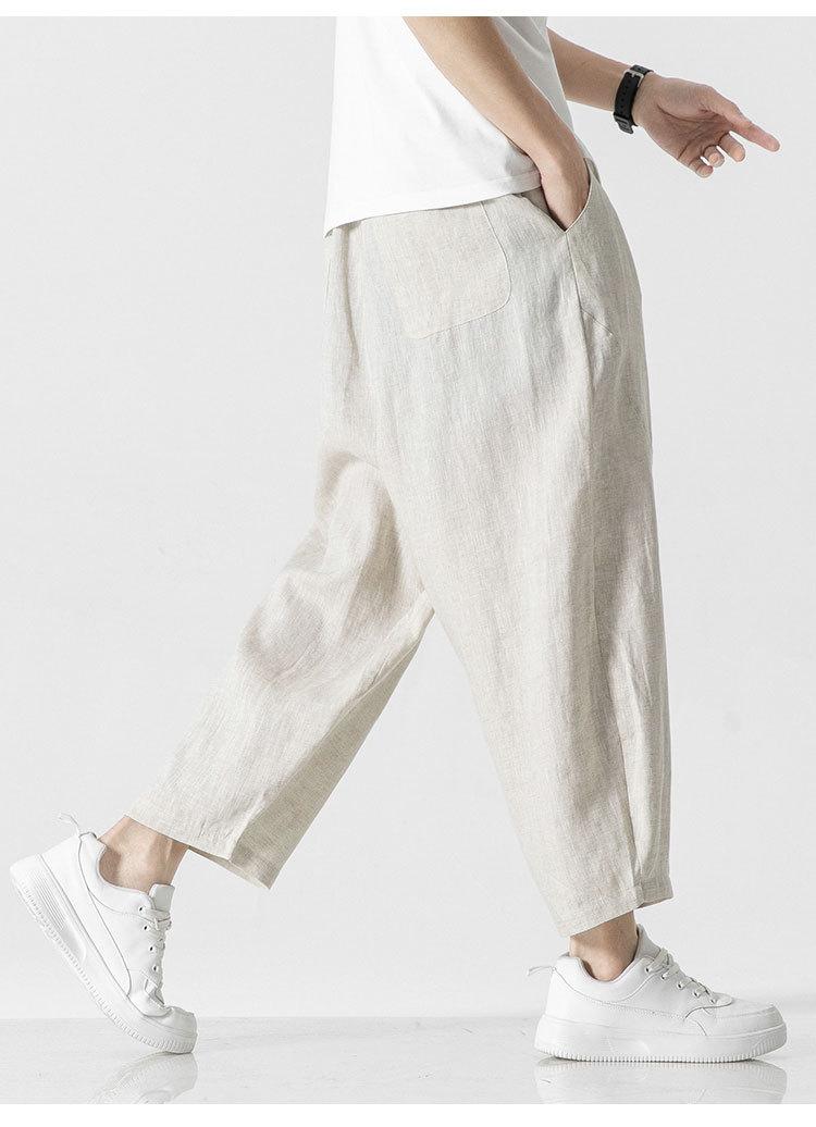 Pantalones Harlan casuales de lino de estilo chino para hombre, cómodos, de color sólido, hasta el tobillo, de talla grande, a la moda, de verano 2023