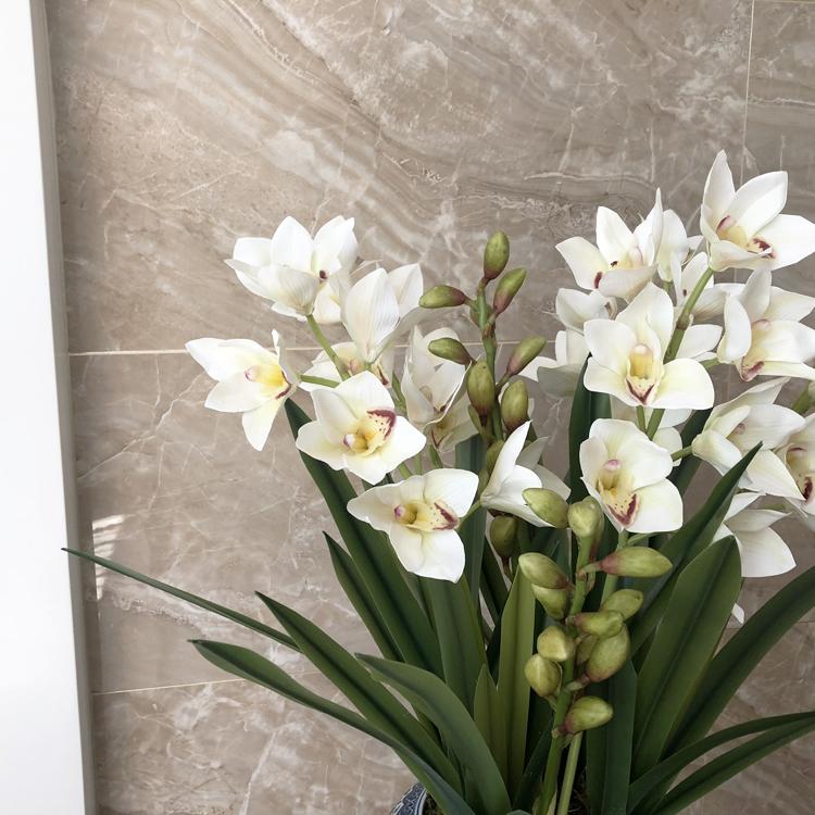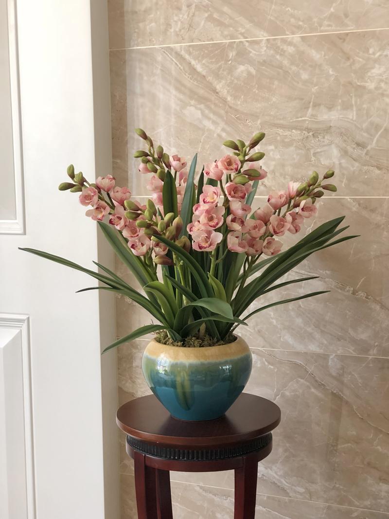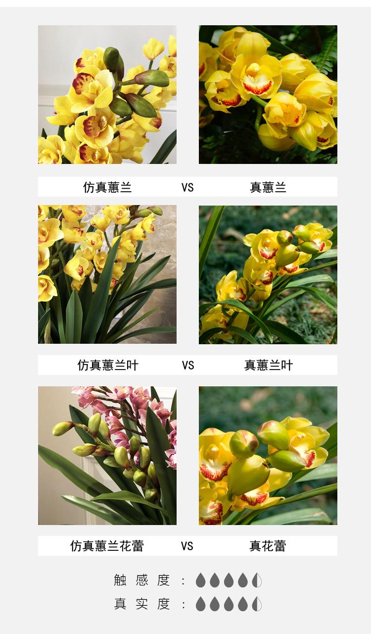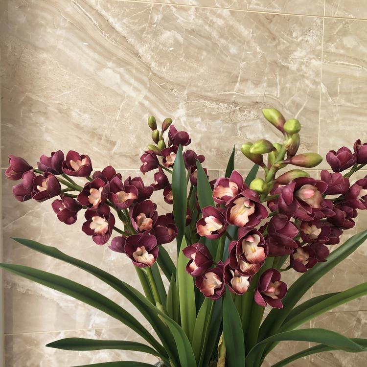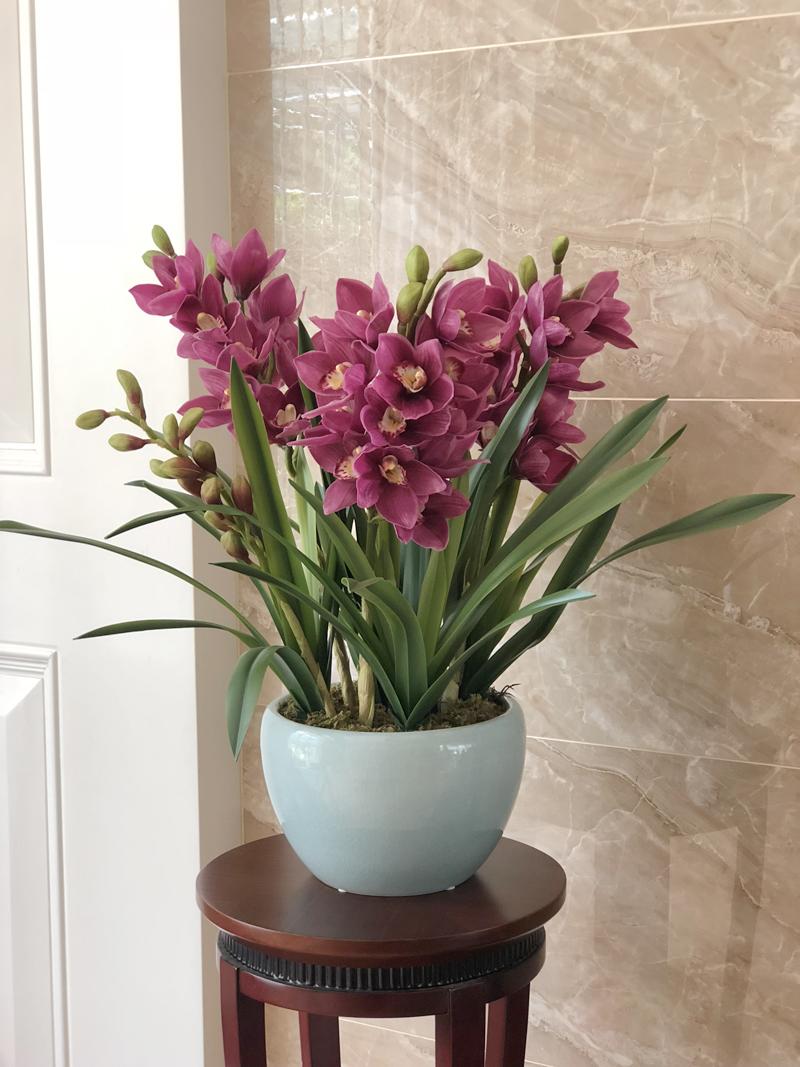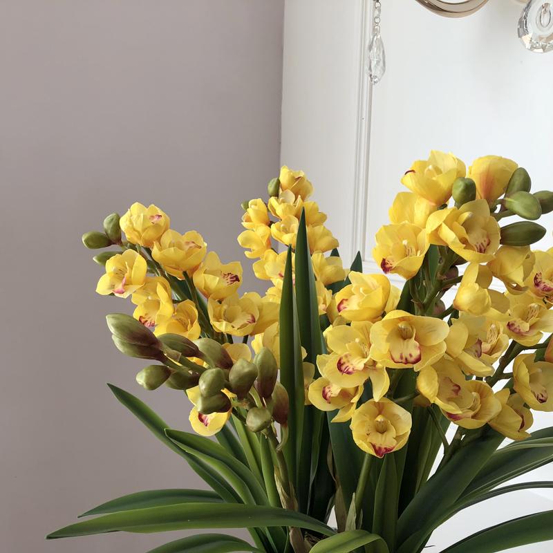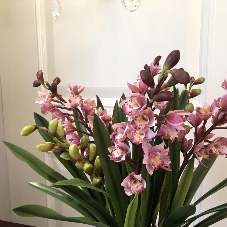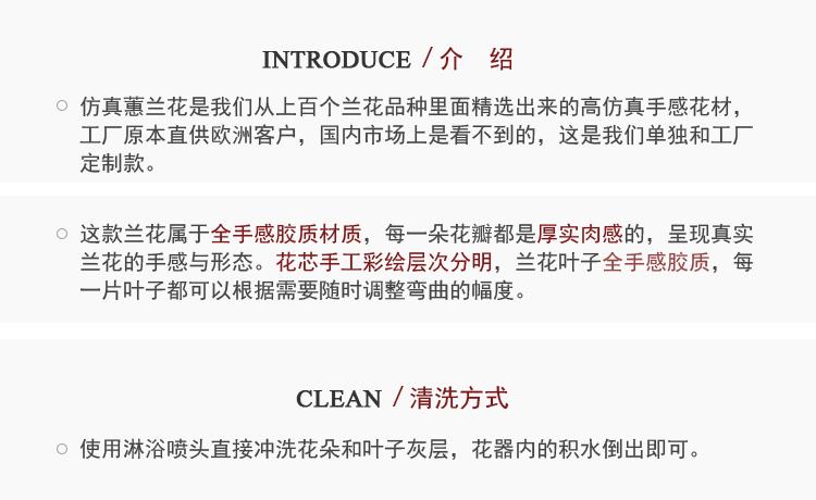Esta orquídea está hecha de material coloidal de tacto completo, y cada pétalo es grueso y carnoso, mostrando la sensación y la forma de una orquídea real. Las hojas de la orquídea están hechas de material coloidal de tacto completo, y cada hoja se puede ajustar al grado de flexión en cualquier momento según las necesidades.