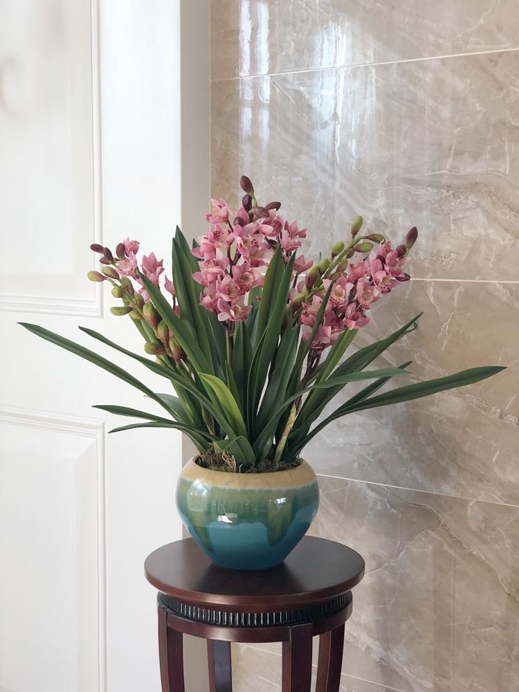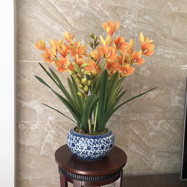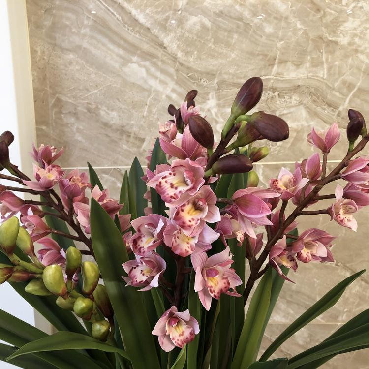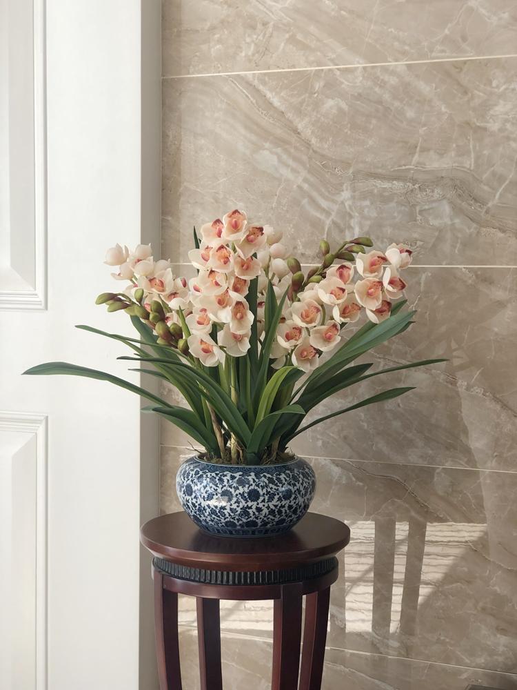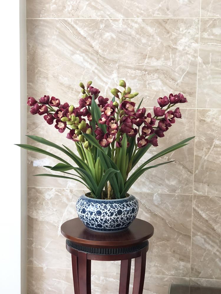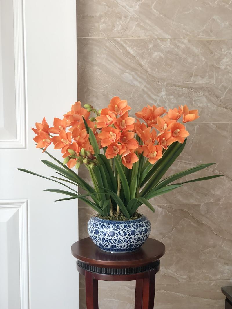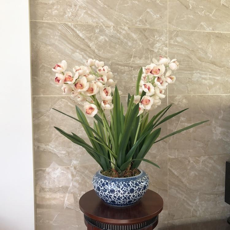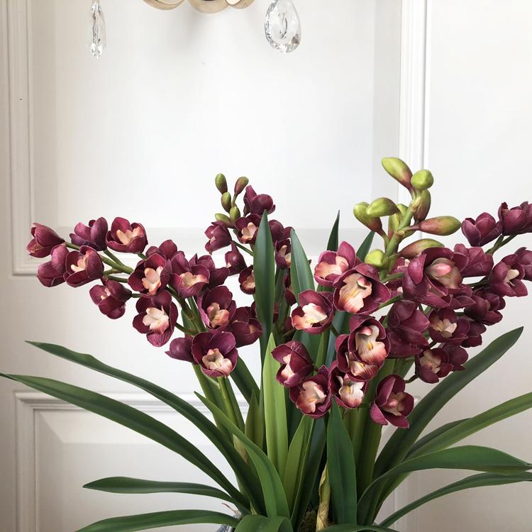 Esta orquídea está hecha de material coloidal de tacto completo, y cada pétalo es grueso y carnoso, mostrando la sensación y la forma de una orquídea real. Las hojas de la orquídea están hechas de material coloidal de tacto completo, y cada hoja se puede ajustar al grado de flexión en cualquier momento según las necesidades.