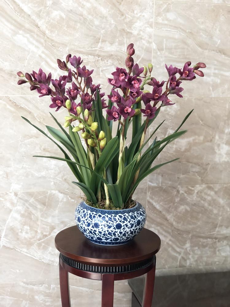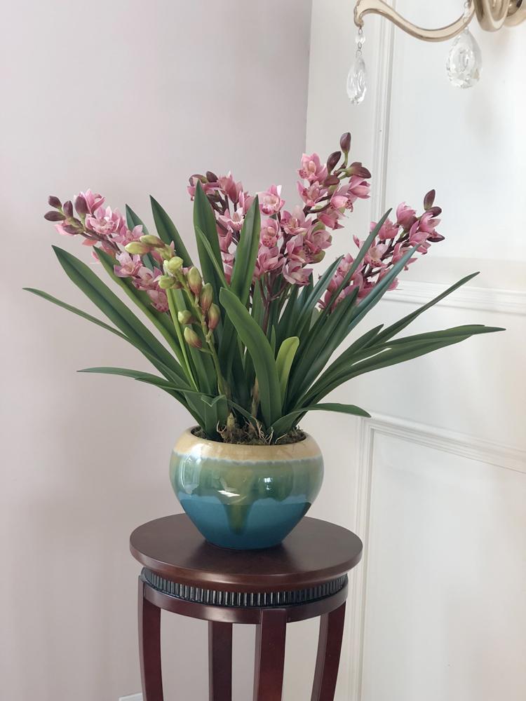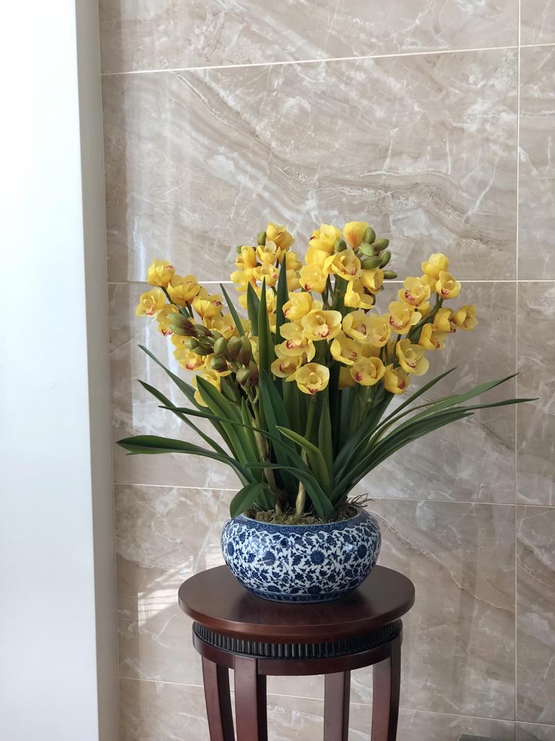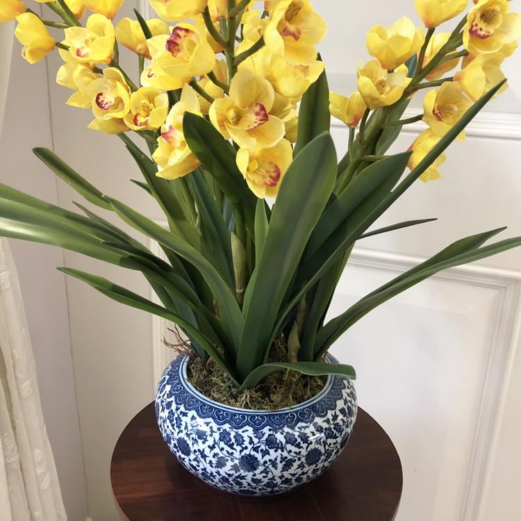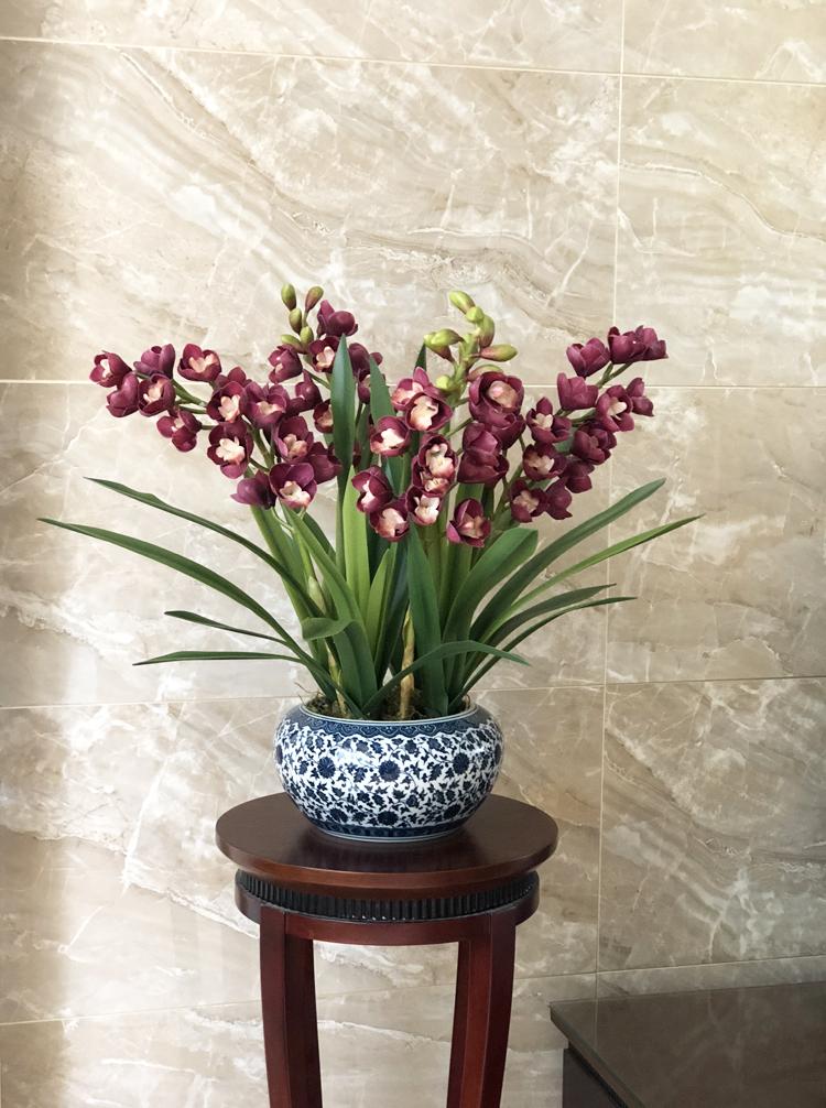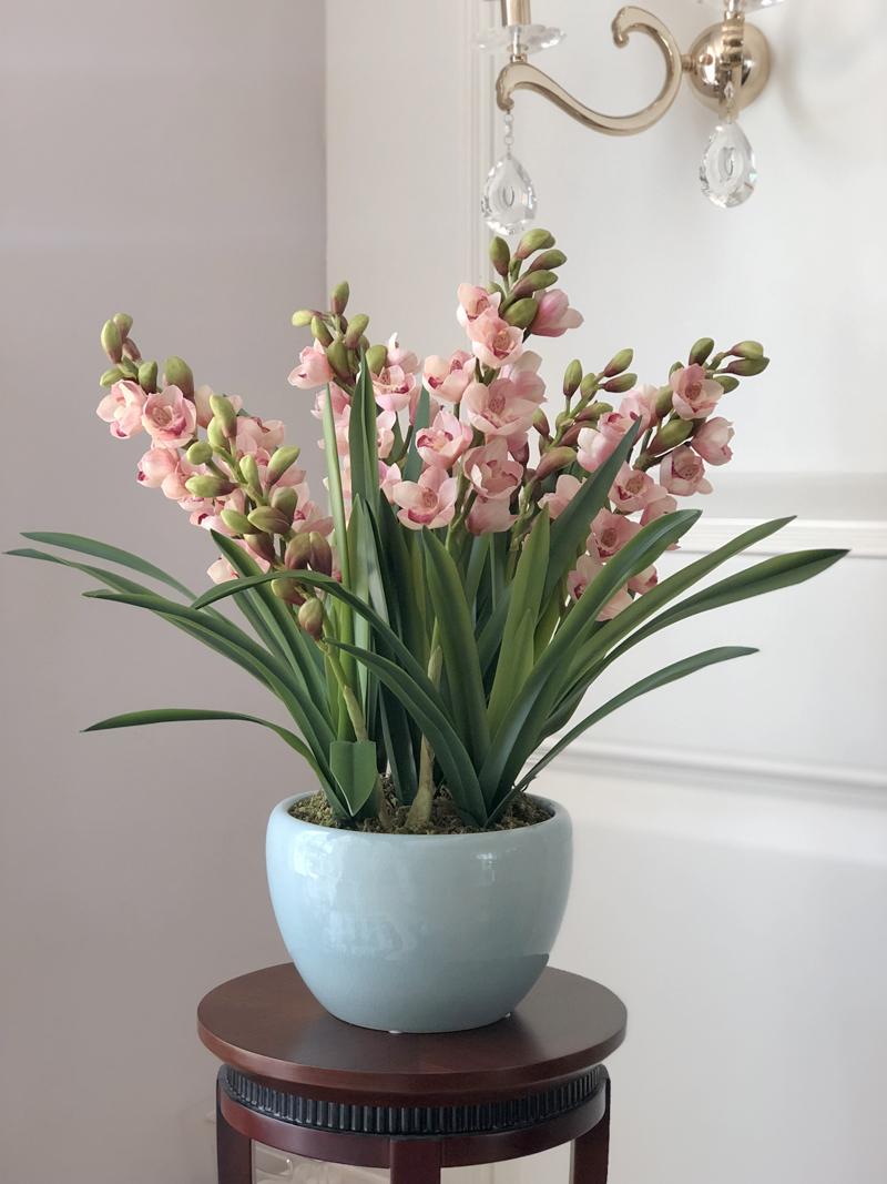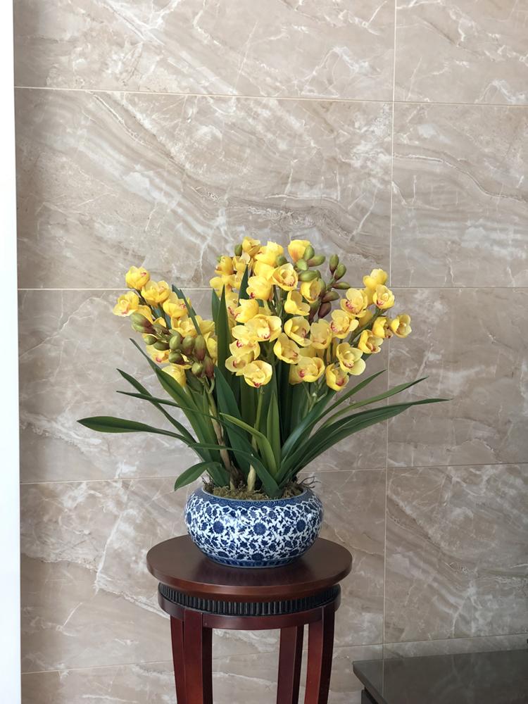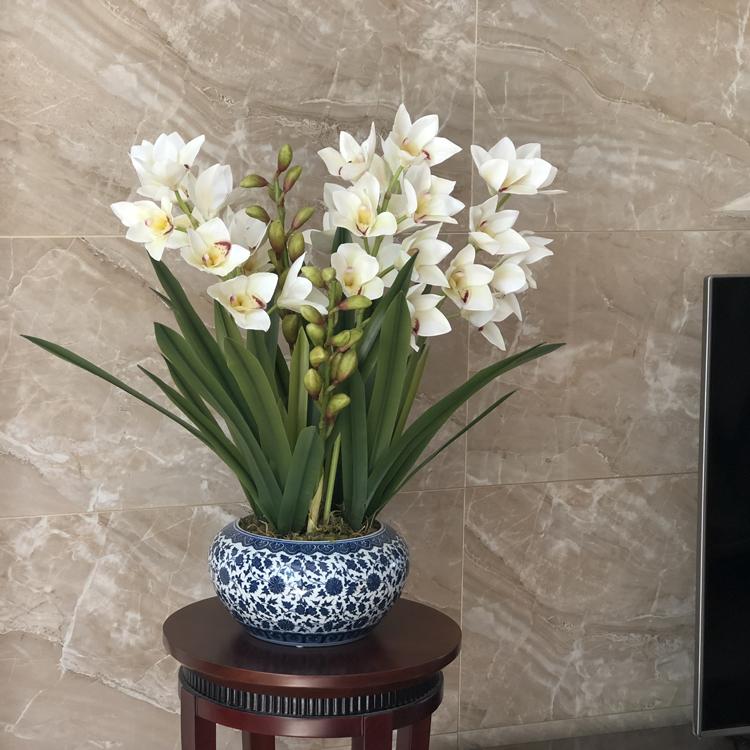 Esta orquídea está hecha de material coloidal de tacto completo, y cada pétalo es grueso y carnoso, mostrando la sensación y la forma de una orquídea real. Las hojas de la orquídea están hechas de material coloidal de tacto completo, y cada hoja se puede ajustar al grado de flexión en cualquier momento según las necesidades.