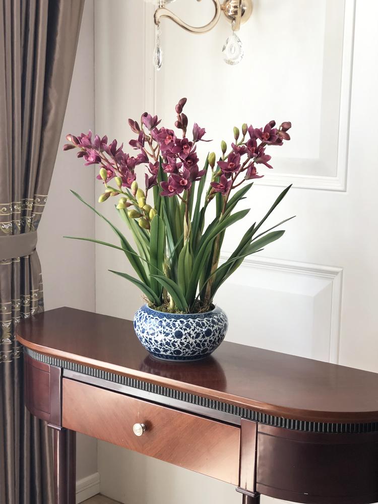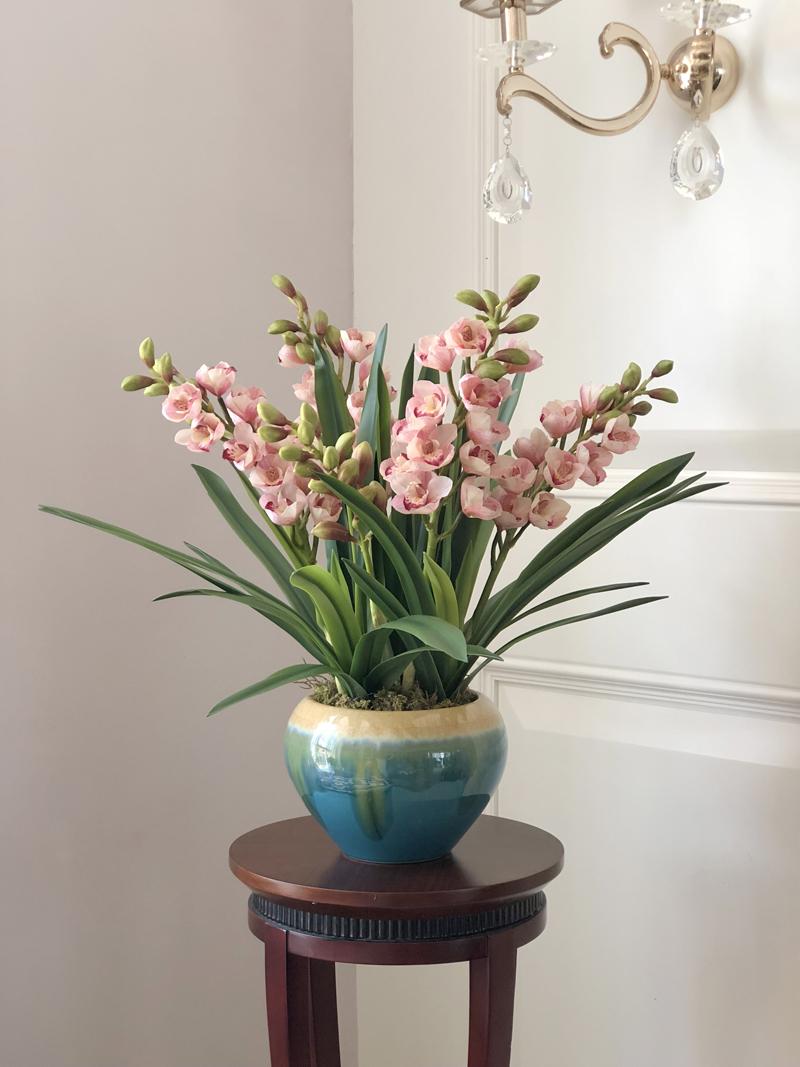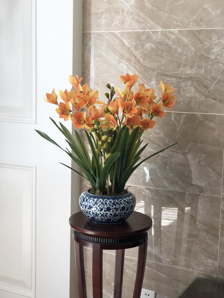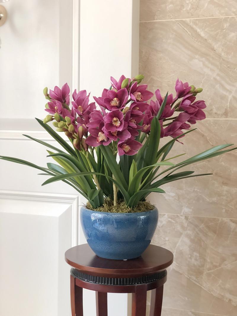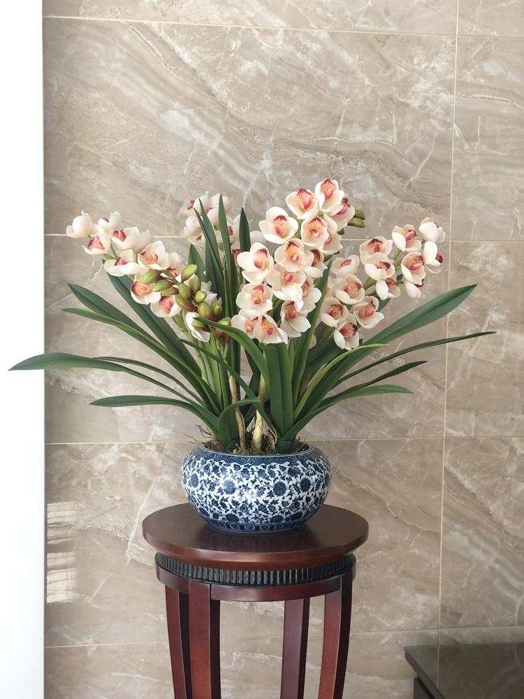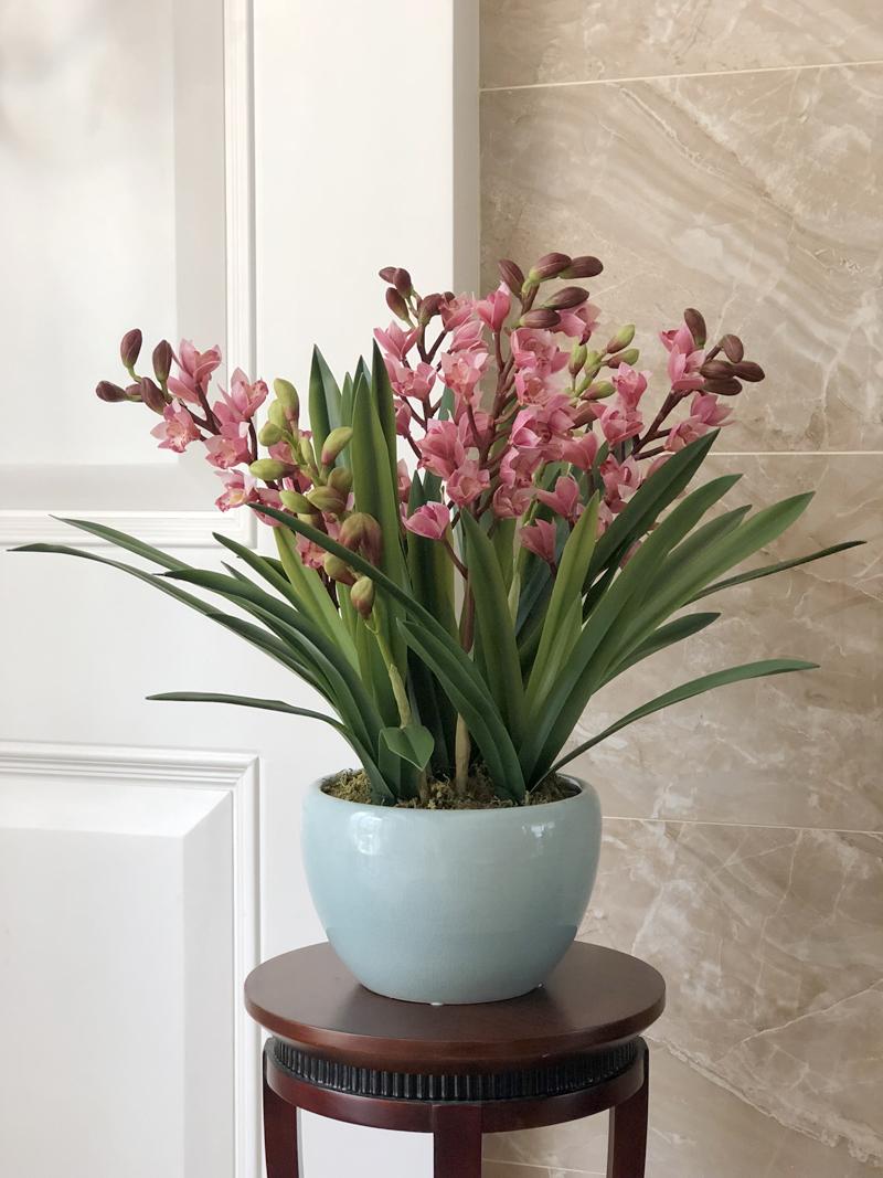 Esta orquídea está hecha de material coloidal de tacto completo, y cada pétalo es grueso y carnoso, mostrando la sensación y la forma de una orquídea real. Las hojas de la orquídea están hechas de material coloidal de tacto completo, y cada hoja se puede ajustar al grado de flexión en cualquier momento según las necesidades.