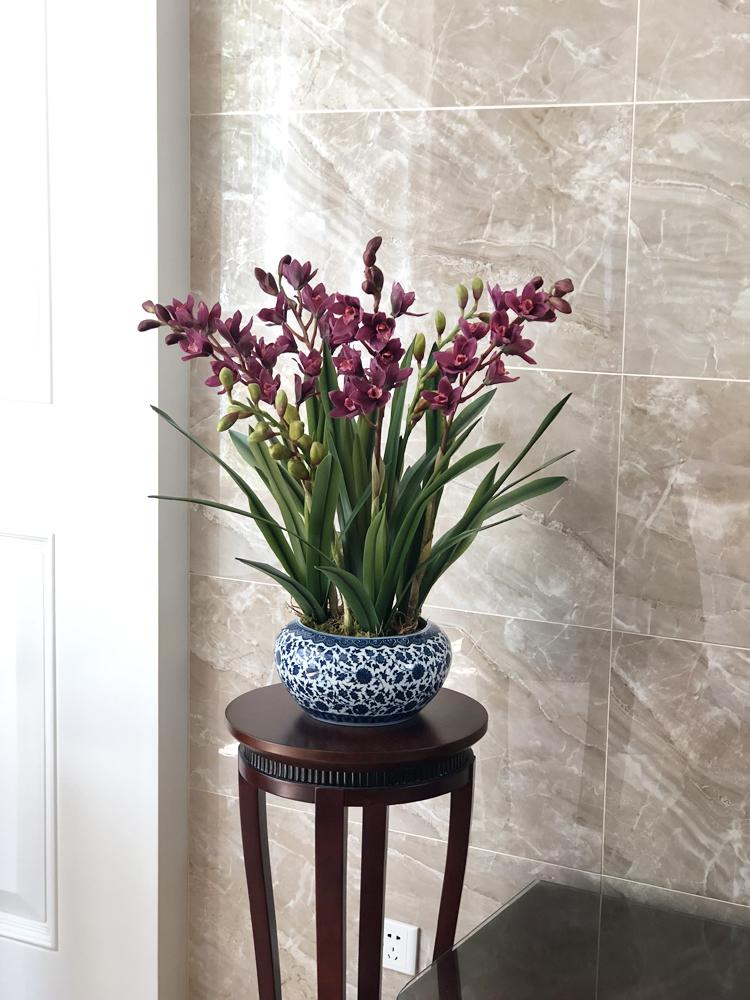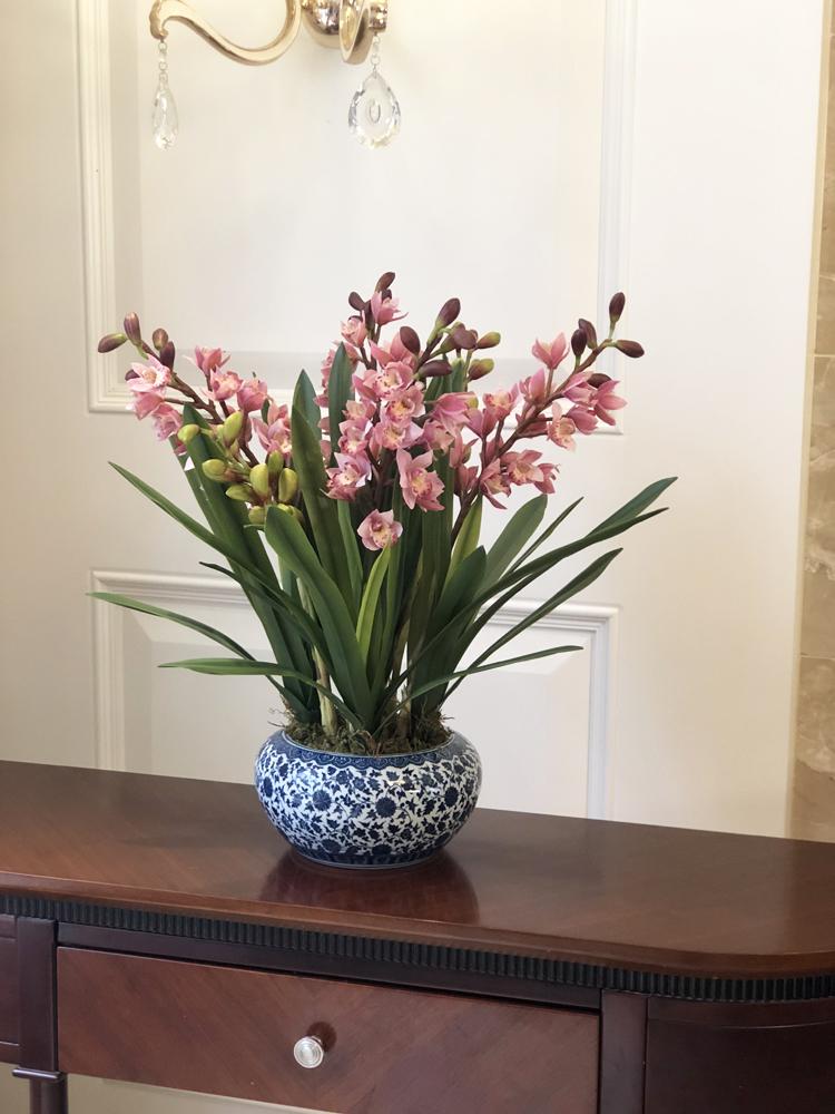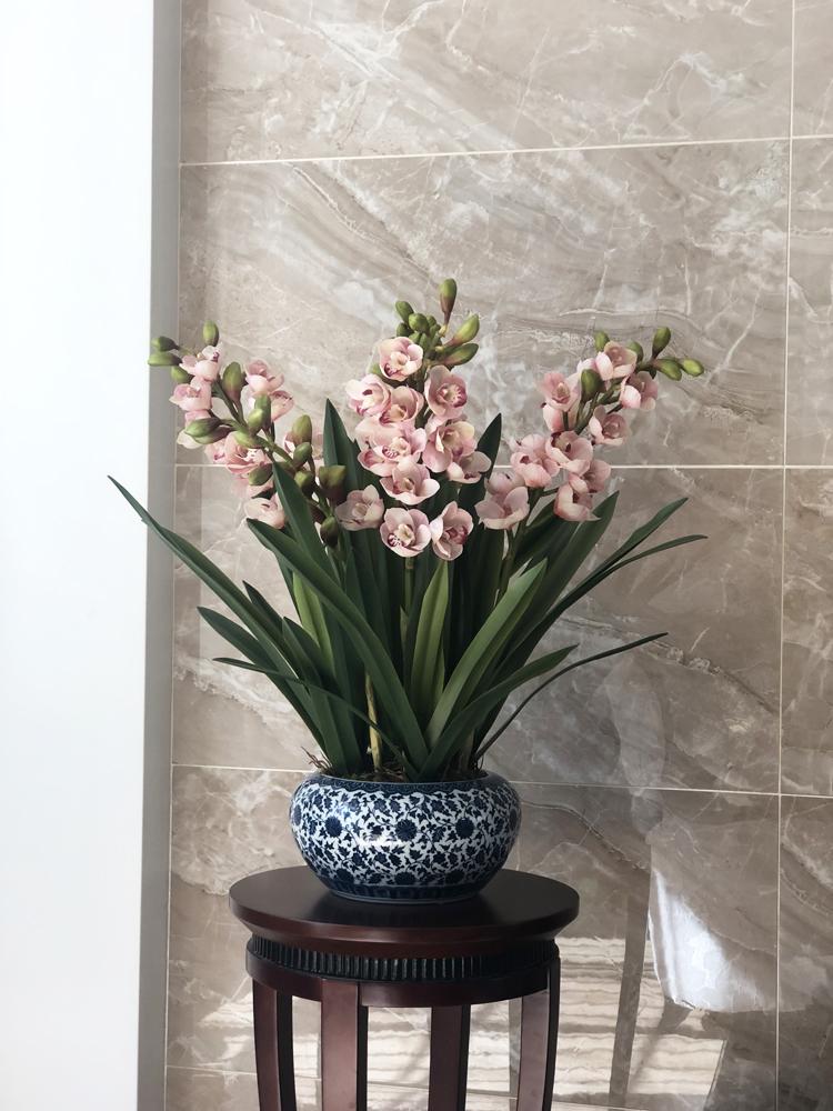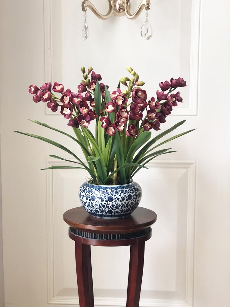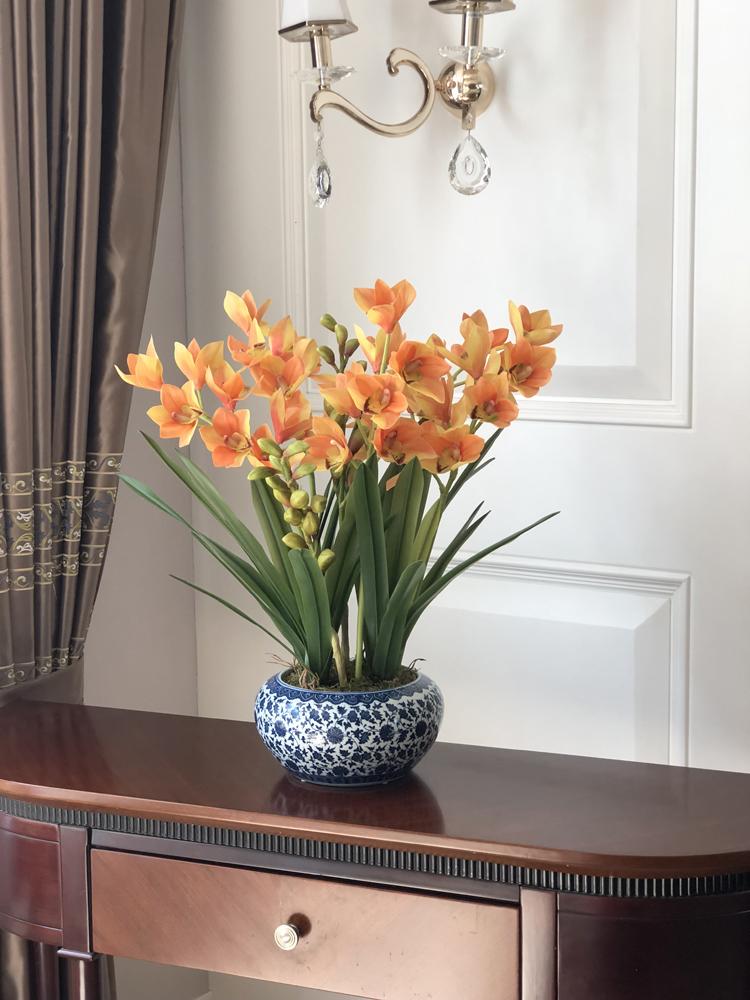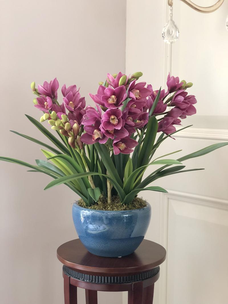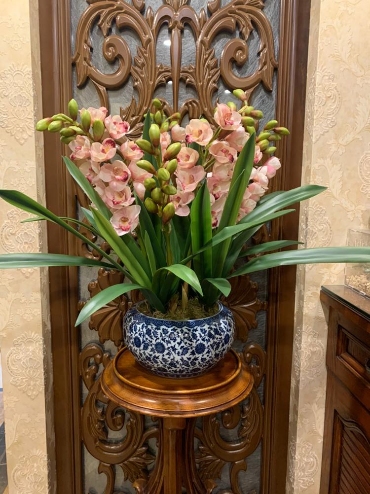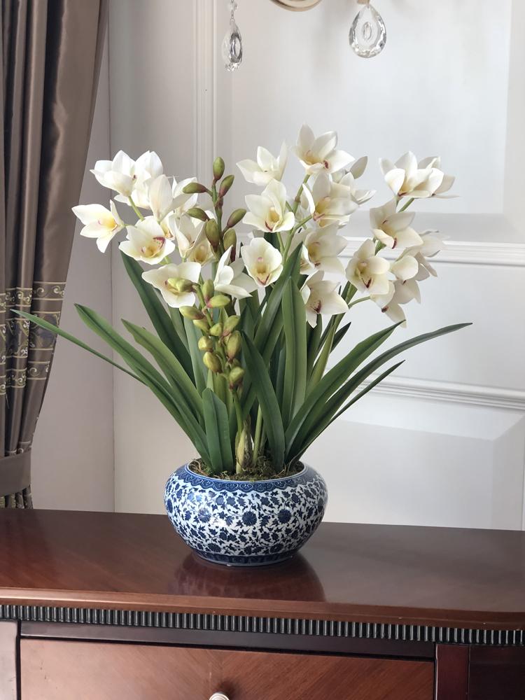 Esta orquídea está hecha de material coloidal de tacto completo, y cada pétalo es grueso y carnoso, mostrando la sensación y la forma de una orquídea real. Las hojas de la orquídea están hechas de material coloidal de tacto completo, y cada hoja se puede ajustar al grado de flexión en cualquier momento según las necesidades.