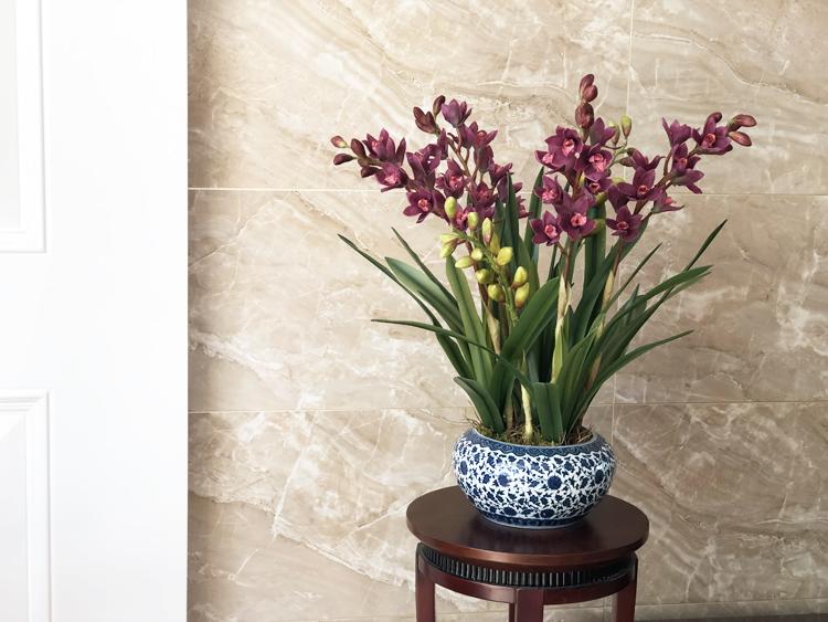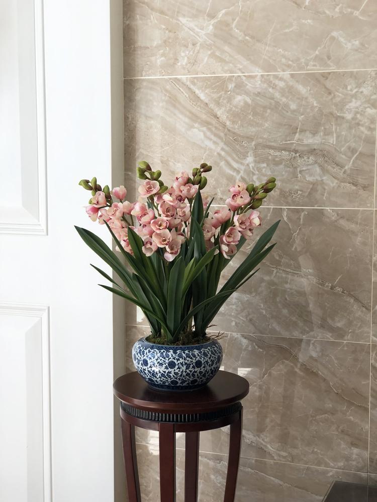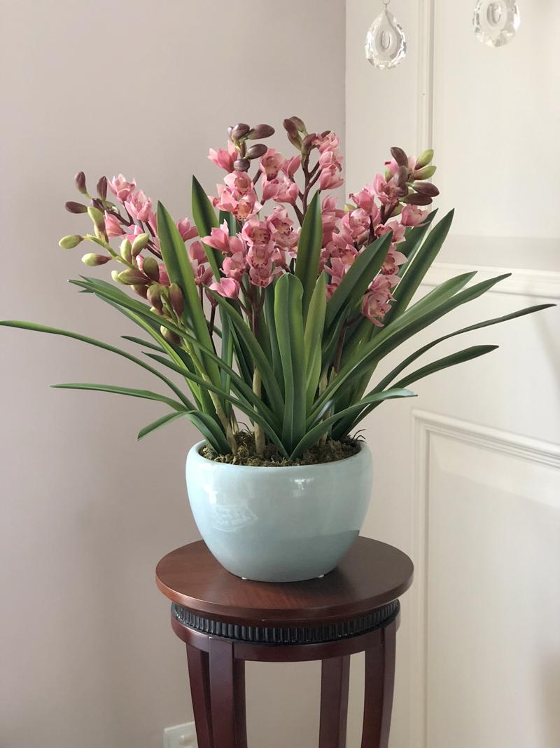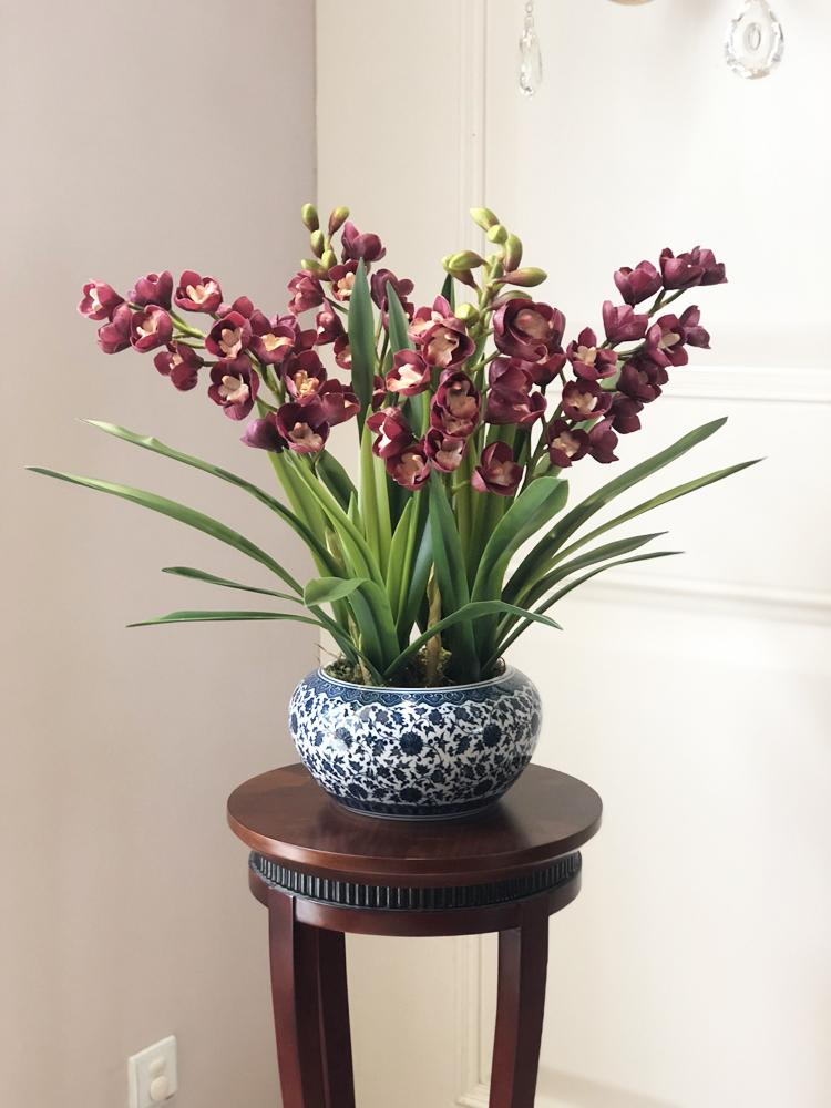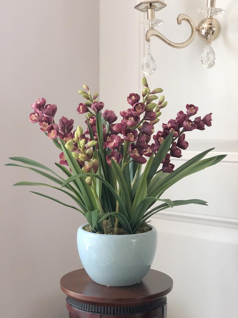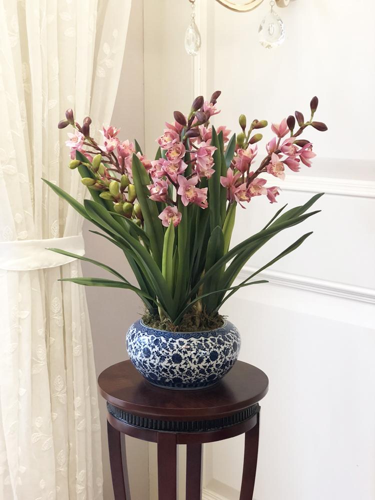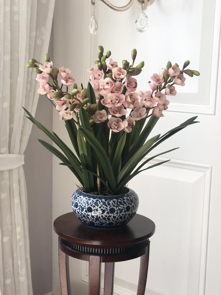 Esta orquídea está hecha de material coloidal de tacto completo, y cada pétalo es grueso y carnoso, mostrando la sensación y la forma de una orquídea real. Las hojas de la orquídea están hechas de material coloidal de tacto completo, y cada hoja se puede ajustar al grado de flexión en cualquier momento según las necesidades.