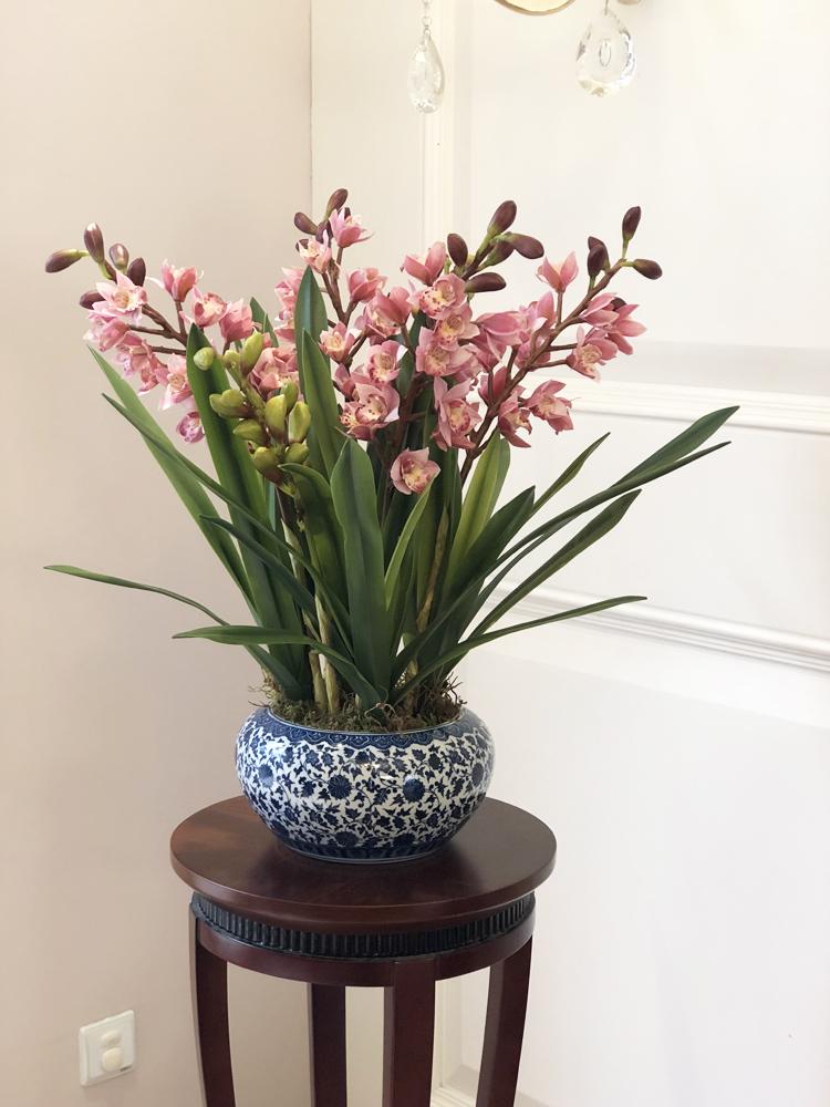 [Imagen abajo]: 4 capullos de flor púrpura-rojo + cymbidium
